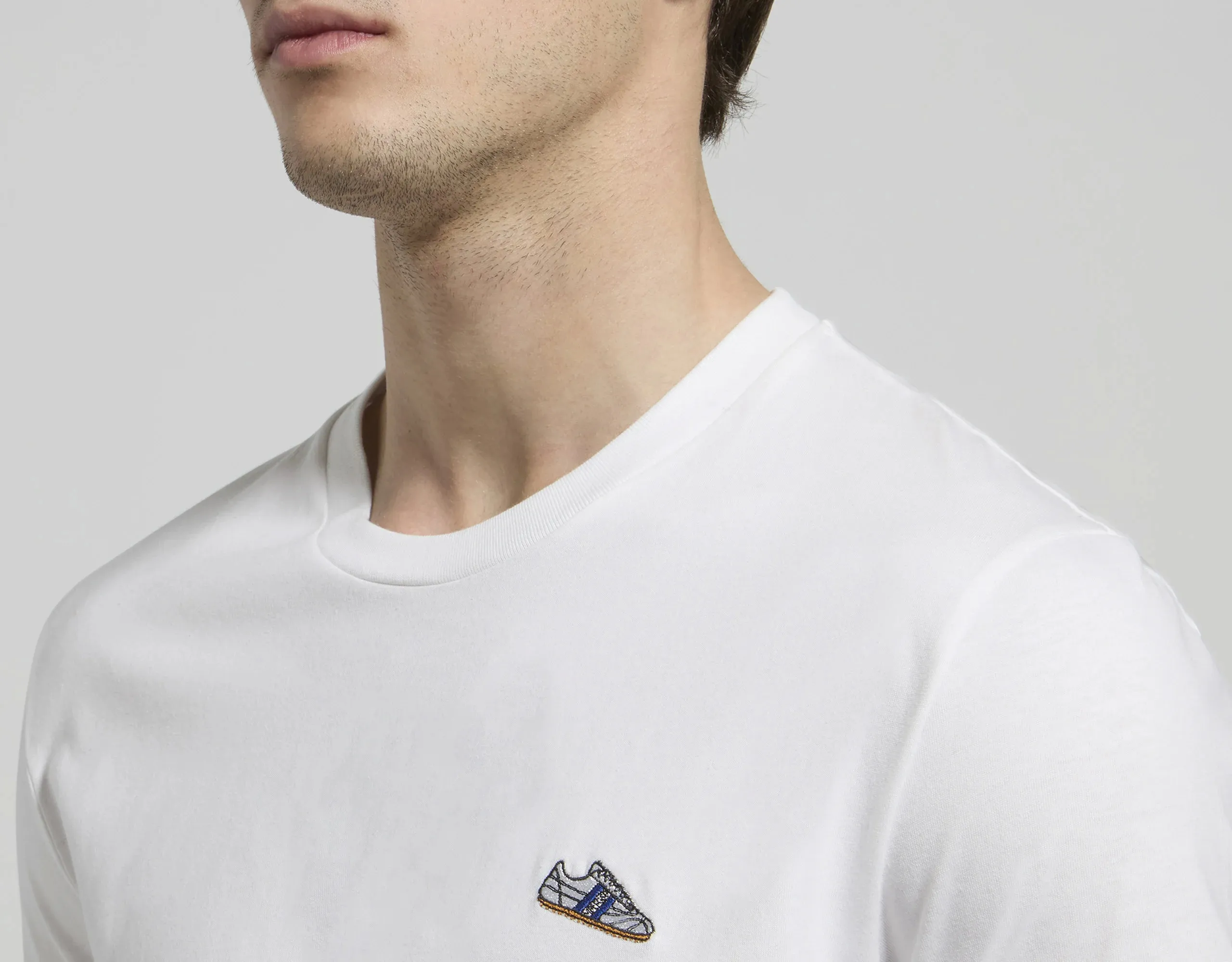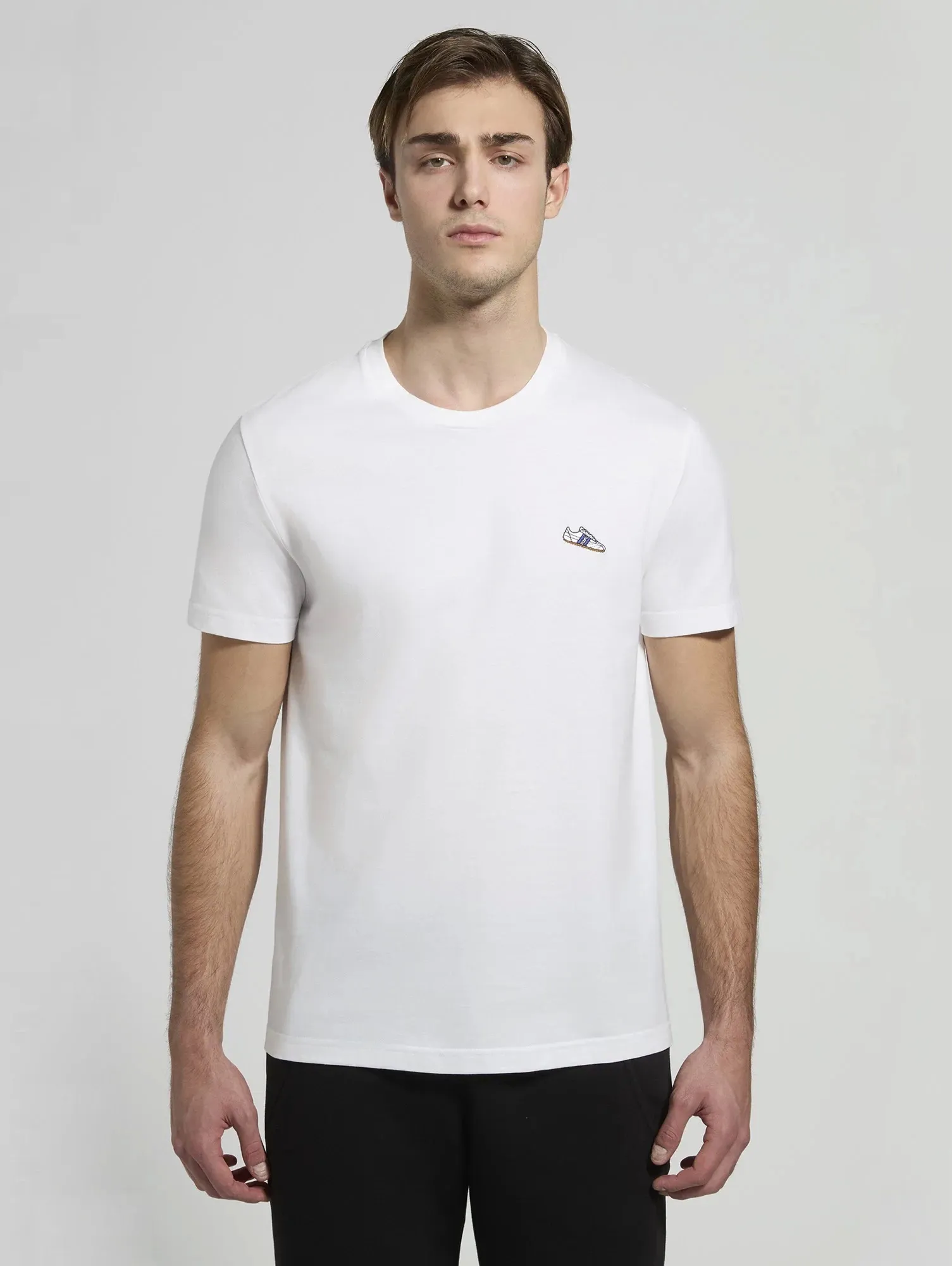 Мужская футболка из натурального хлопка с нашивкой на груди в футбольной тематике. Футболка прямого кроя с круглым вырезом и короткими рукавами.