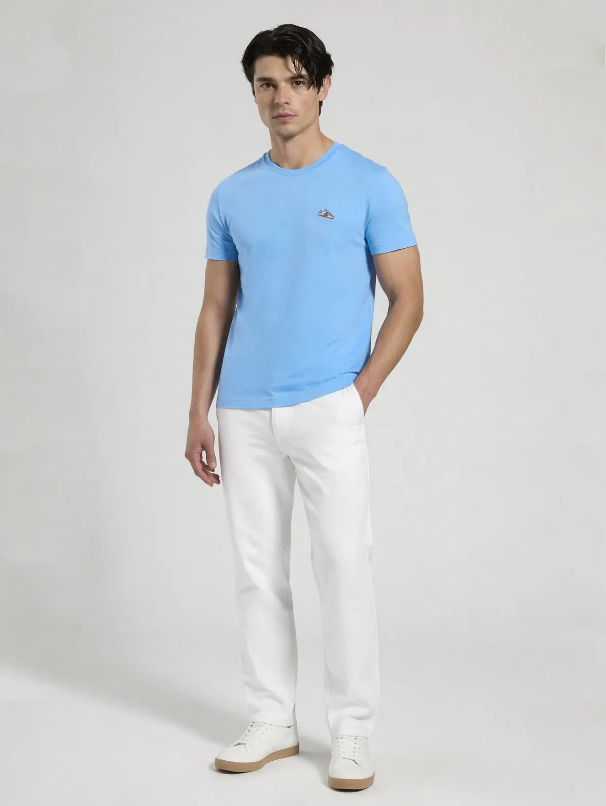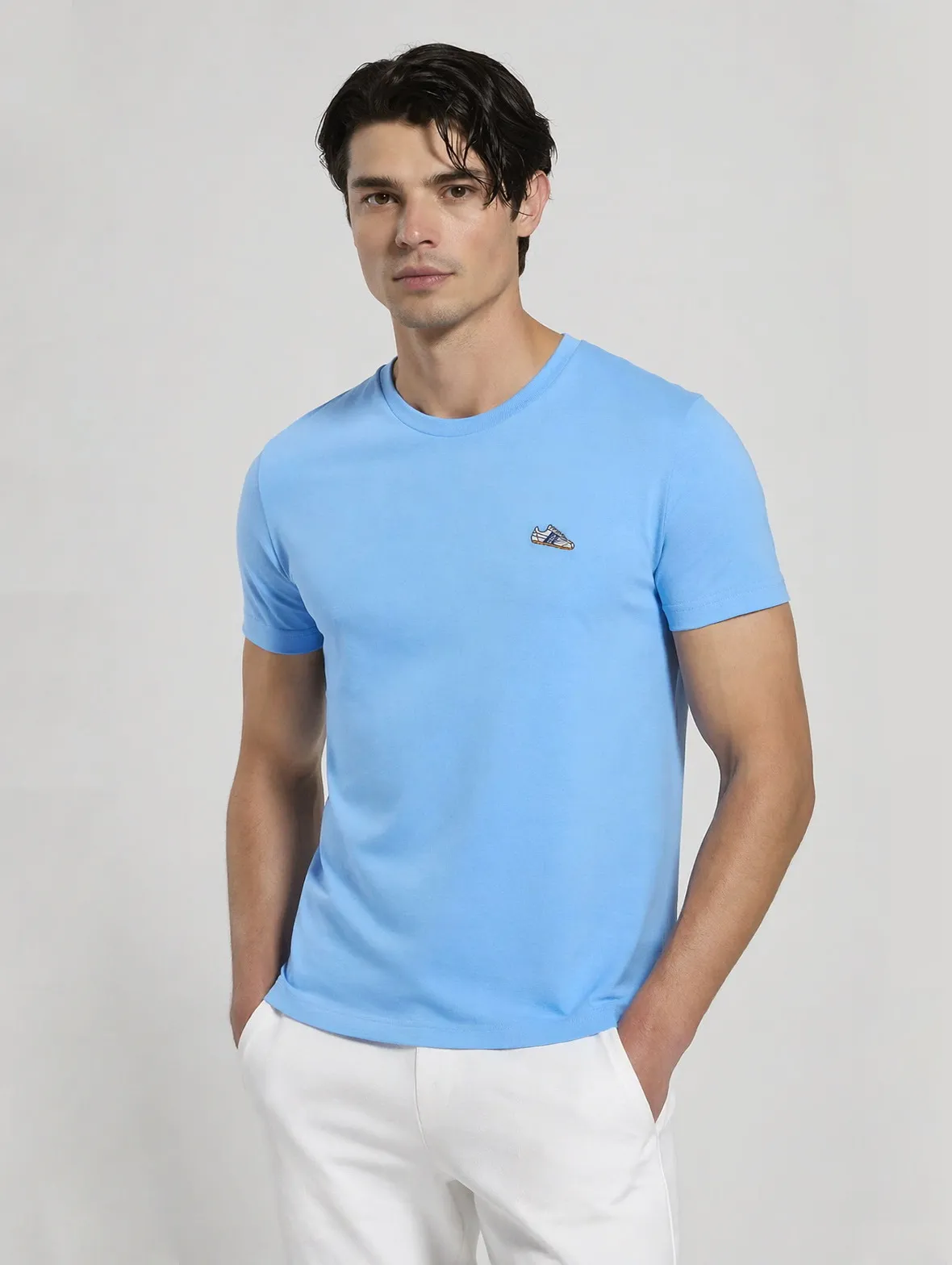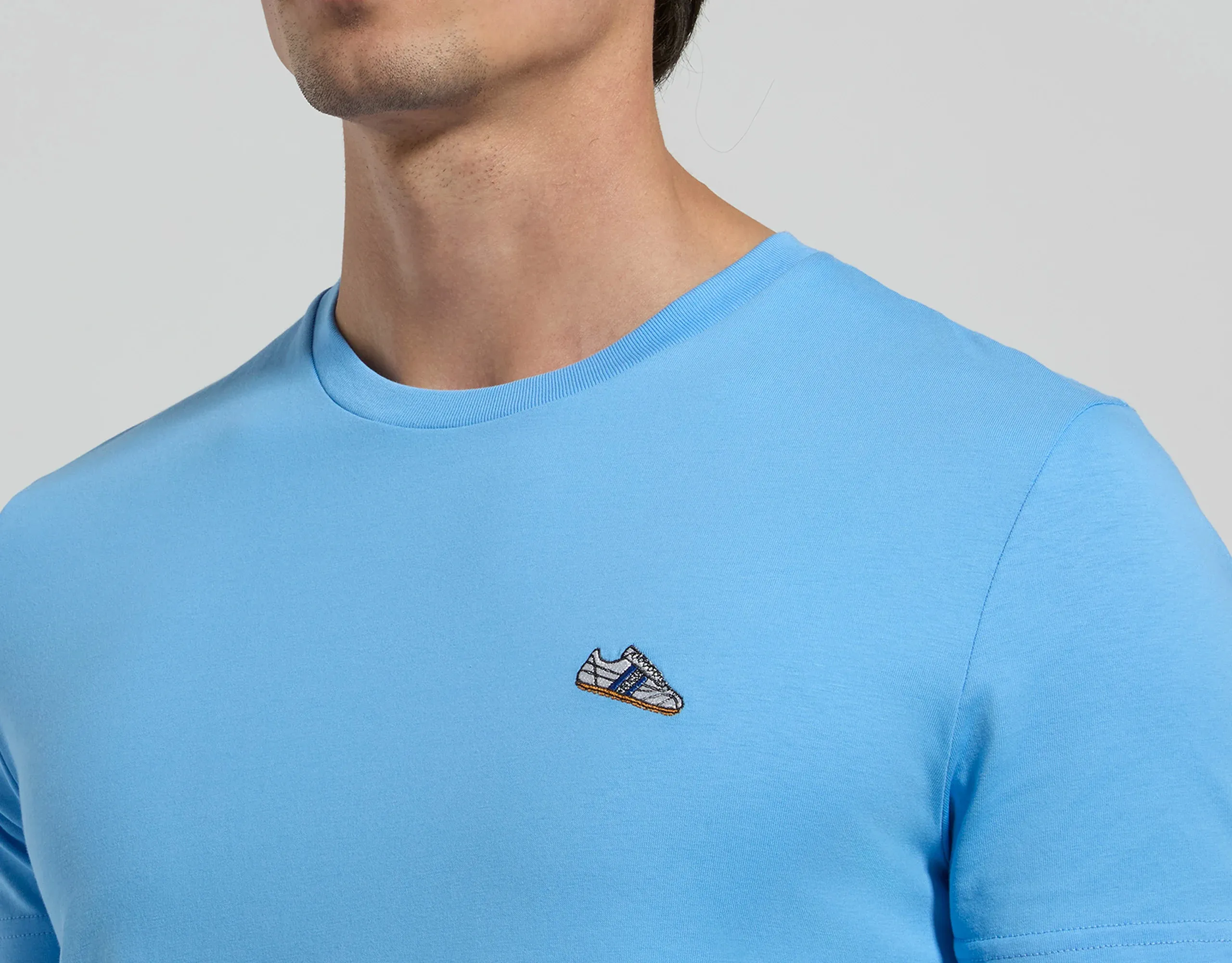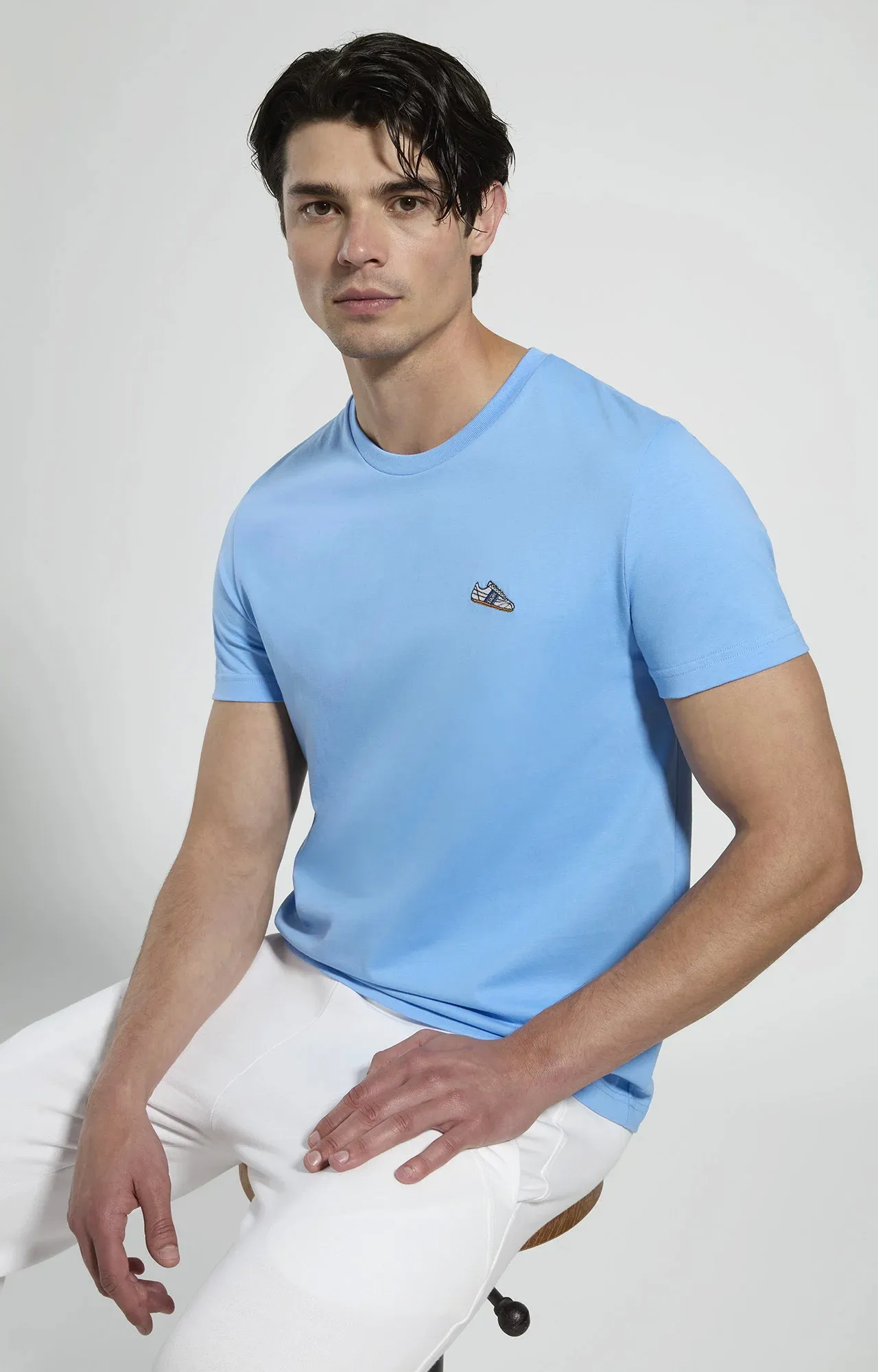 Мужская футболка из натурального хлопка с нашивкой на груди в футбольной тематике. Футболка прямого кроя с круглым вырезом и короткими рукавами.