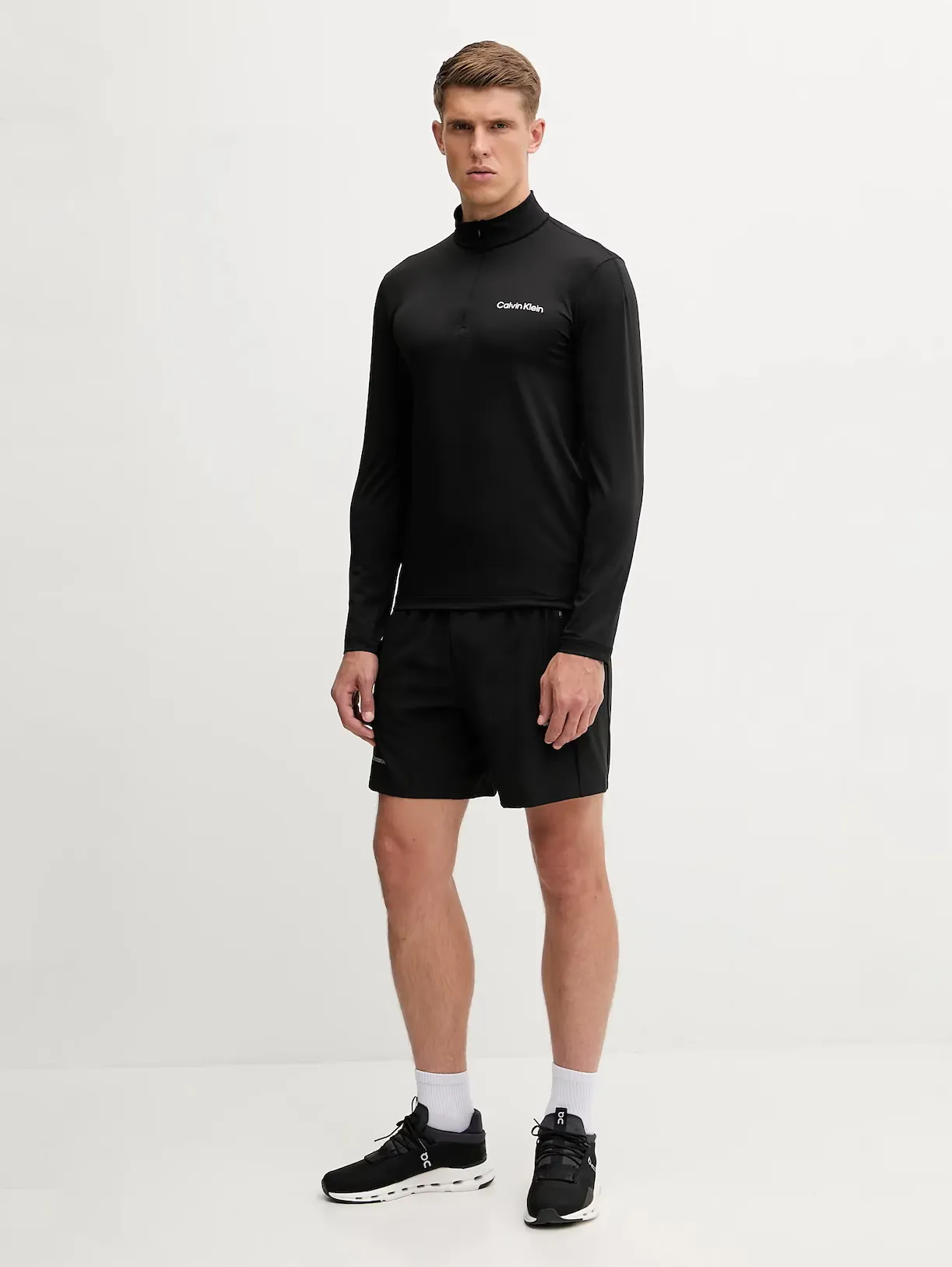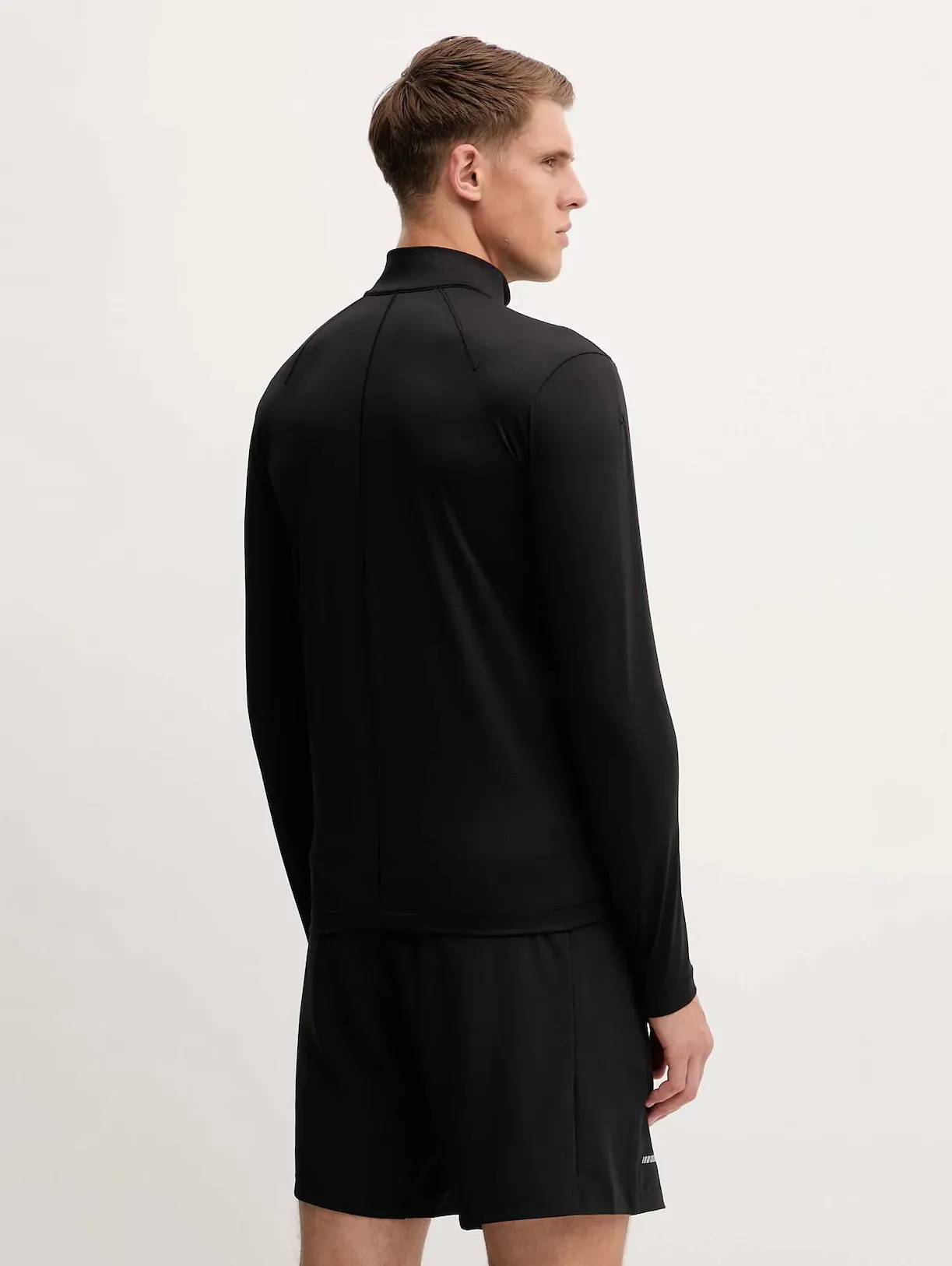 Мужской спортивный лонгслив из эластичного быстросохнущего материала с влагоотводящими свойствами, обеспечивающими комфорт и сухость во время активности. Изделие выполнено из лёгкого сетчатого материала с высокой воздухопроницаемостью. Модель с высоким воротником и короткой молнией. Плоские швы снижают риск натирания и повышают уровень комфорта.