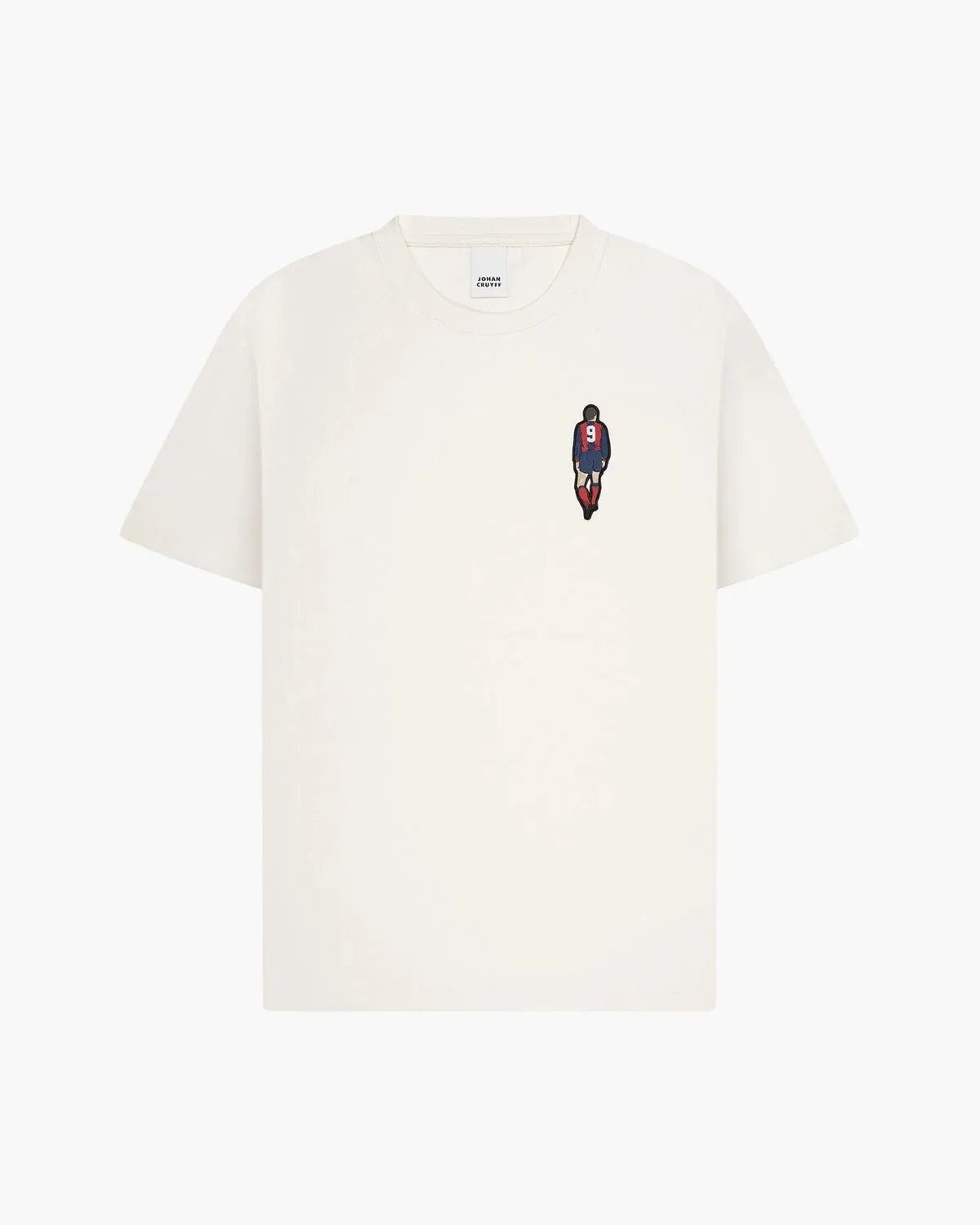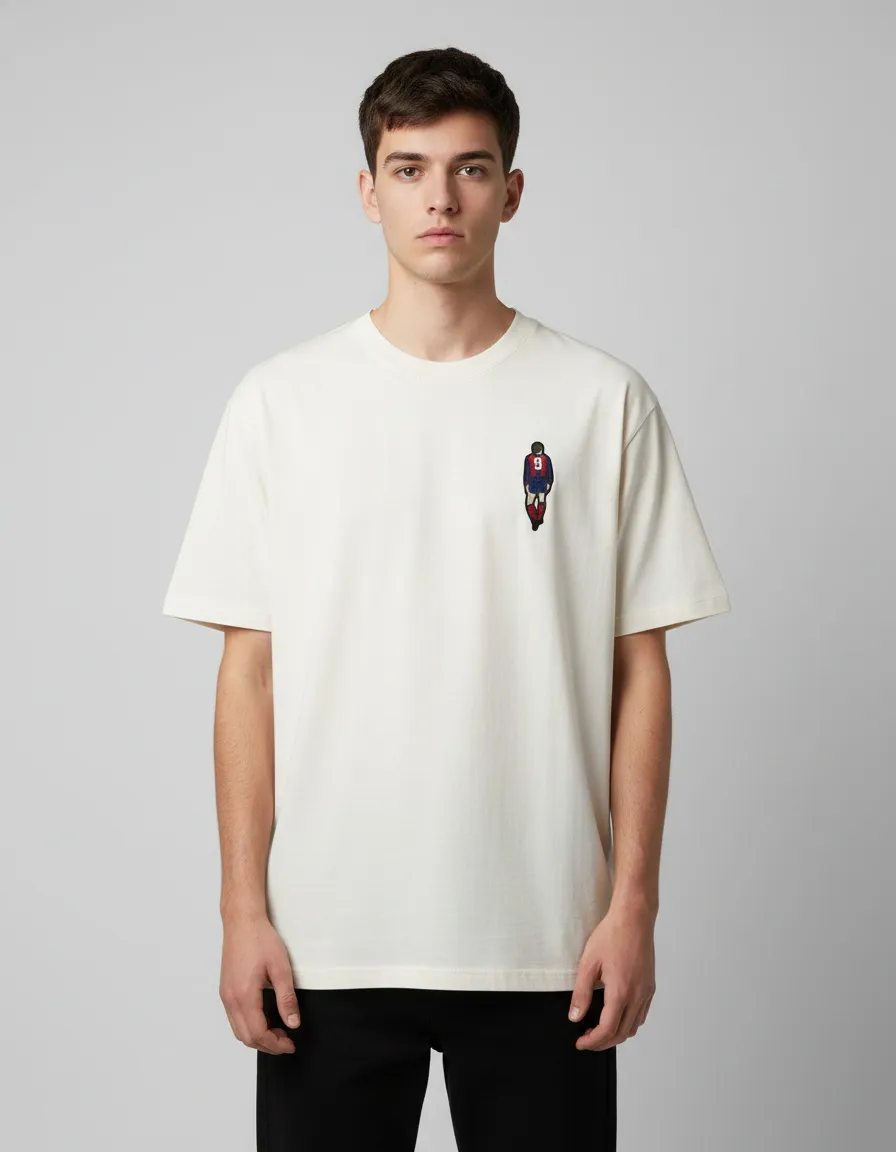 Мужская футболка оверсайз Luxury Signature с короткими рукавами и круглым вырезом выполнена из натурального хлопка. Мягкая и дышащая ткань обеспечивает комфорт в течение дня. Модель декорирована вышивкой с изображением футболиста, которая добавляет образу выразительный спортивный акцент.