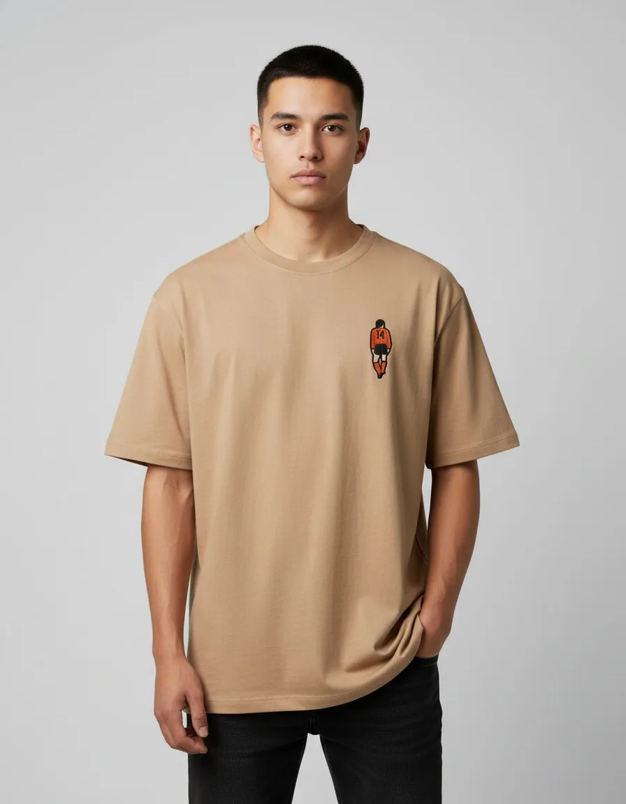 Мужская футболка оверсайз Luxury Signature с короткими рукавами и круглым вырезом выполнена из натурального хлопка. Мягкая и дышащая ткань обеспечивает комфорт в течение дня. Модель декорирована вышивкой с изображением футболиста, которая добавляет образу выразительный спортивный акцент.