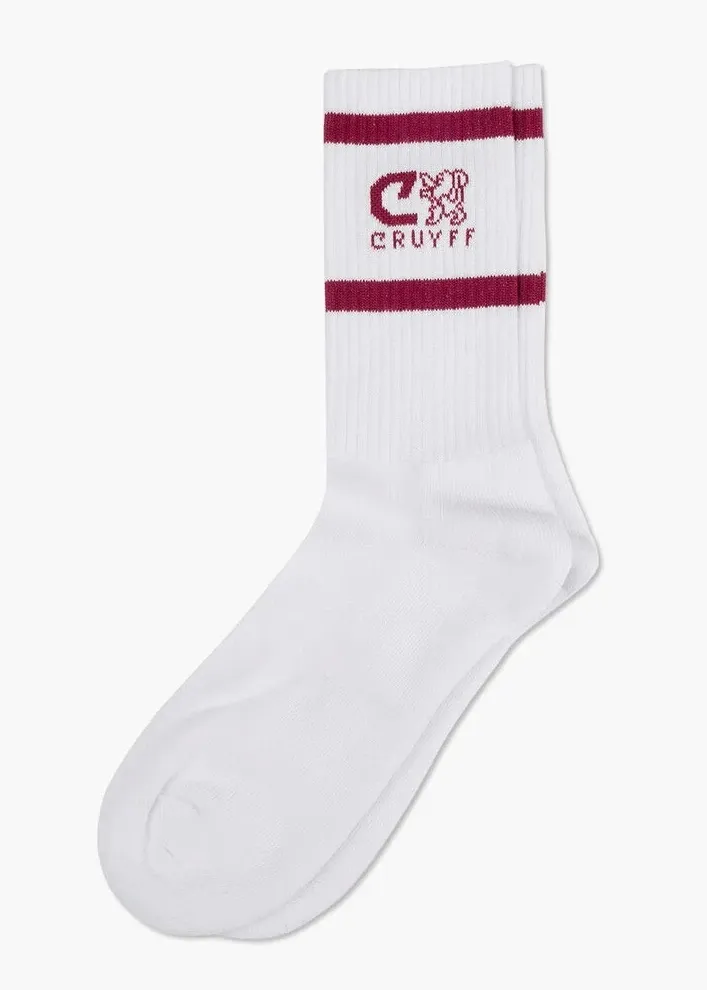 Белые носки с красными полосками и логотипом Cruyff. Носки изготовлены из эластичного хлопка.