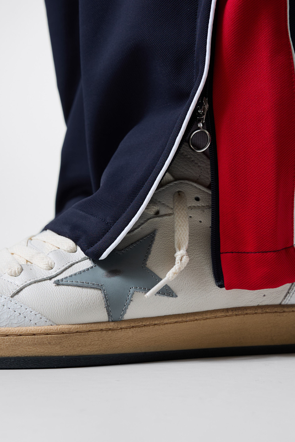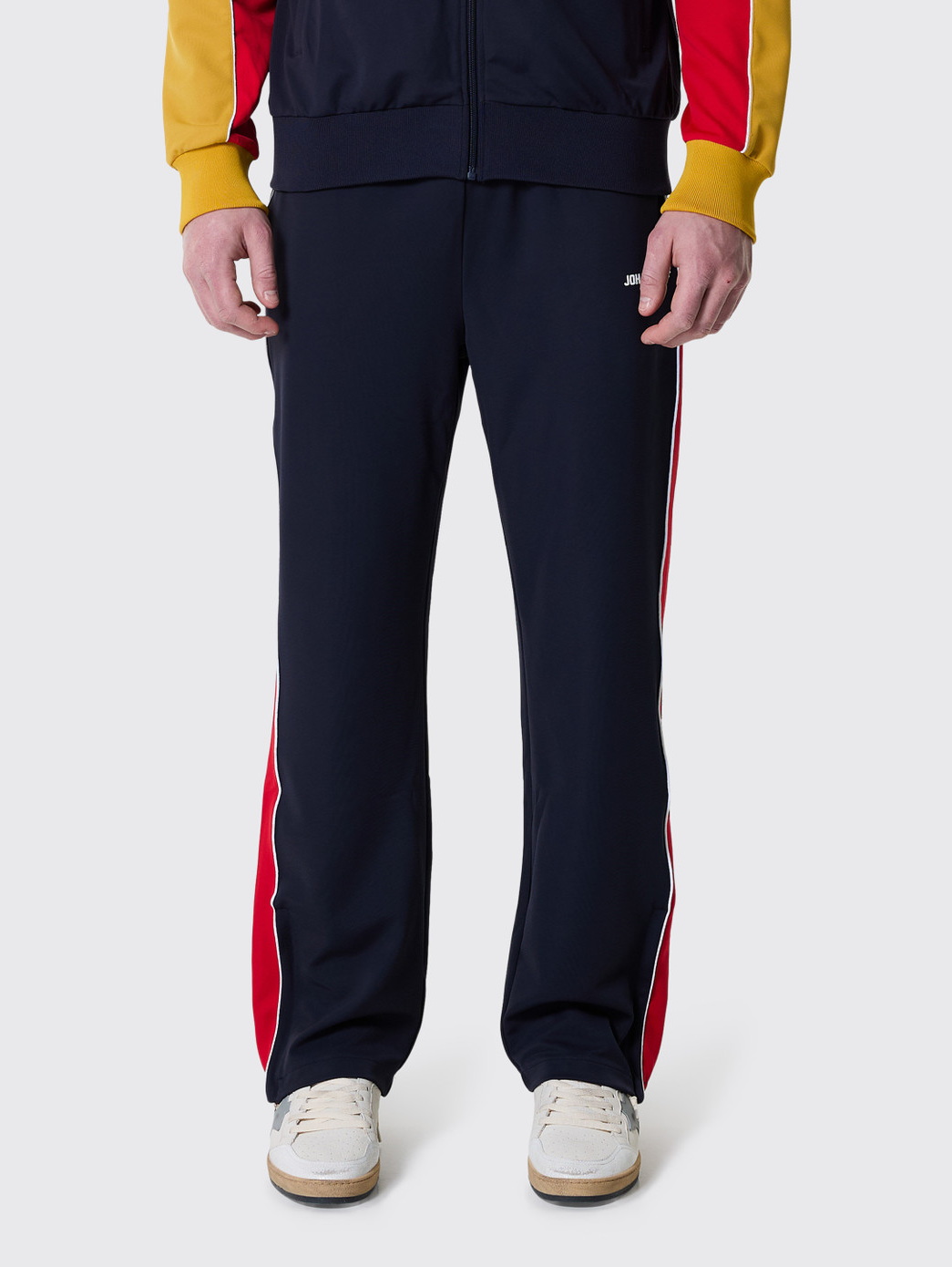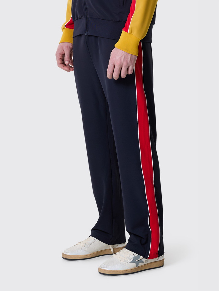 Мужские спортивные брюки Retro - модель свободного кроя и контрастными лампасами. Оснащены молниями внизу штанин, регулируемым шнурком на поясе и карманами. Премиальная ткань придаёт брюкам стильный и аккуратный вид. Идеально сочетаются с олимпийкой из коллекции.