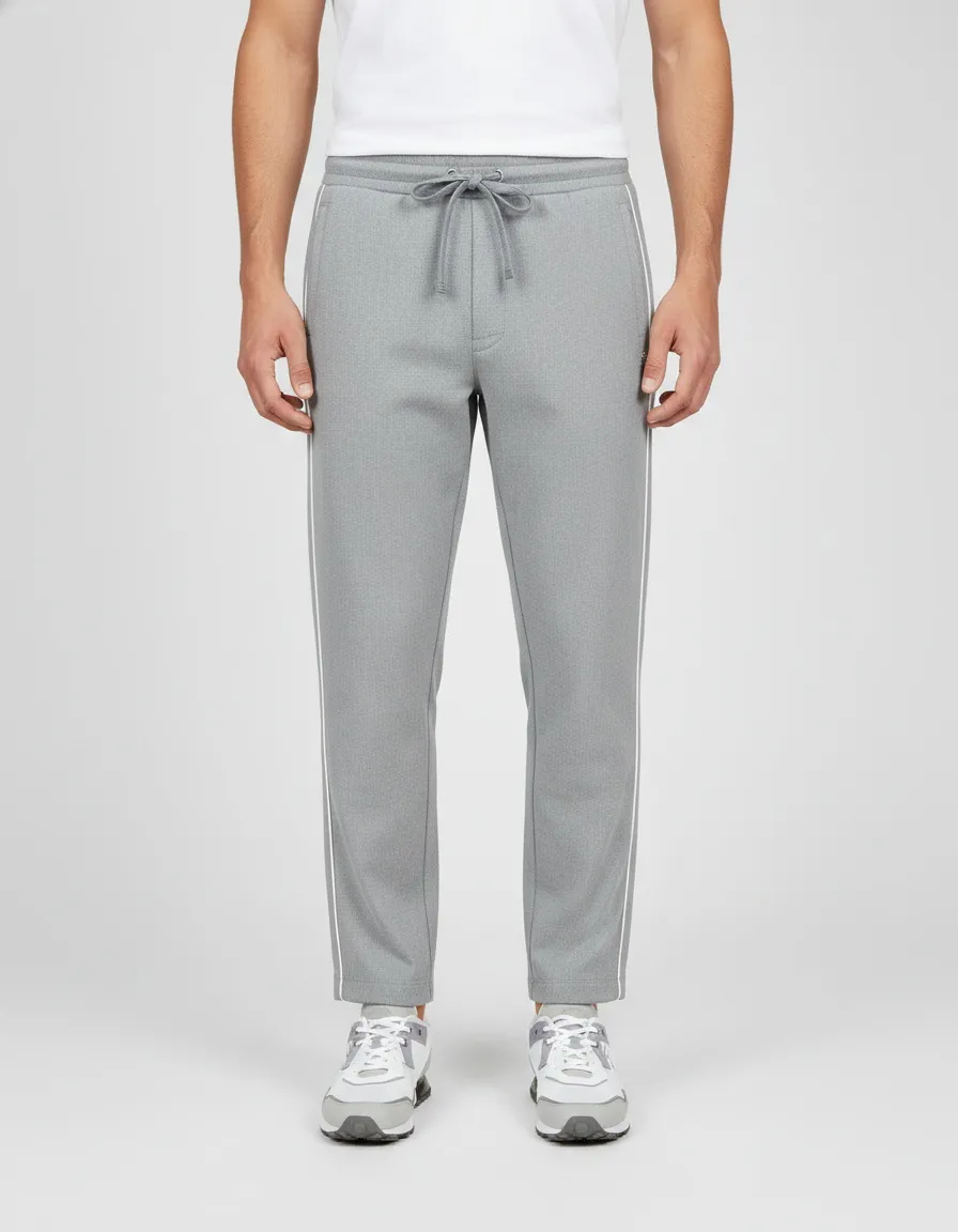 Мужские спортивные брюки Visionary зауженные книзу с лампасами. Оснащены регулируемым шнурком на поясе и карманами. Премиальная ткань придаёт брюкам стильный и аккуратный вид. Идеально сочетаются с олимпийкой из коллекции.