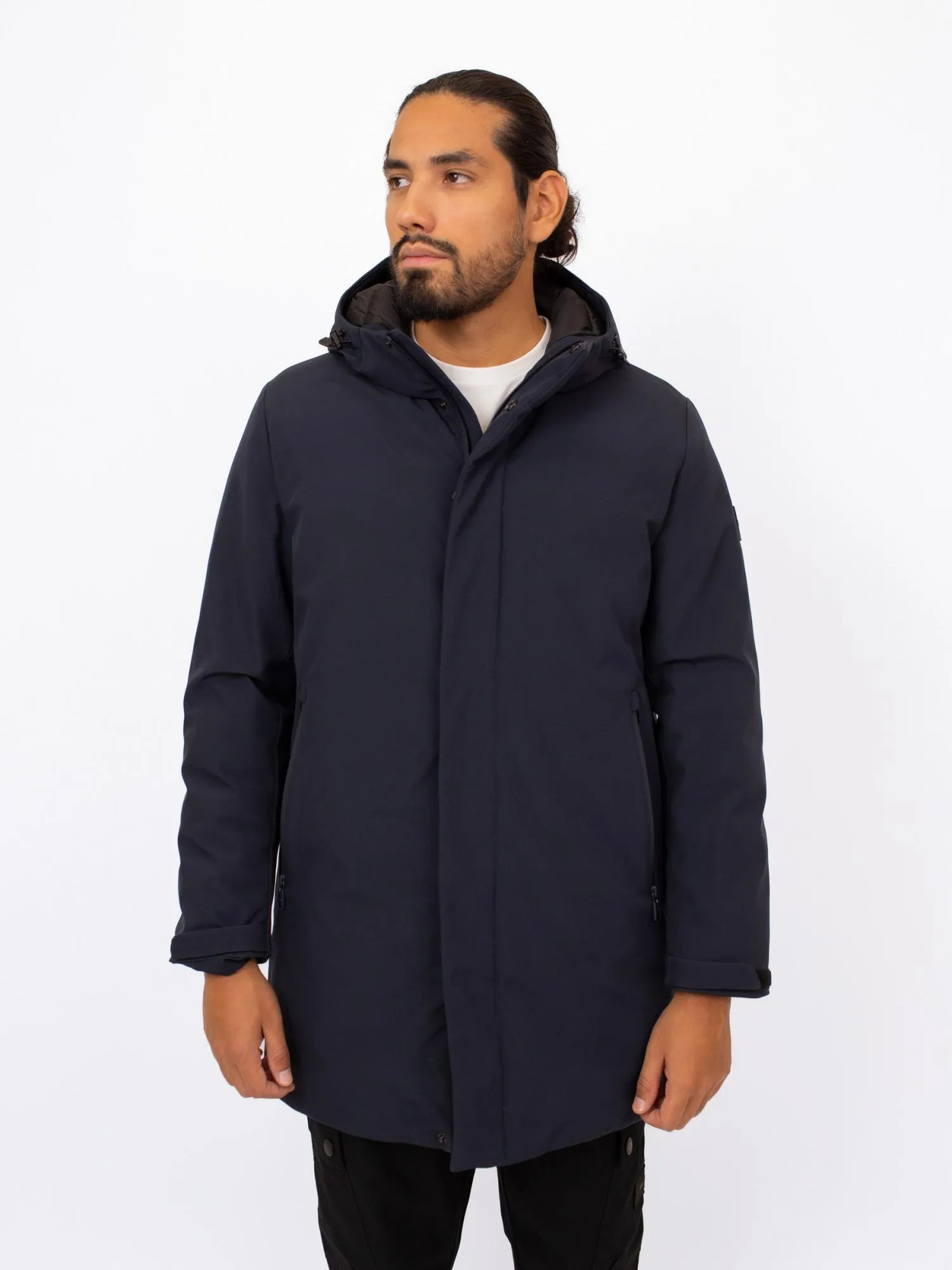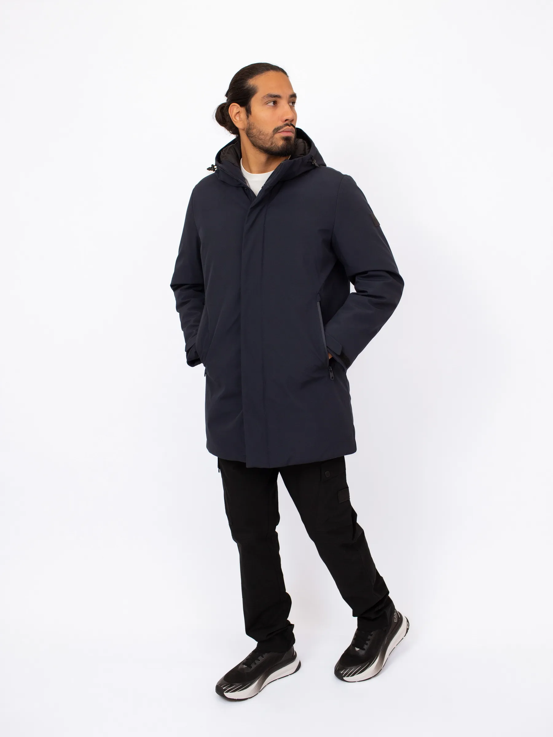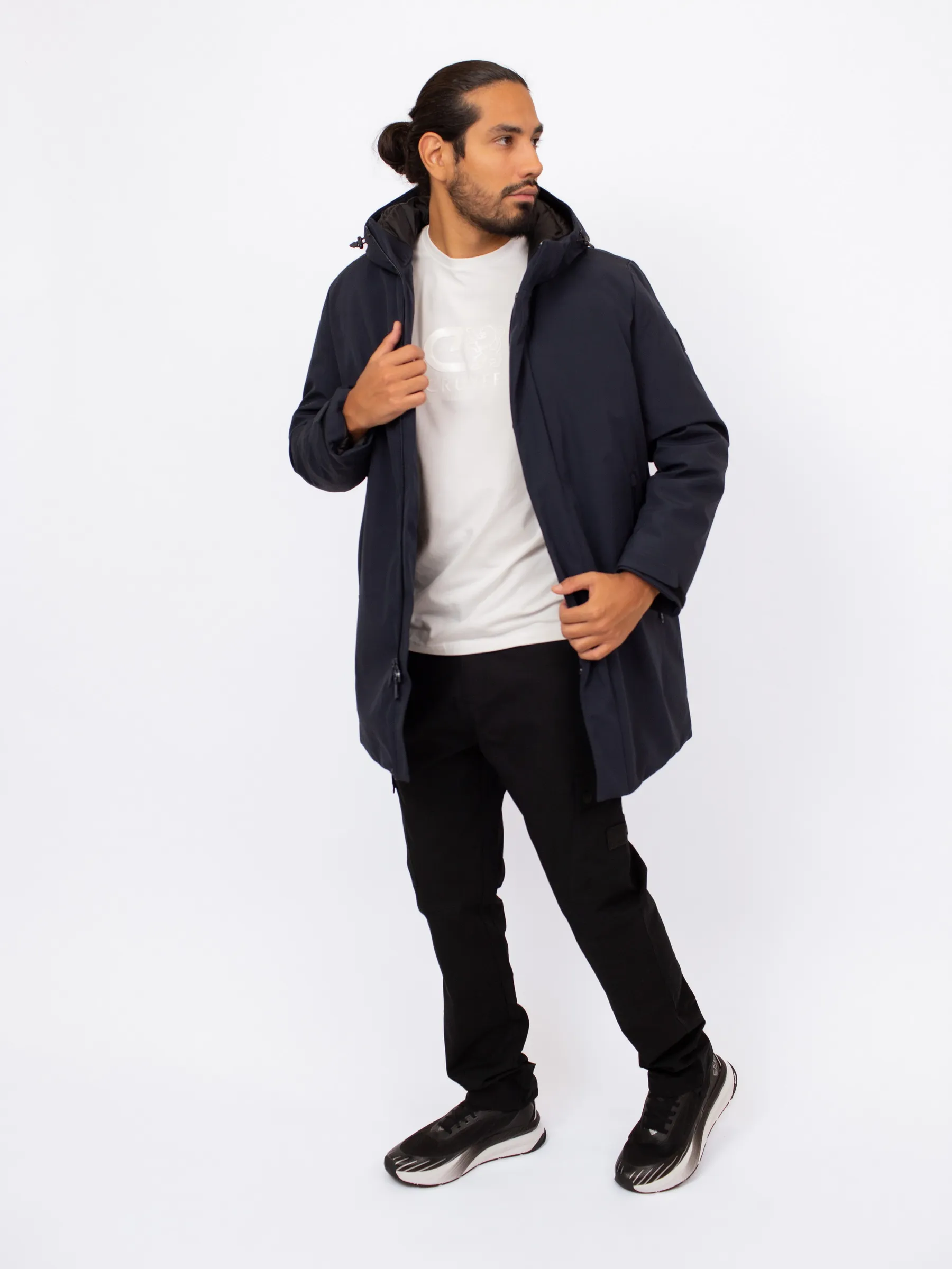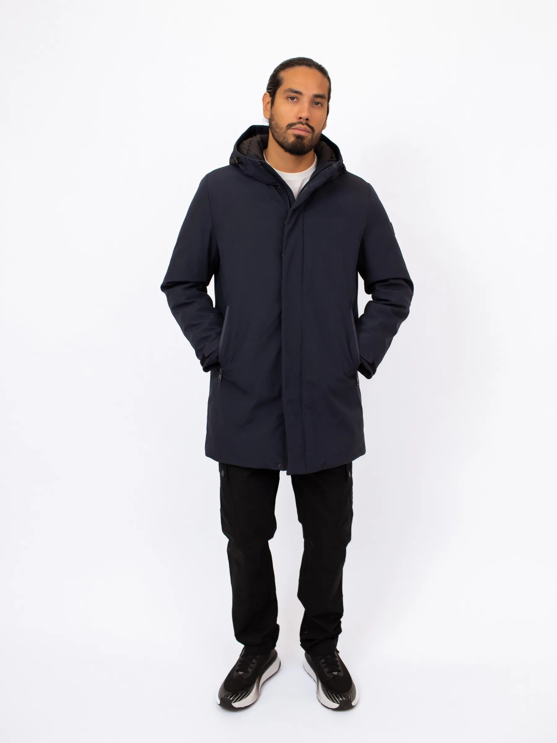 Мужская зимняя куртка с капюшоном DKNY длиной до середины бедра — тёплая и современная модель, идеально подходящая для холодного сезона. Утеплённый дизайн, функциональные детали и лаконичный стиль бренда делают её отличным решением для повседневных образов.
