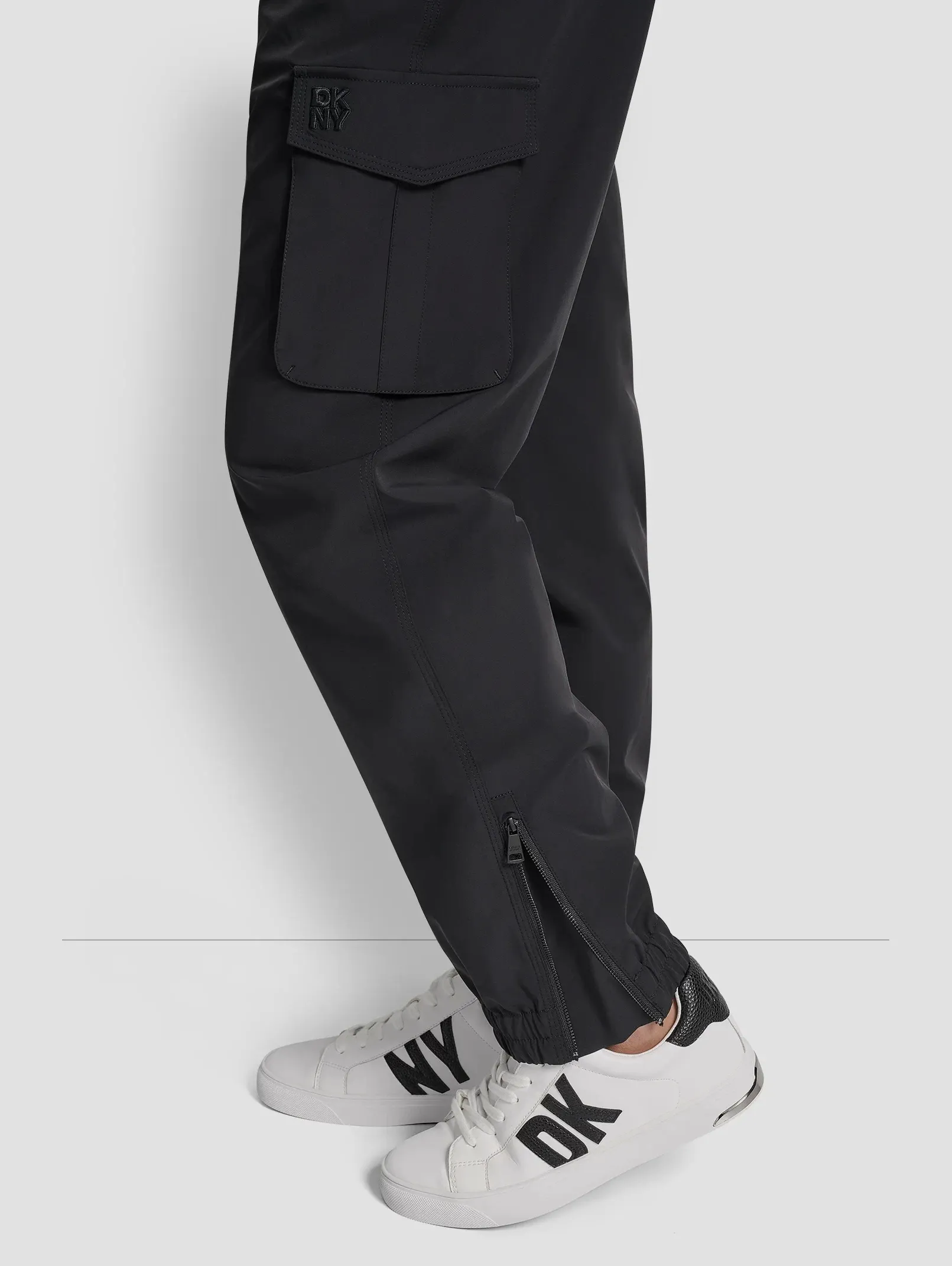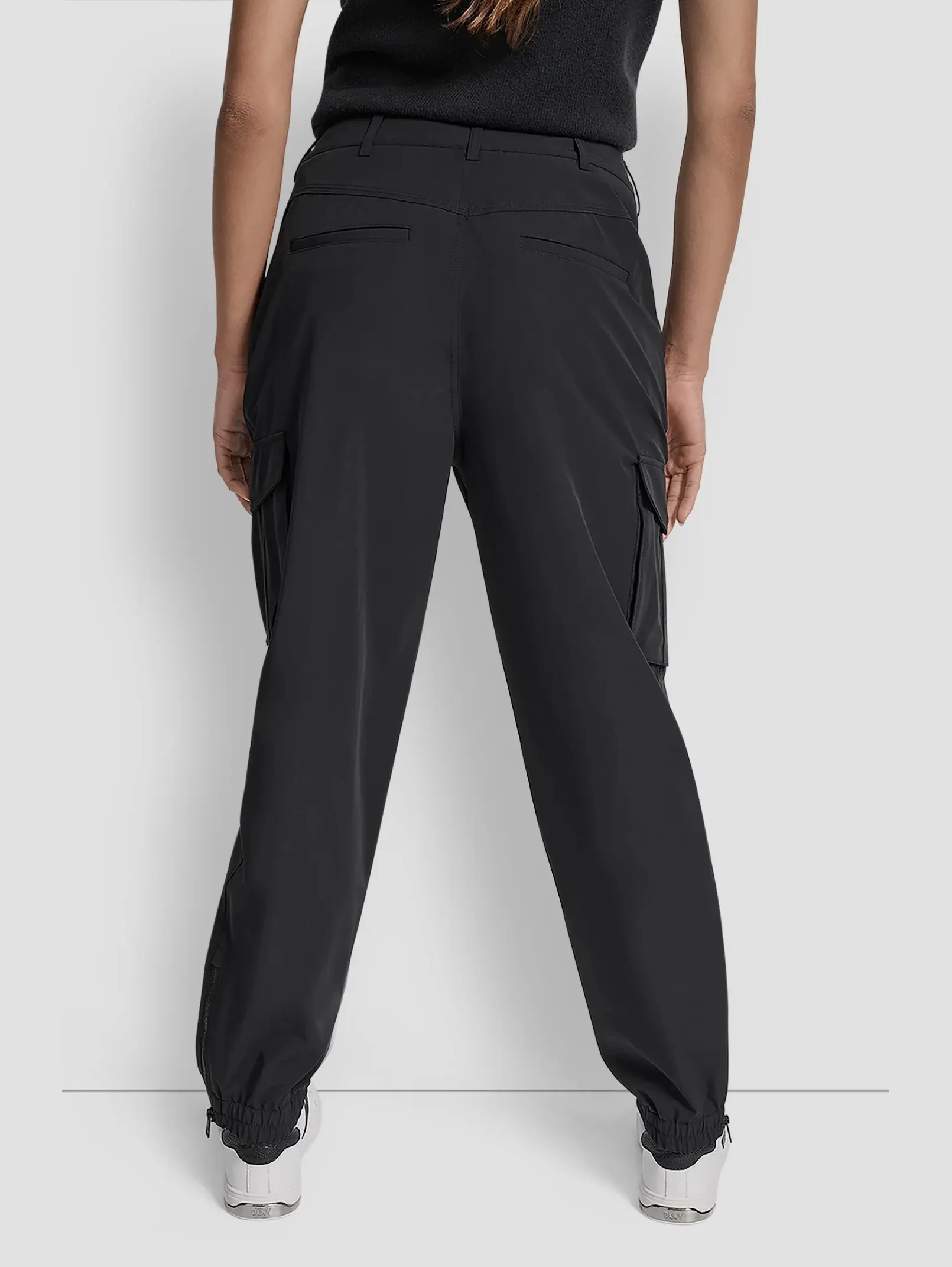 Женские брюки-карго DKNY в спортивно-городском стиле выполнены с высокой талией и дополнены функциональными карманами. Молнии на щиколотках позволяют регулировать посадку и добавляют динамики образу.