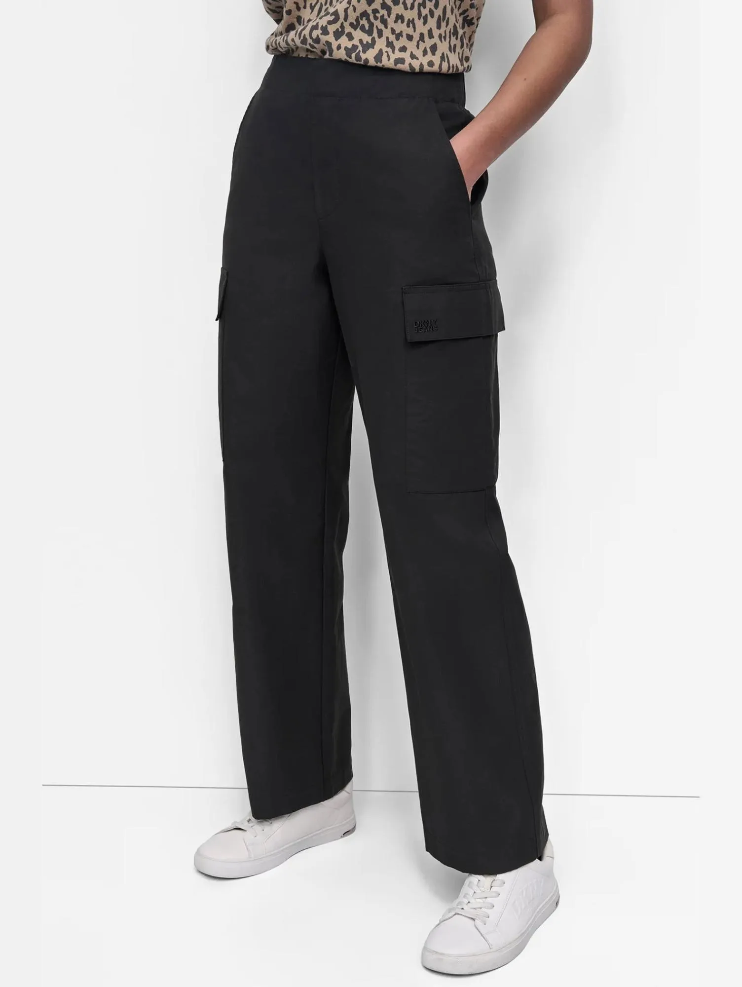 Женские брюки-карго DKNY с высокой посадкой и частично эластичной талией создают стильный городской образ. Лаконичный крой и фирменные карманы-карго делают модель трендовой и выразительной.