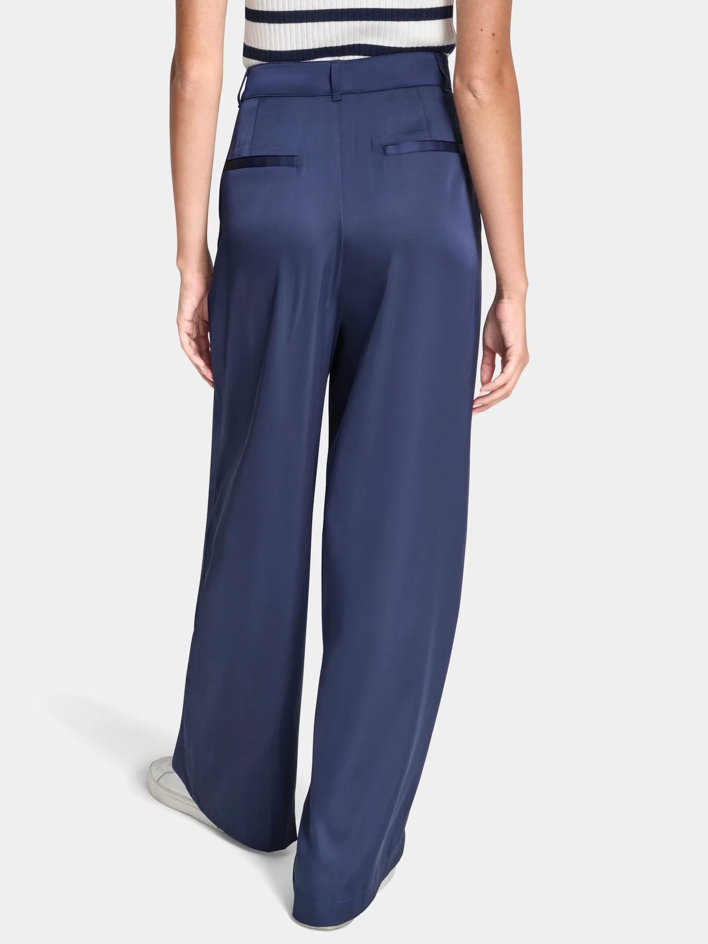 Женские брюки из полиэстера и спандекса — стильная и комфортная модель для повседневного и делового гардероба. Свободный широкий крой с аккуратными складками спереди подчёркивает силуэт и обеспечивает свободу движений. Гладкая эластичная ткань хорошо держит форму, а лаконичный дизайн легко сочетается с топами, рубашками и жакетами.