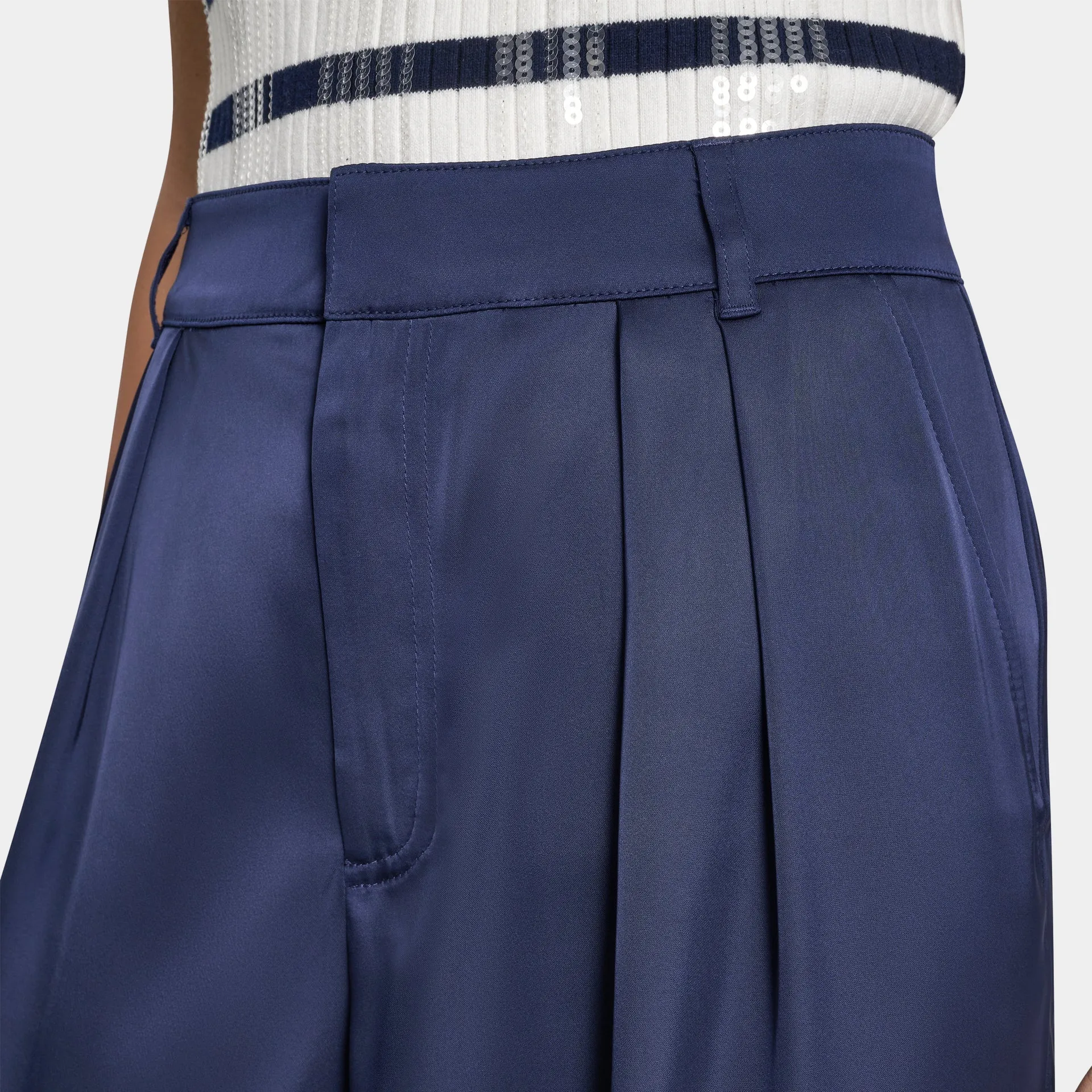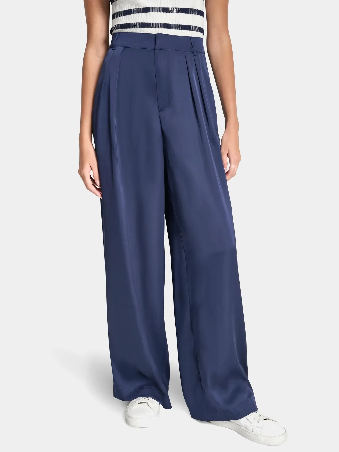 Женские брюки из полиэстера и спандекса — стильная и комфортная модель для повседневного и делового гардероба. Свободный широкий крой с аккуратными складками спереди подчёркивает силуэт и обеспечивает свободу движений. Гладкая эластичная ткань хорошо держит форму, а лаконичный дизайн легко сочетается с топами, рубашками и жакетами.