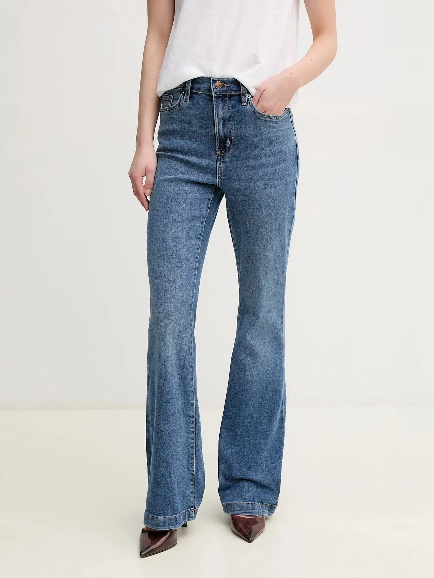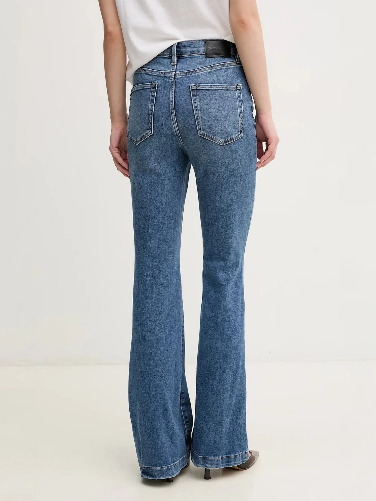 Женские джинсы-клёш от DKNY — лаконичная базовая модель с современным акцентом. Плотный деним обеспечивает комфорт в движении, а силуэт с расклешённым низом визуально вытягивает ноги и легко сочетается с разными образами — от кэжуал до более элегантных.