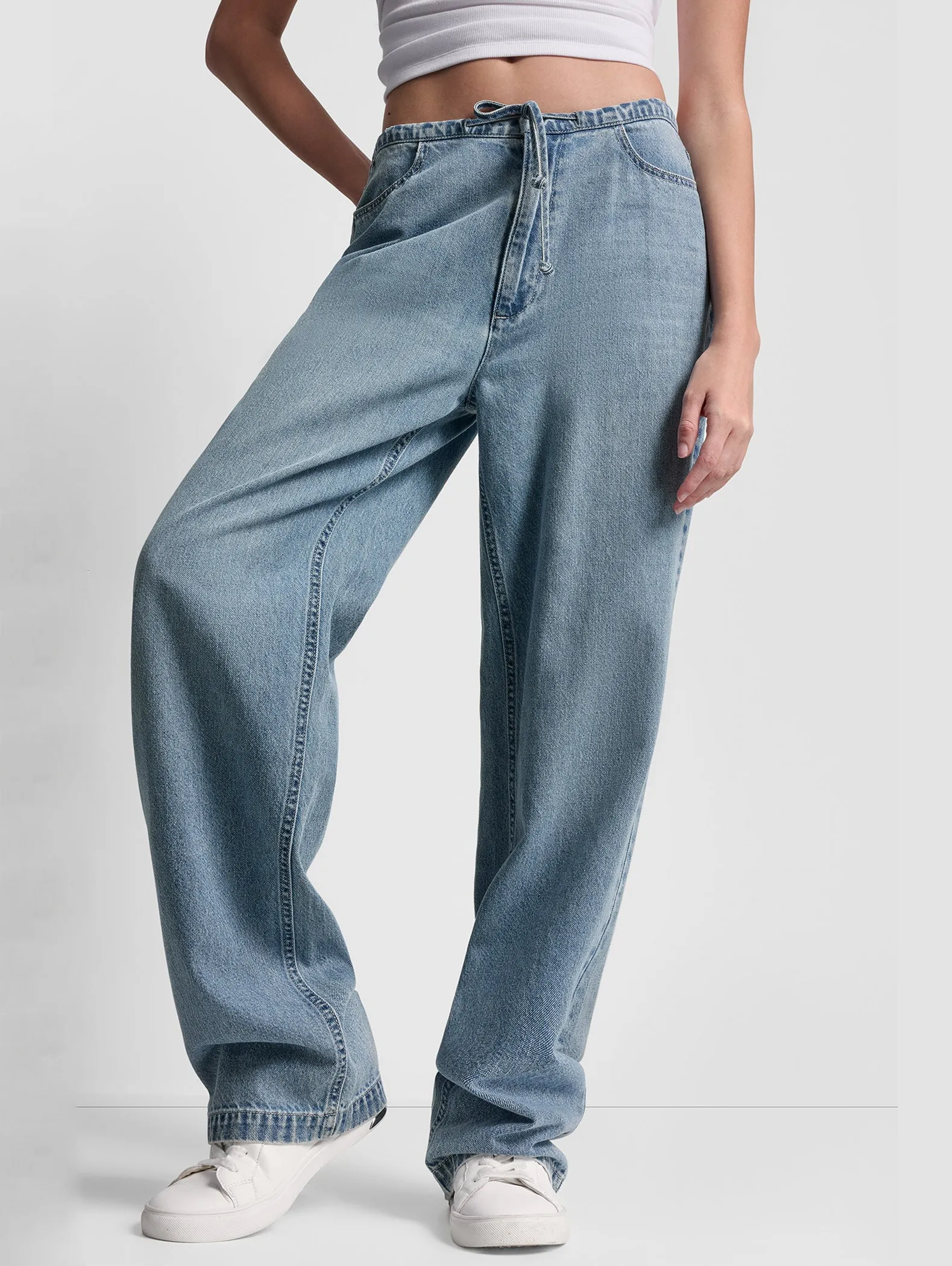 Женские джинсы свободного кроя — стильная и комфортная модель для повседневных образов. Прямой широкий силуэт визуально вытягивает фигуру и обеспечивает свободу движений. Эластичный пояс со шнурком обеспечивает удобную посадку, а классический деним легко сочетается с футболками, топами и худи. Идеальный вариант для городского casual-гардероба.