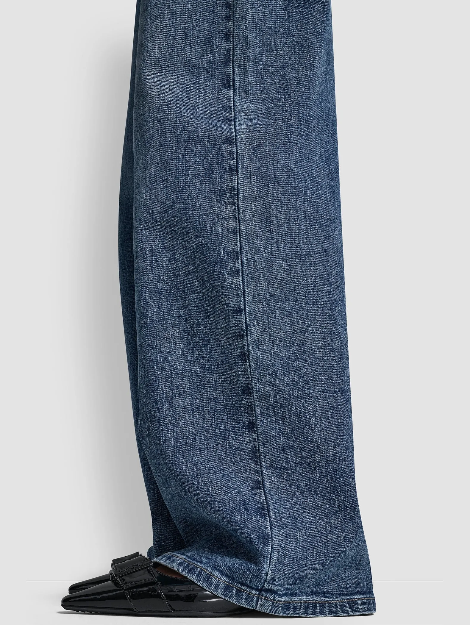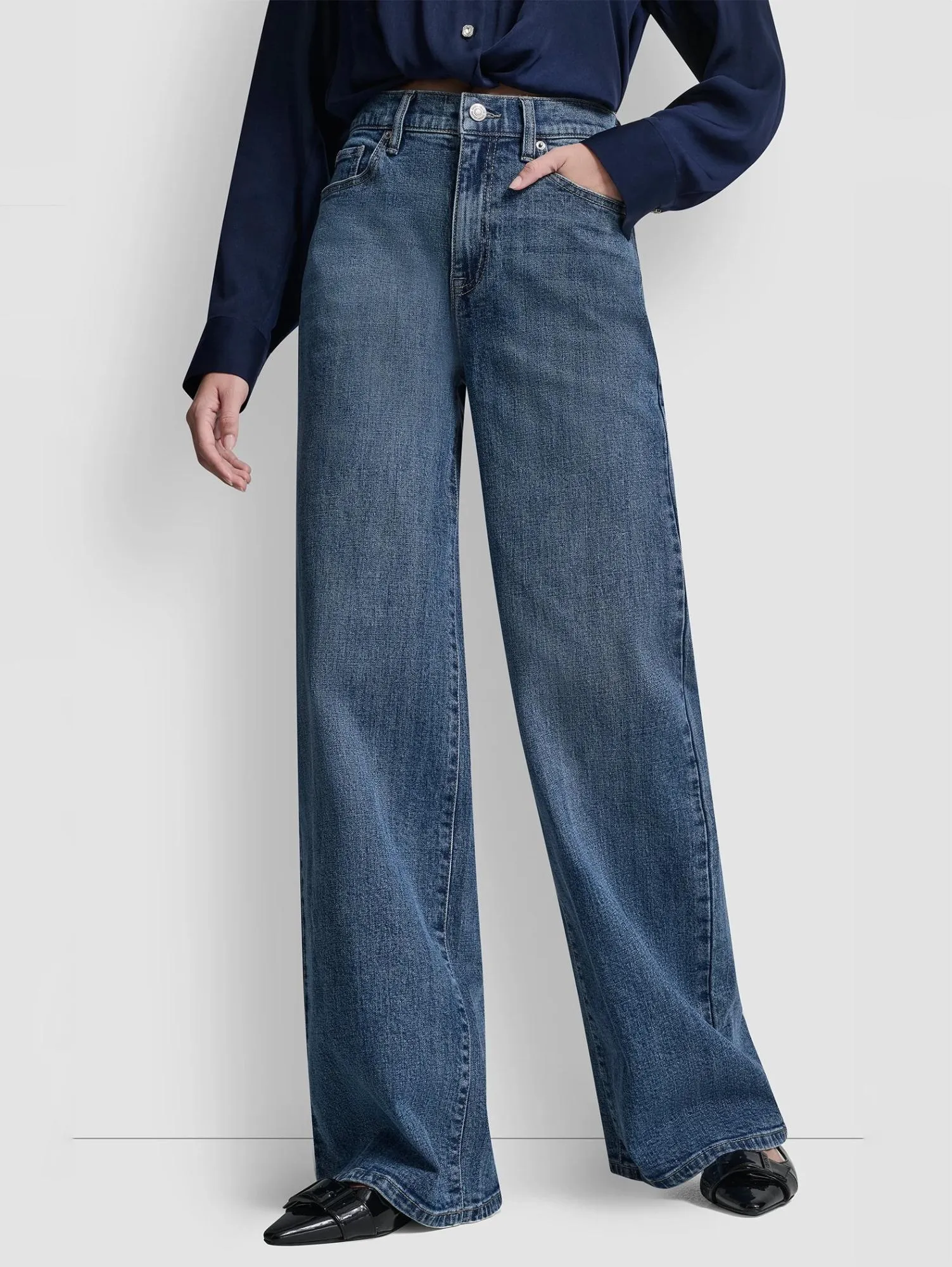 Женские широкие джинсы с высокой посадкой выгодно подчеркивает талию. Выполнены из мягкого денима с лёгкой эластичностью — для комфорта на весь день. Универсальный силуэт подходит под кроссовки, ботинки и каблуки.