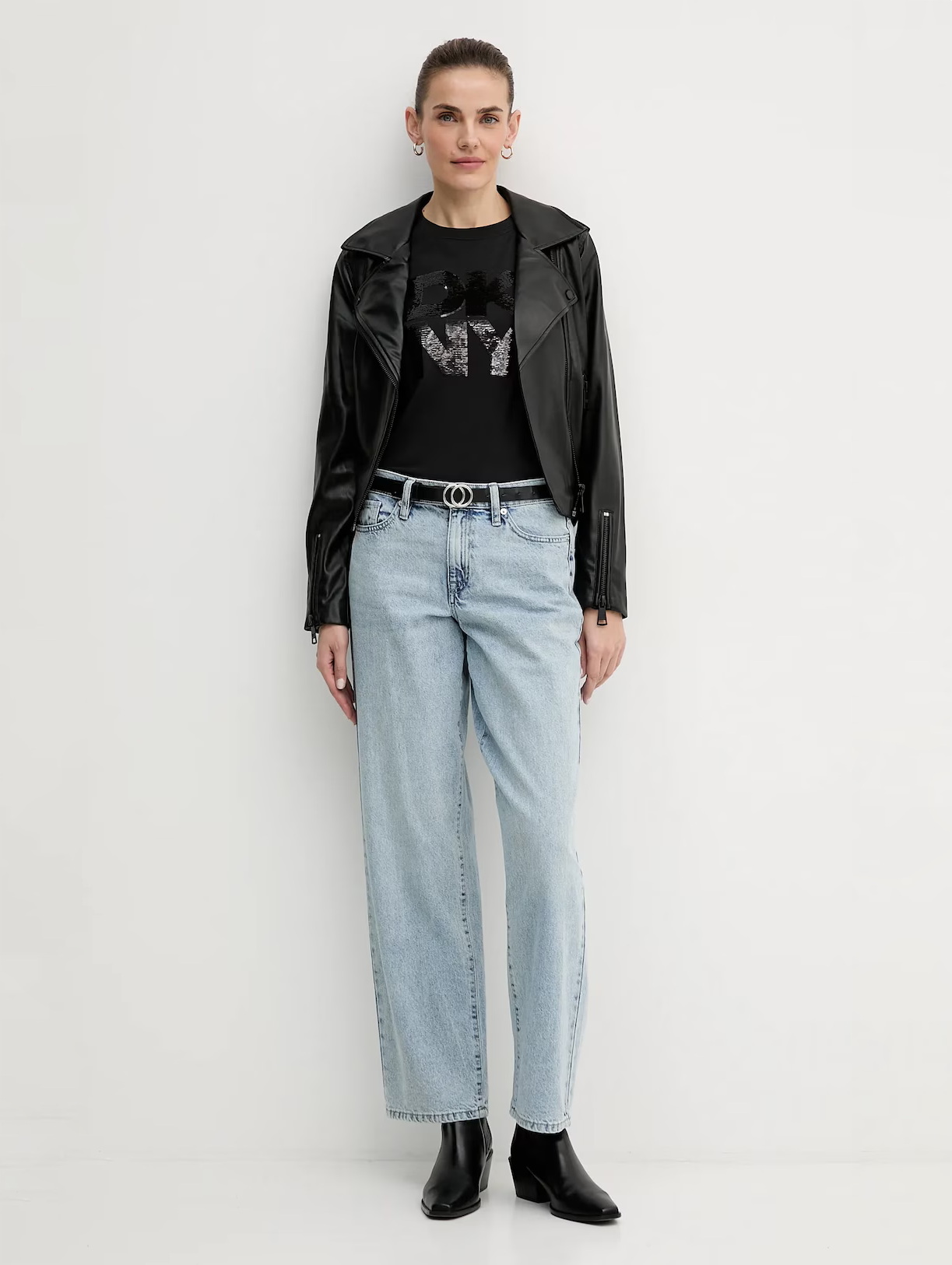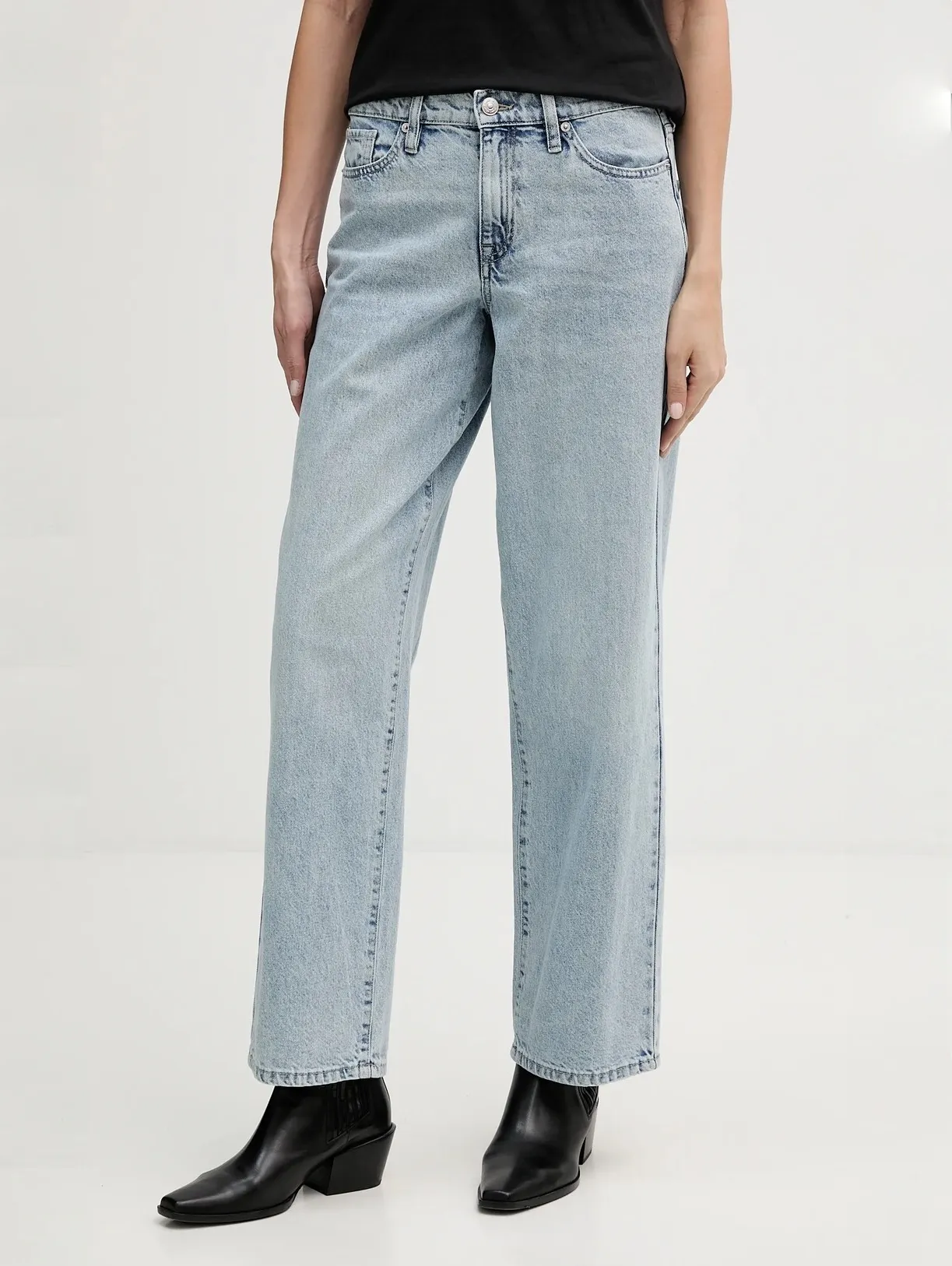 Женские джинсы — универсальный вариант для повседневного образа. Модель прямого, широкого кроя из хлопка комфортно садится по фигуре и не сковывает движений.