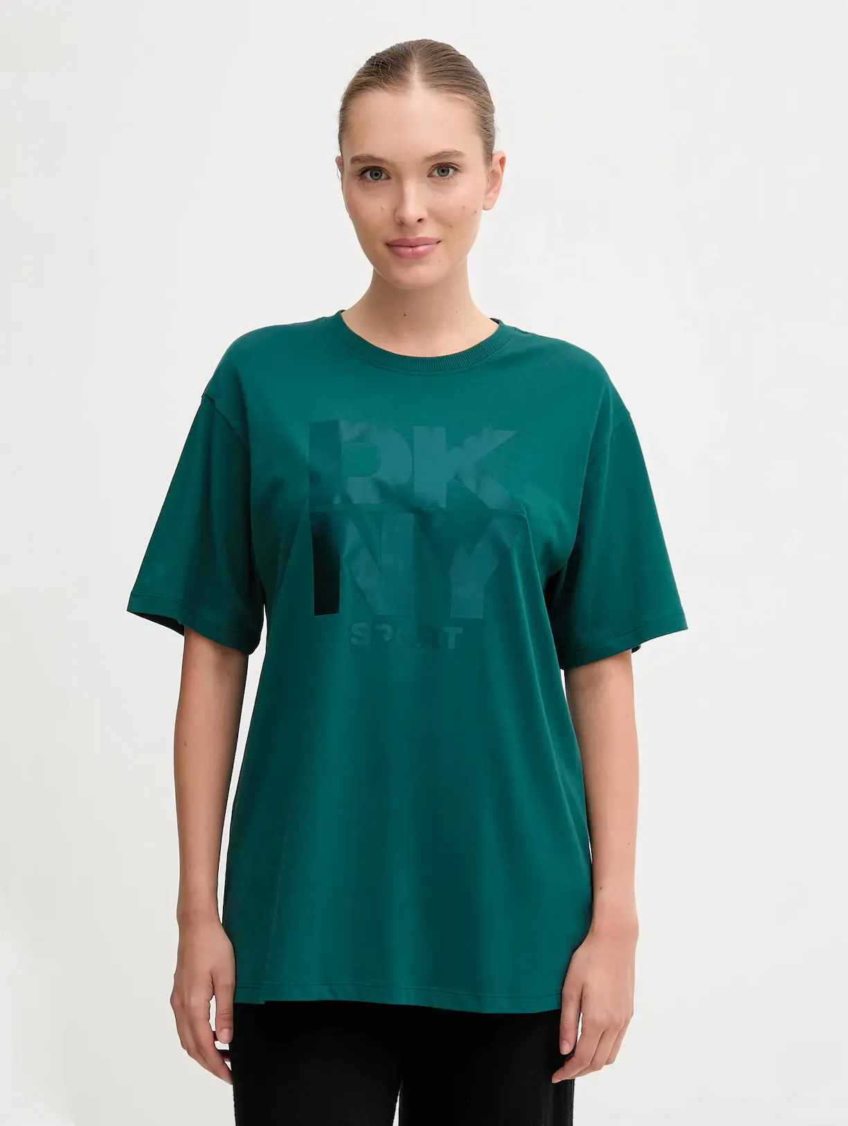 Оверсайз-футболка DKNY из хлопка с крупным фирменным логотипом спереди — выразительный элемент повседневного гардероба. Свободный крой, спущенные плечи и минималистичный дизайн подчеркивают характерный для бренда городской стиль.