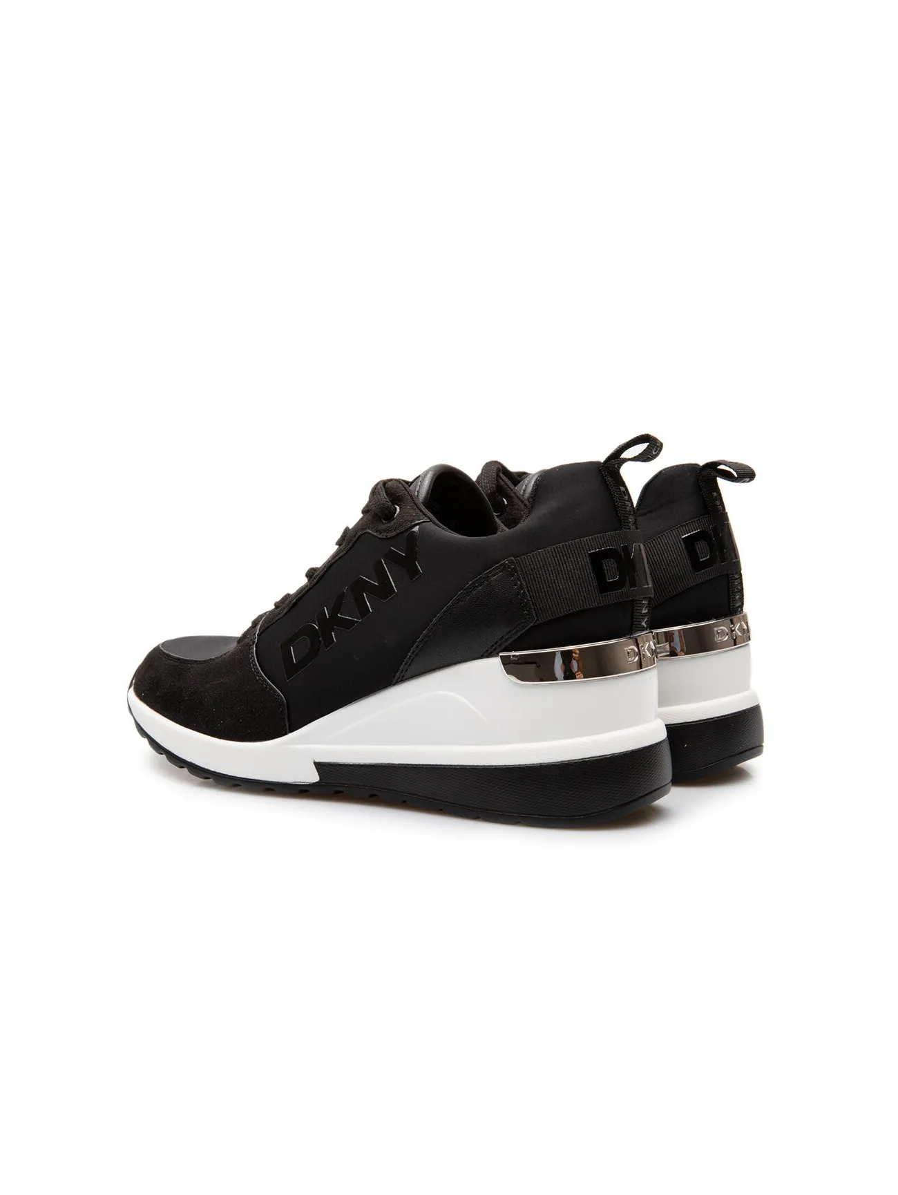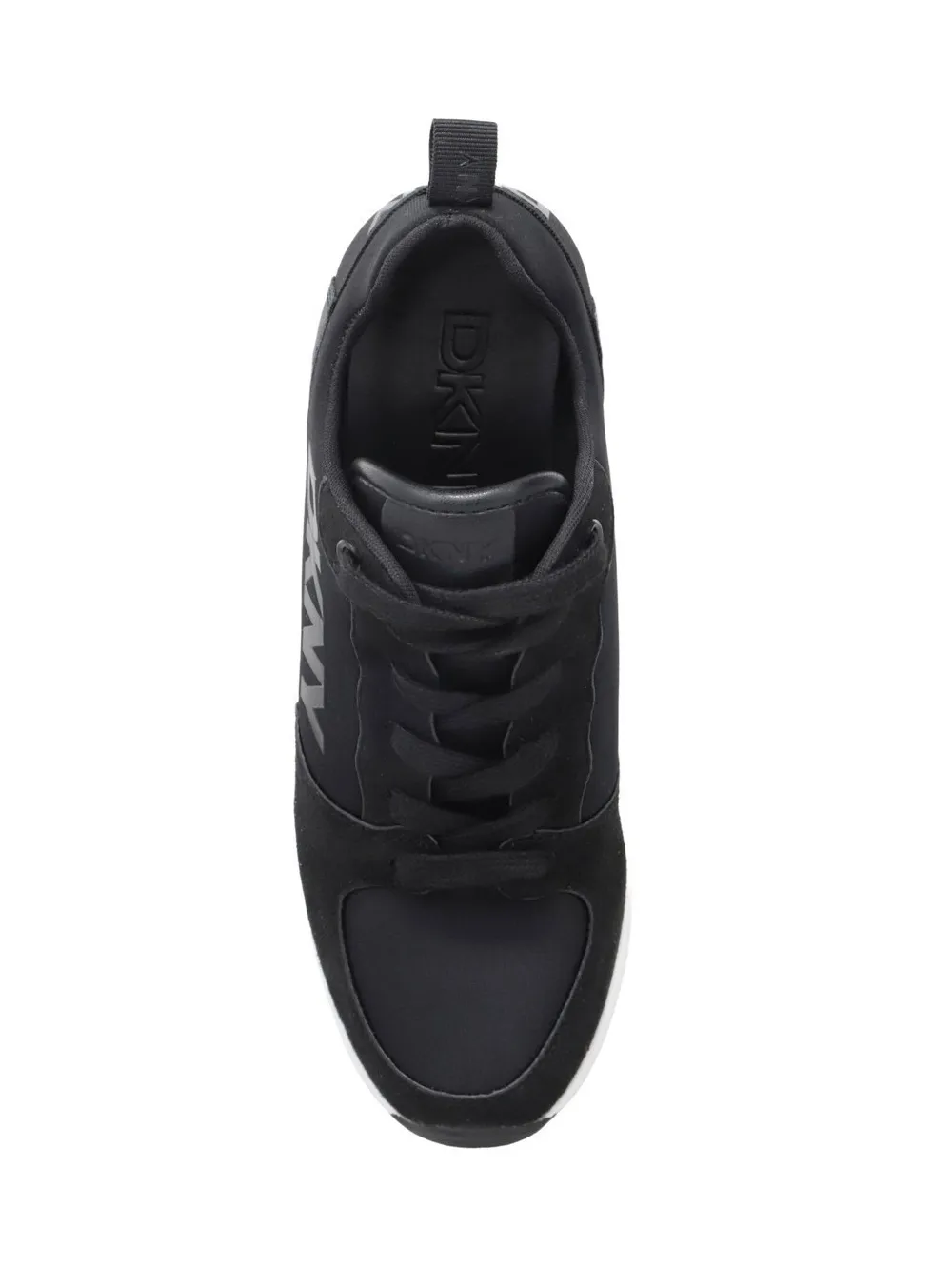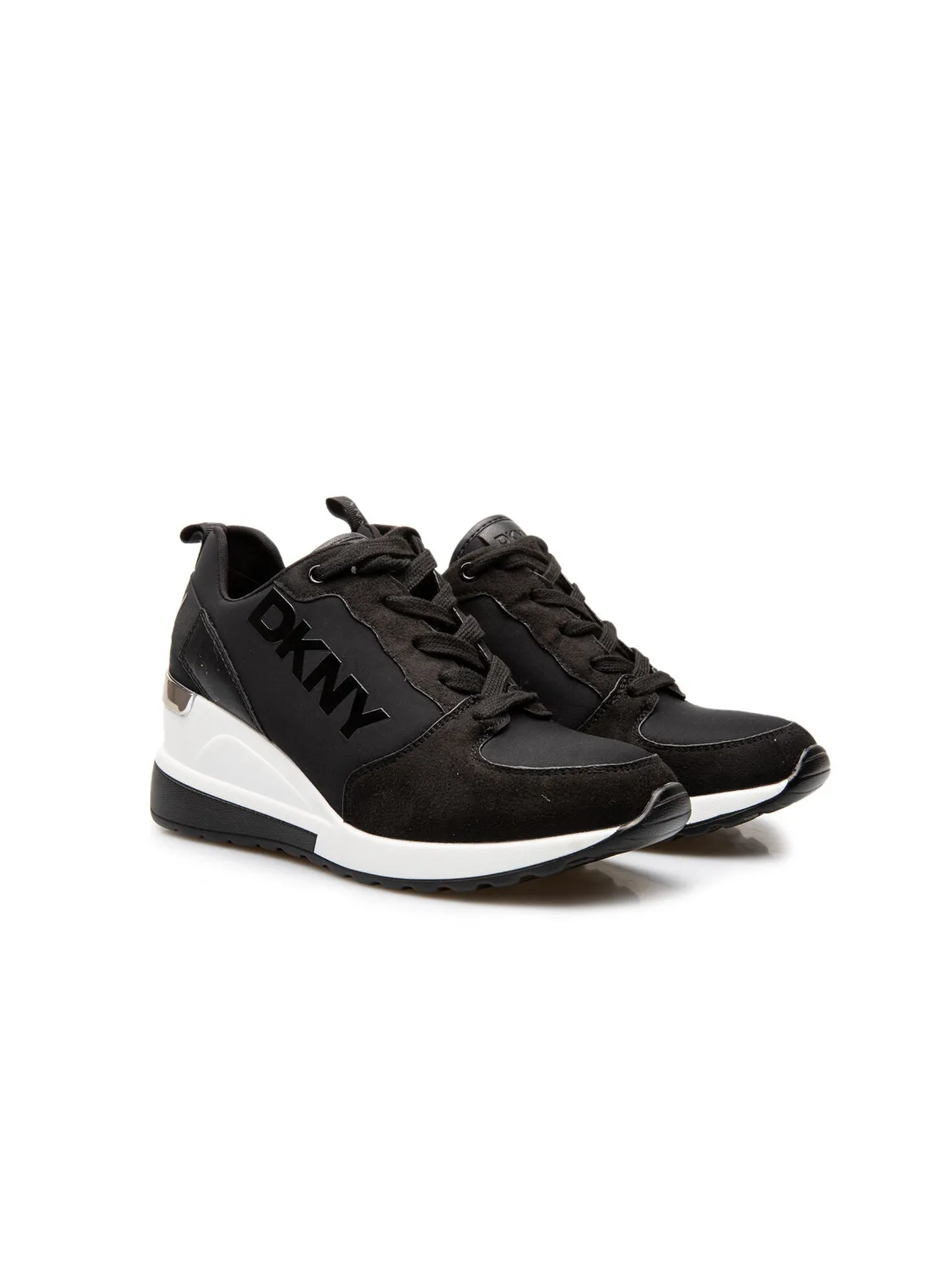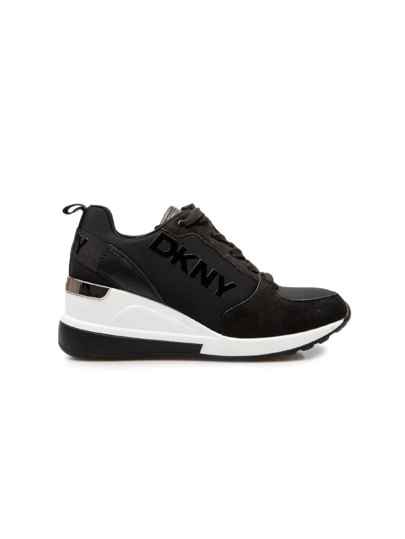 Женские кроссовки DKNY на танкетке — стильное и практичное решение для повседневной носки. Верх из текстиля обеспечивает комфорт. Классическая шнуровка гарантирует надёжную посадку и индивидуальную регулировку. Прочная резиновая подошва гарантирует устойчивость при ходьбе. Кроссовки дополнены фирменным логотипом DKNY на язычке и сбоку. Лёгкие, удобные и универсальные — идеальны на каждый день.