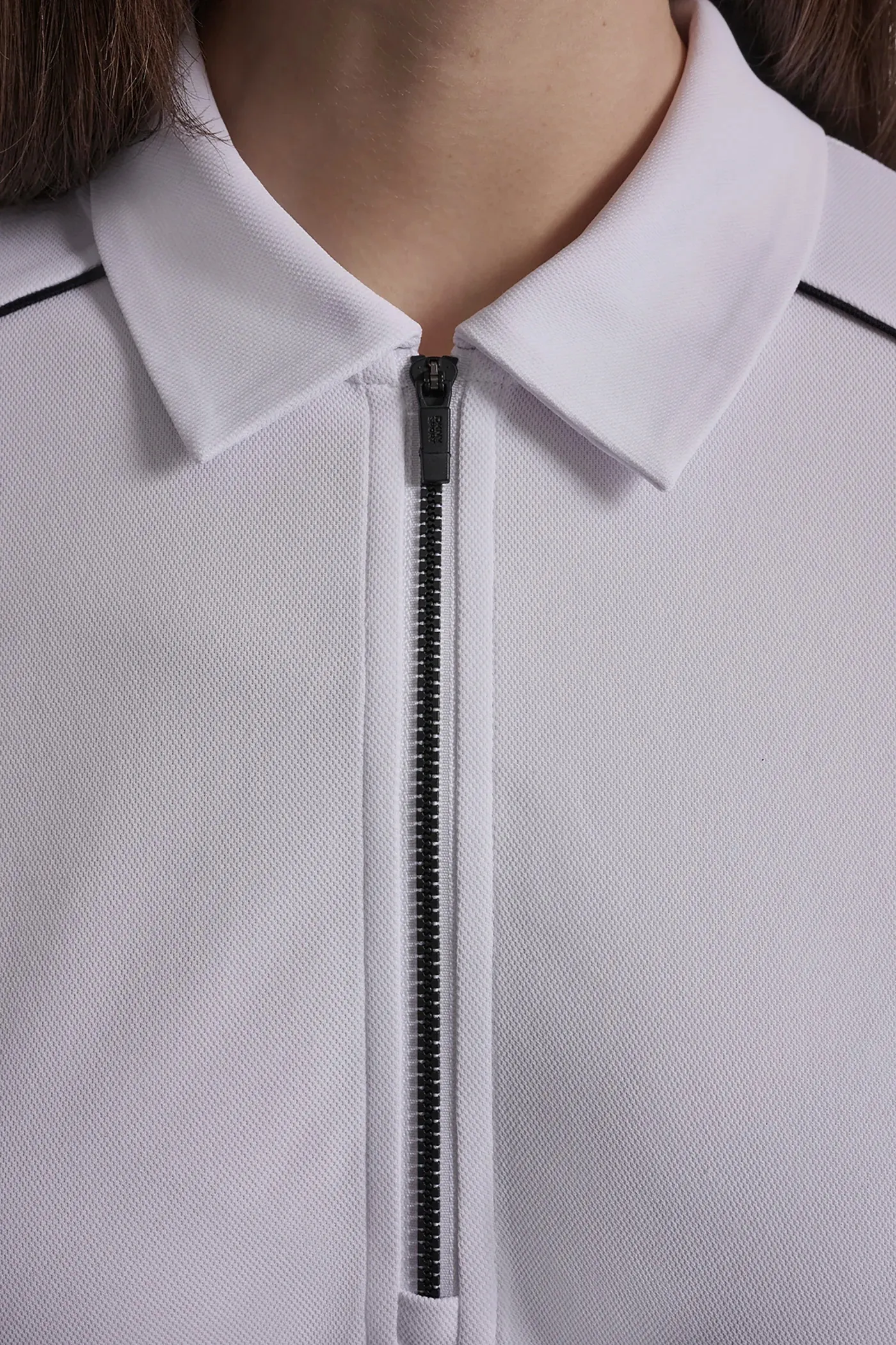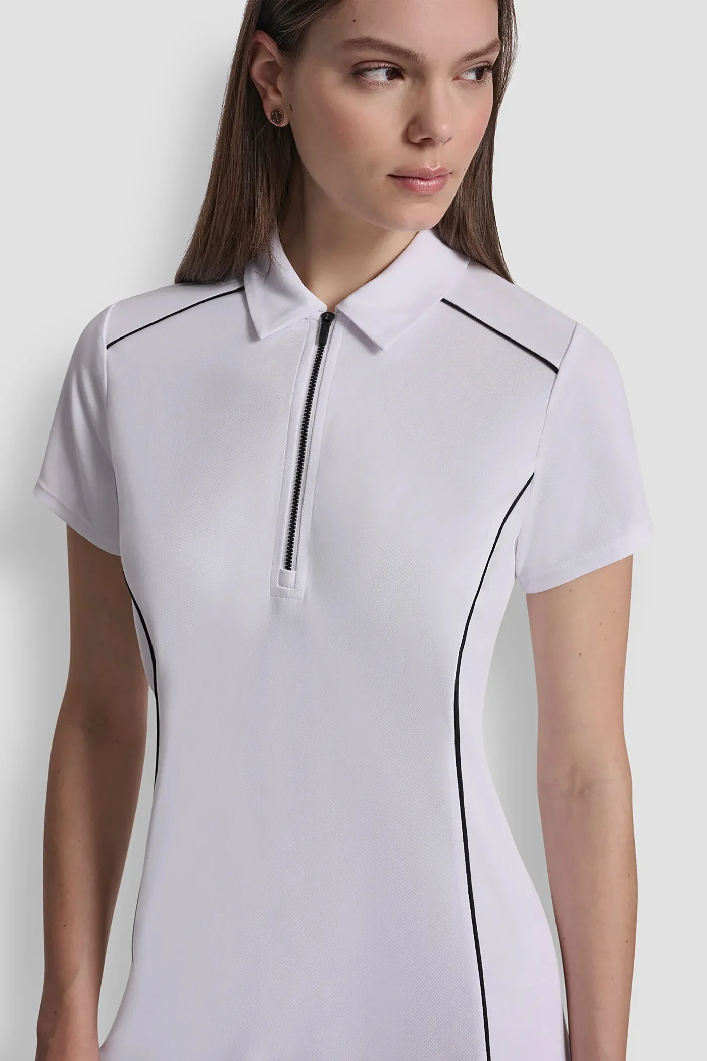 Женское платье спортивно-элегантного стиля — универсальная модель для тенниса и активного городского образа. Мягкий эластичный материал комфортно садится по фигуре и сохраняет форму. Короткие рукава и аккуратный воротник-поло на молнии создают современный лаконичный дизайн. Контрастные линии визуально подчёркивают силуэт. Платье подходит для прогулок, путешествий и повседневных образов.