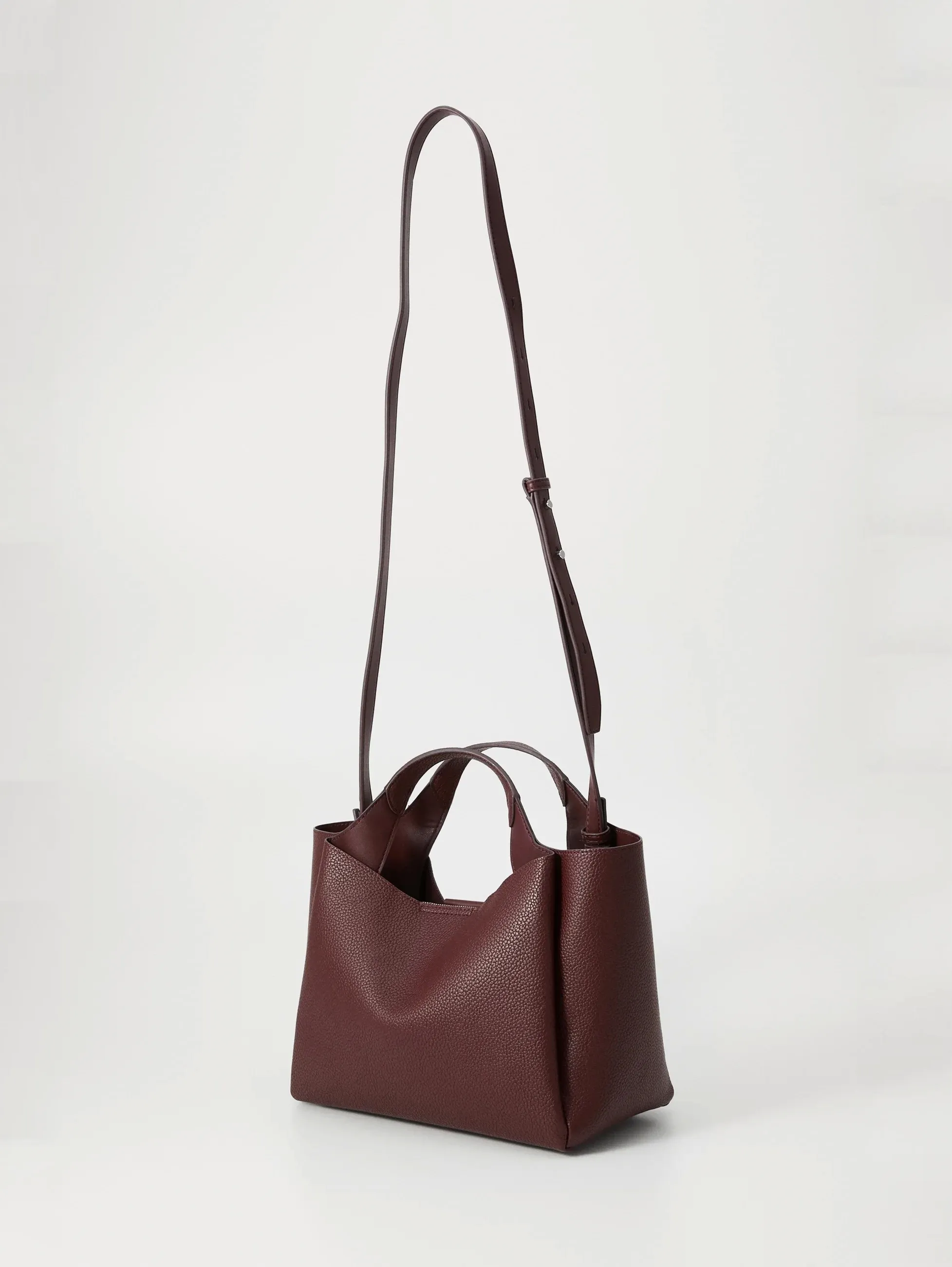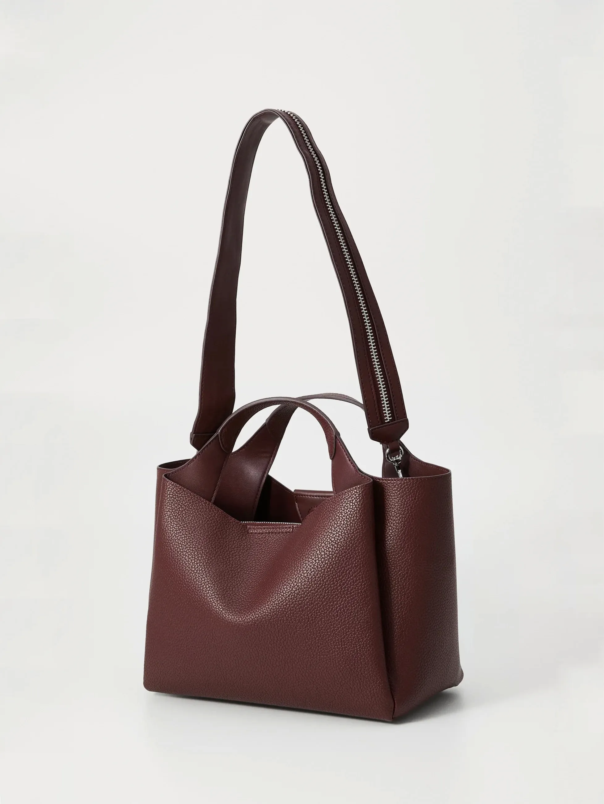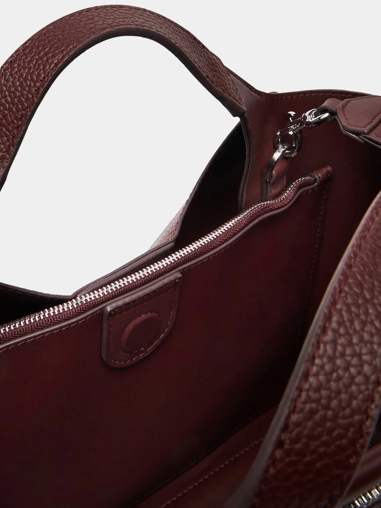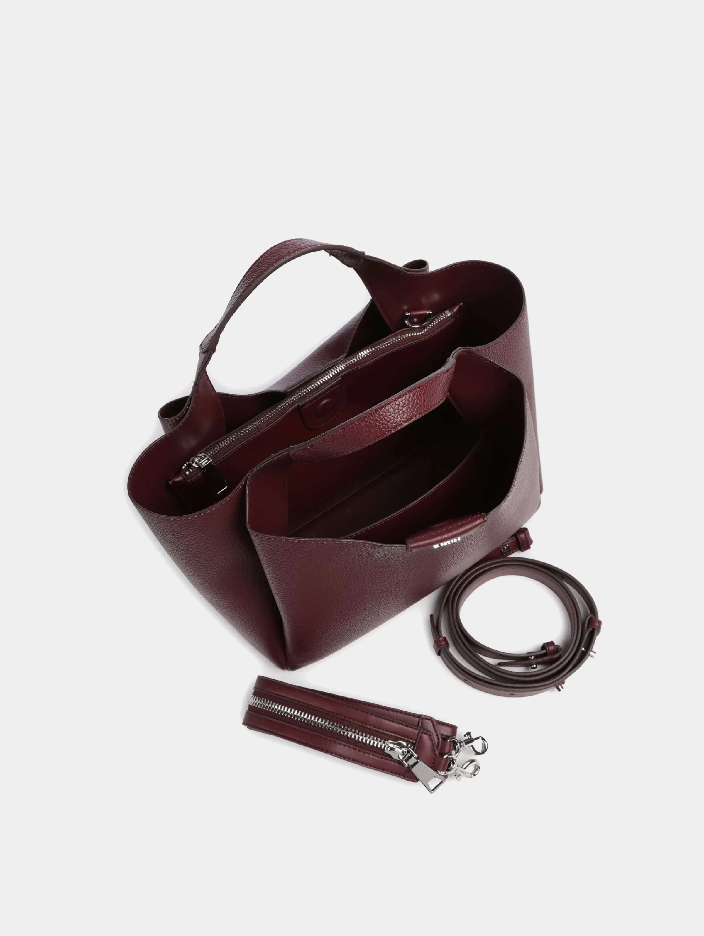 Внутри 3 отделения: 1 отделение на молнии, 2 отделения на магните, 1 накладной карман.