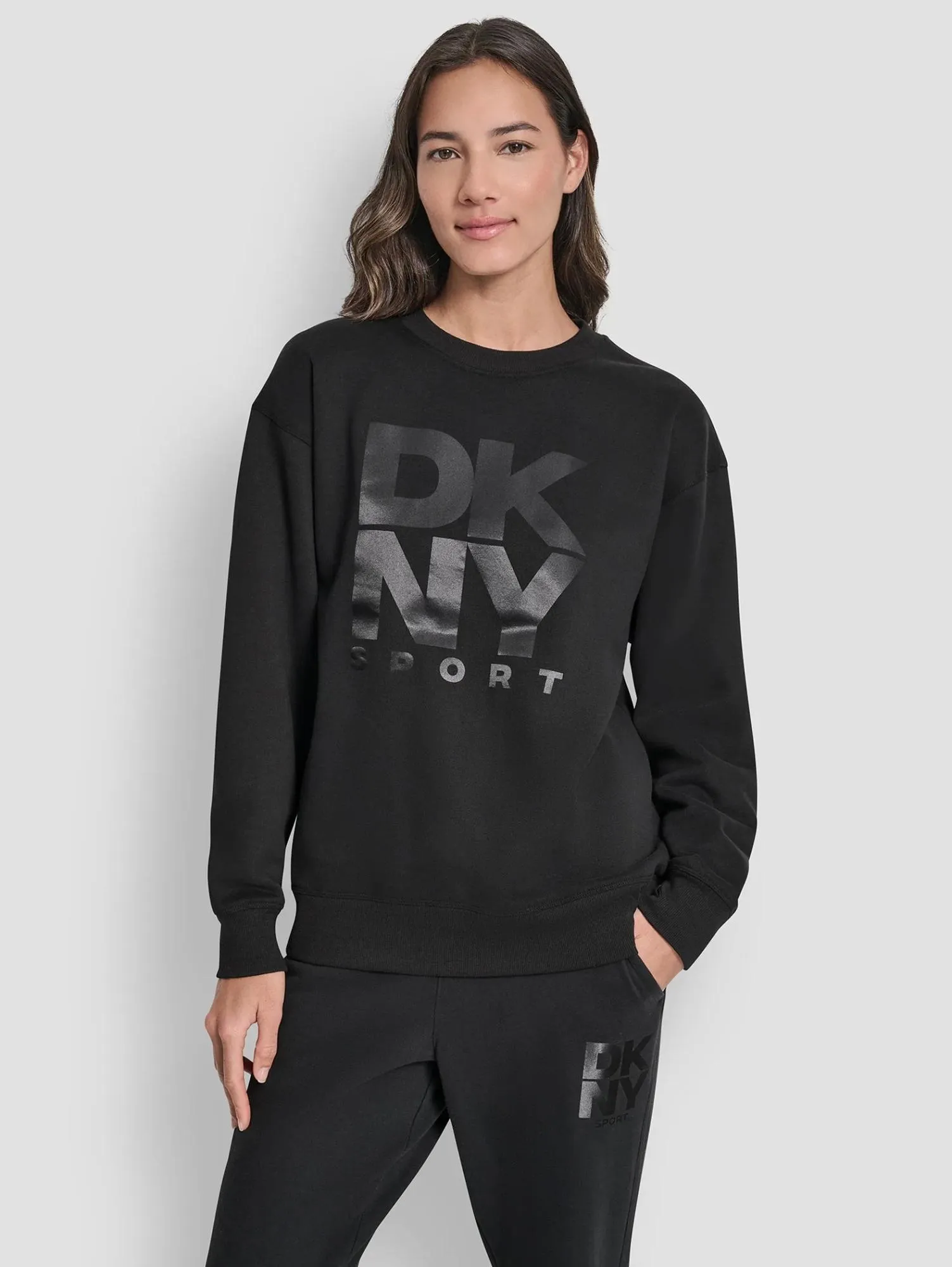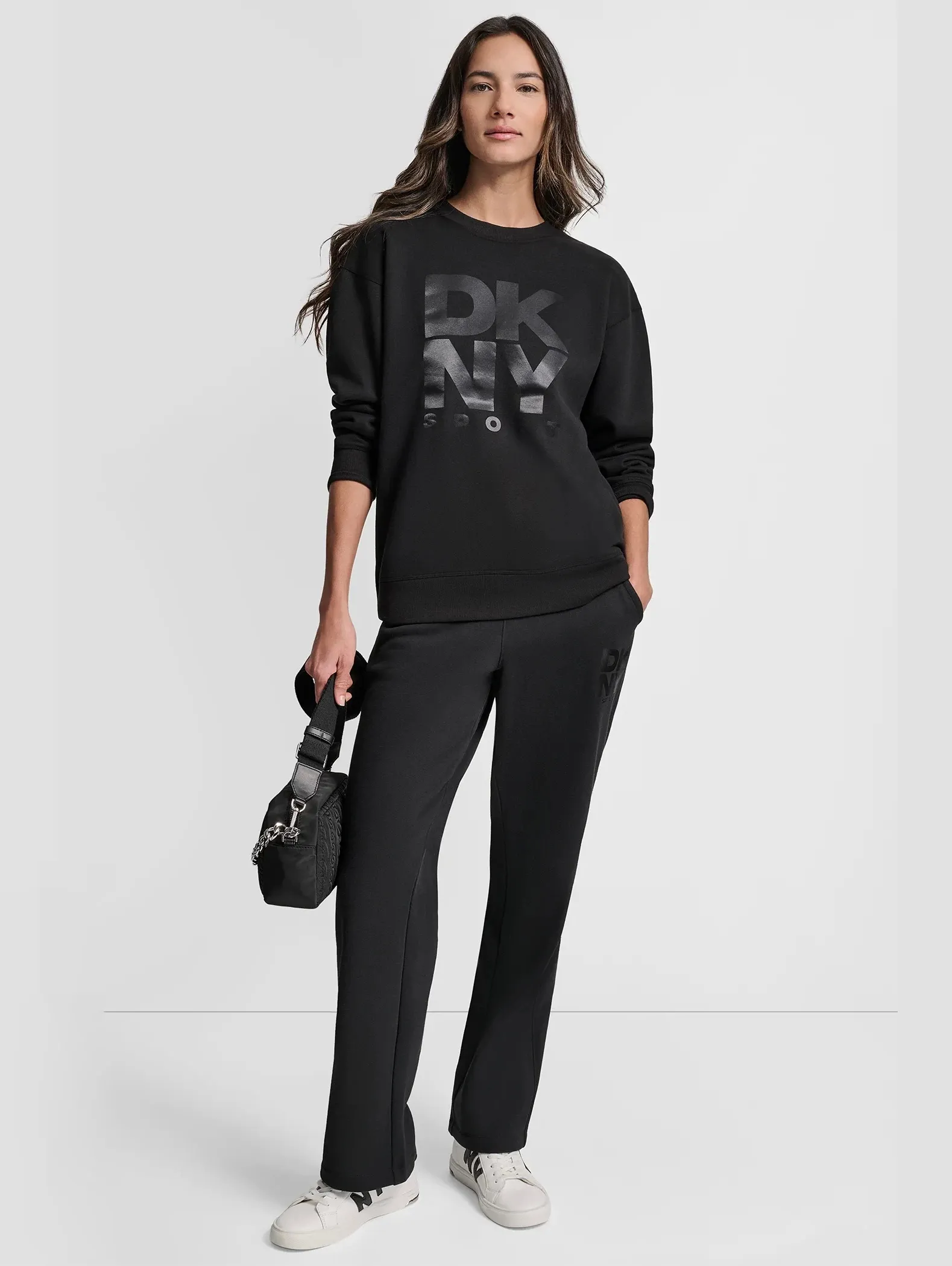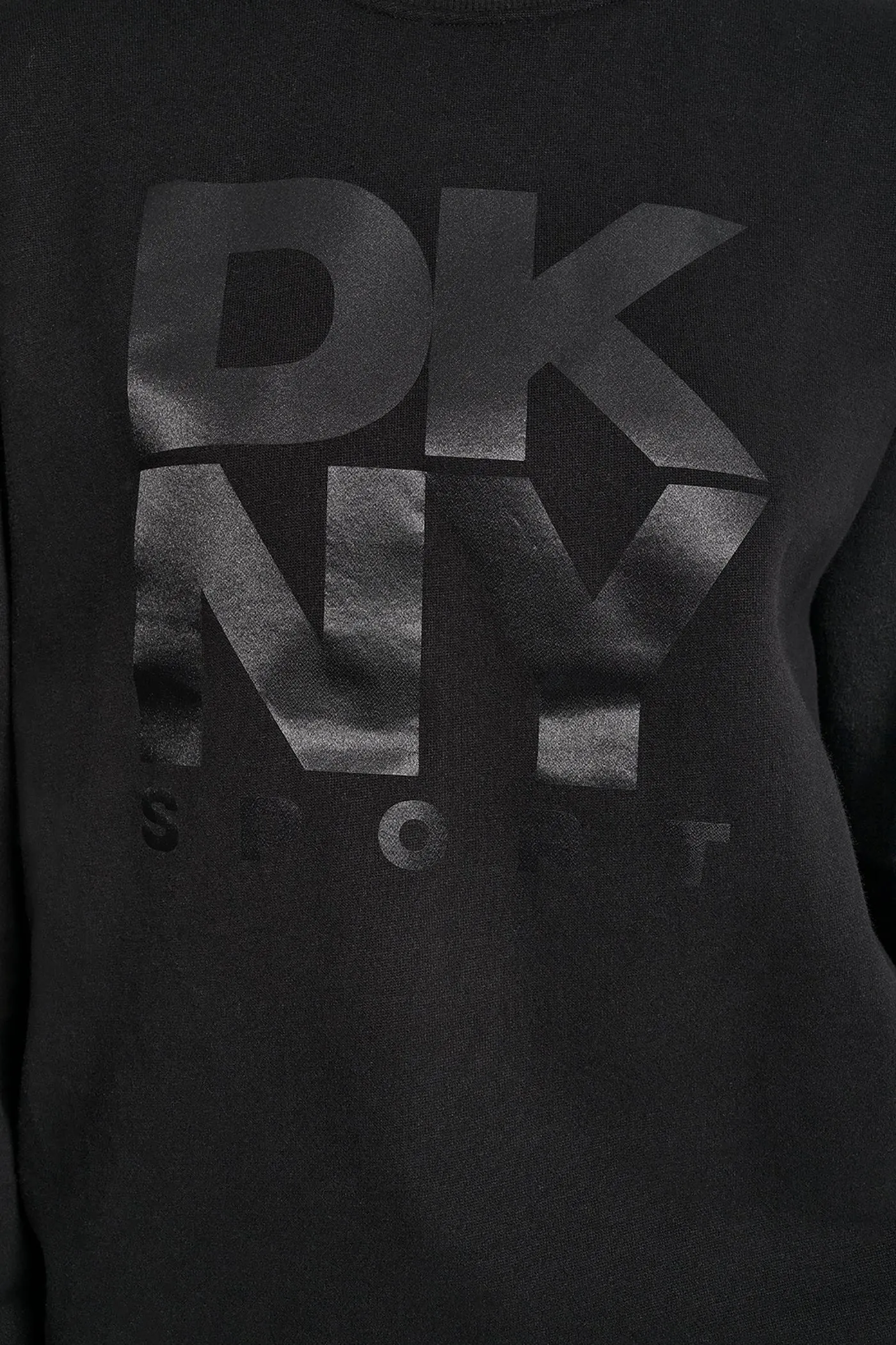 Оверсайз свитшот DKNY чёрного цвета с крупным логотипом на груди — эффектная база для повседневных образов. Прямой силуэт задаёт расслабленный стиль, а воротник, манжеты и подол в мелкий рубчик подчёркивают удобную посадку.