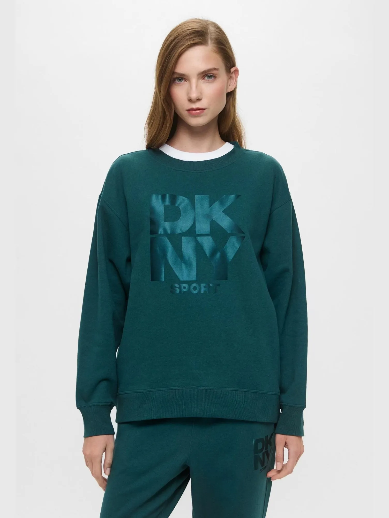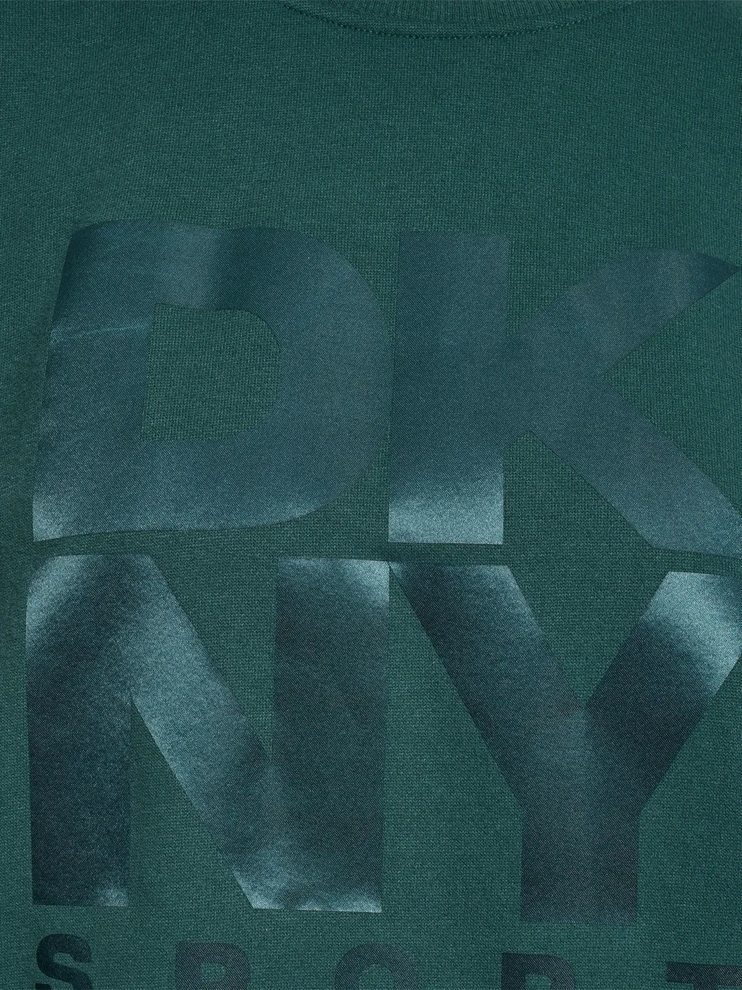 Оверсайз свитшот на флисе от DKNY зеленого цвета с крупным логотипом на груди — эффектная база для повседневных образов. Прямой силуэт задаёт расслабленный стиль, а воротник, манжеты и подол в мелкий рубчик подчёркивают удобную посадку.