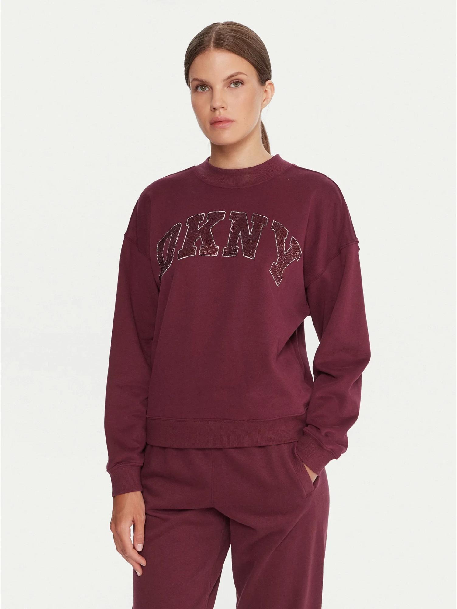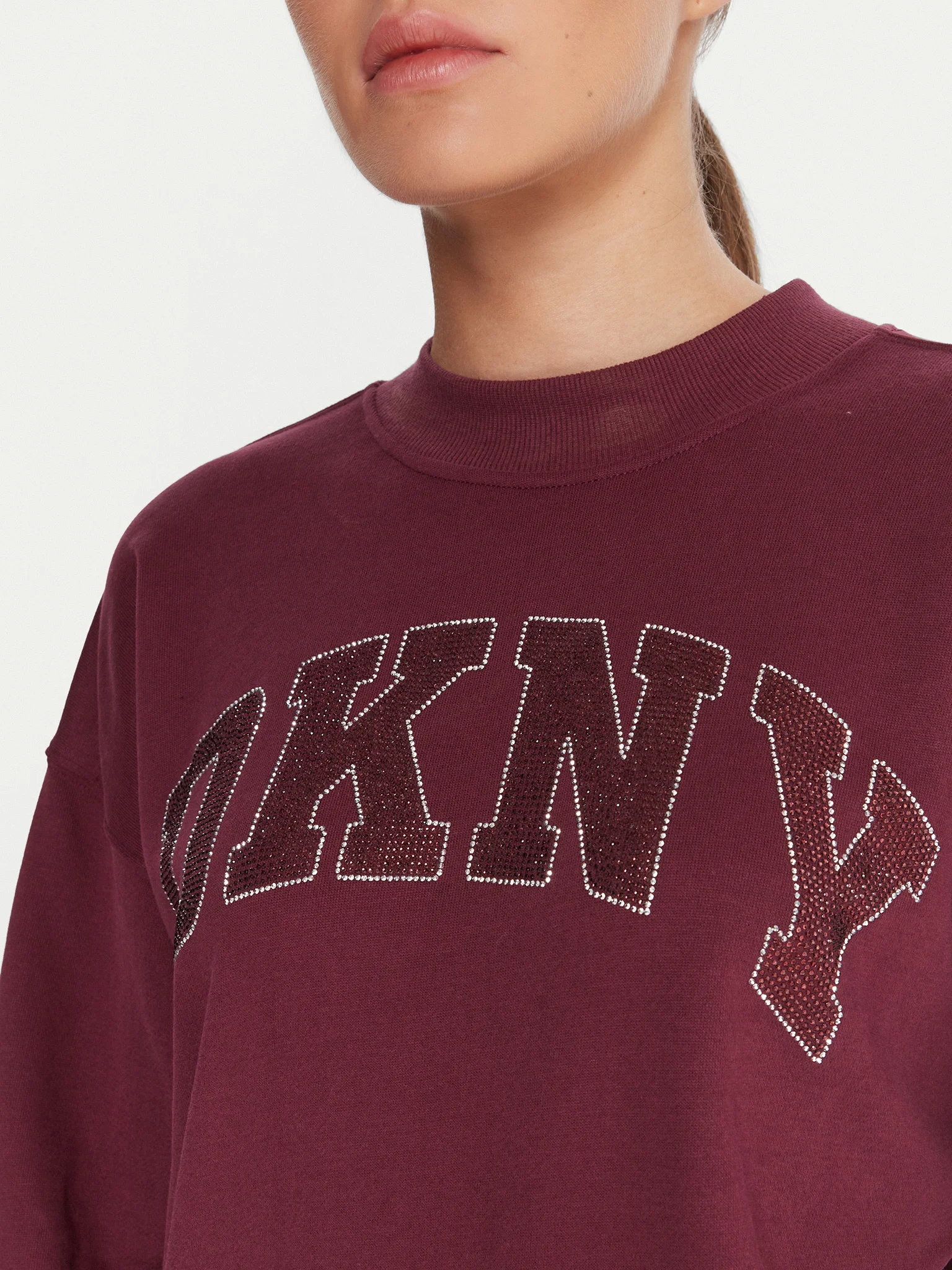Женский оверсайз свитшот DKNY с крупным логотипом из страз — эффектная деталь для повседневных образов. Прямой силуэт создаёт расслабленный стиль, а воротник, манжеты и подол в мелкий рубчик отвечают за комфортную посадку.