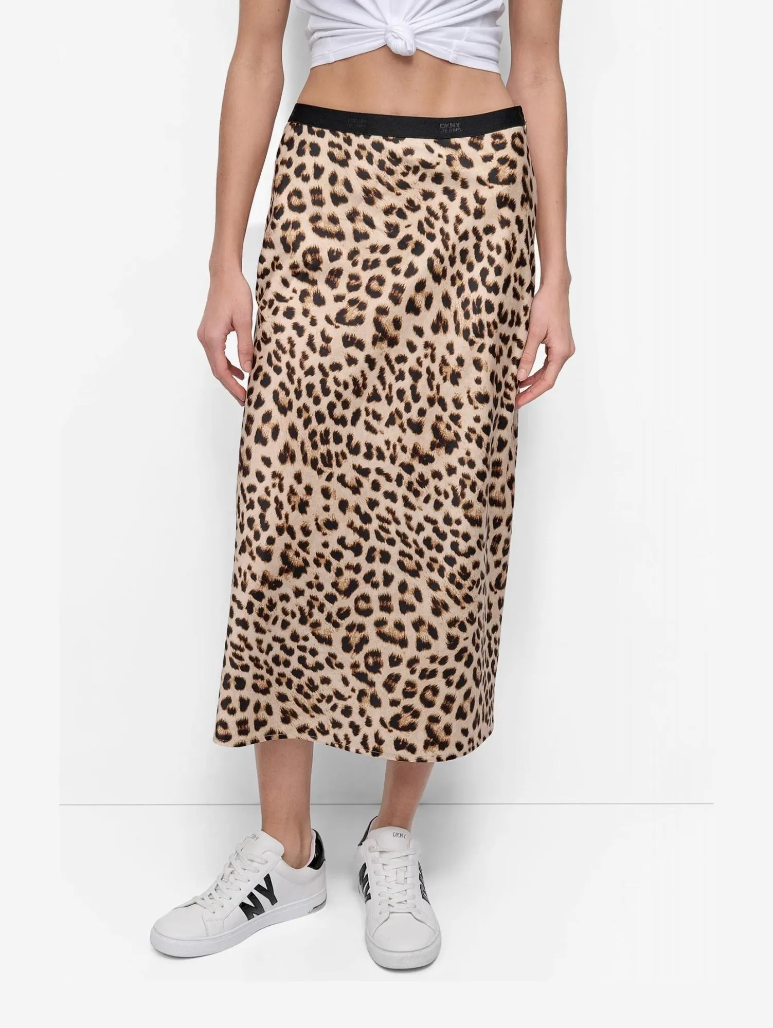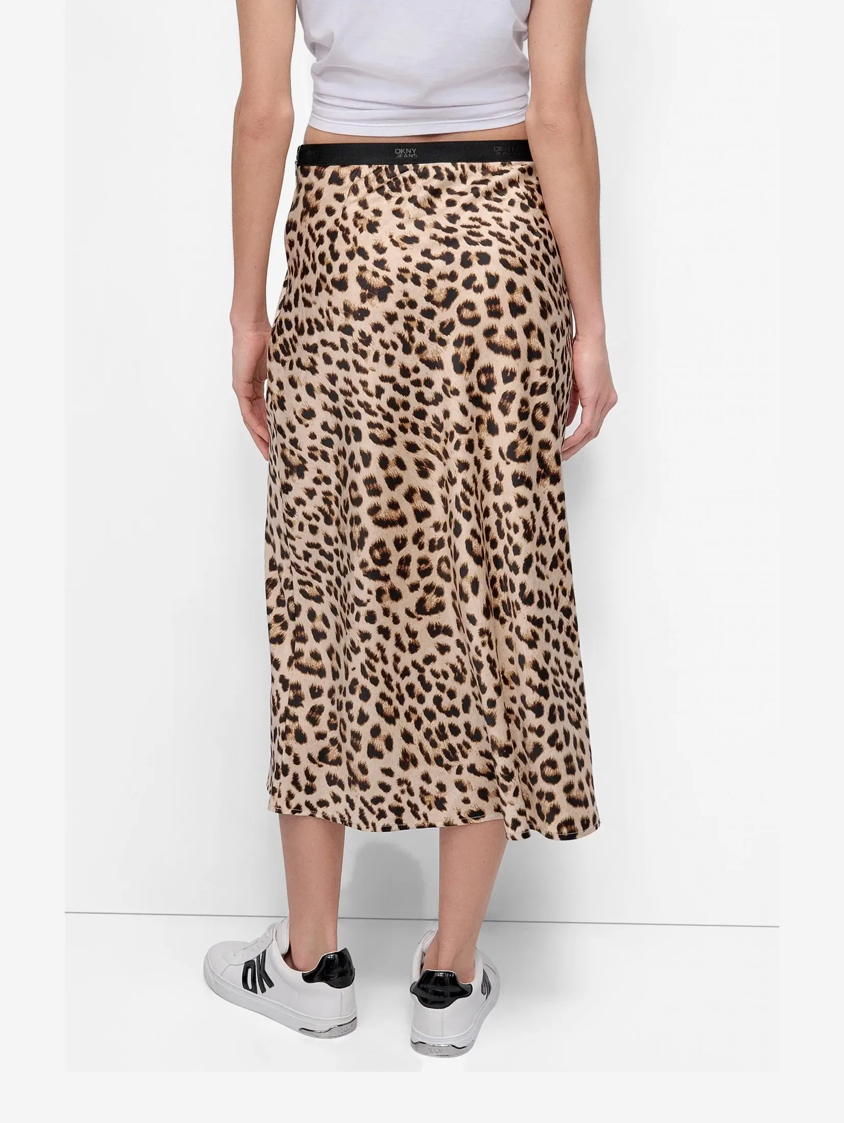 Миди-юбка с леопардовым принтом от DKNY — смелый акцент для модного гардероба. Модель прямого силуэта выполнена из лёгкой, мягкой ткани и дополнена эластичным поясом для комфортной посадки.