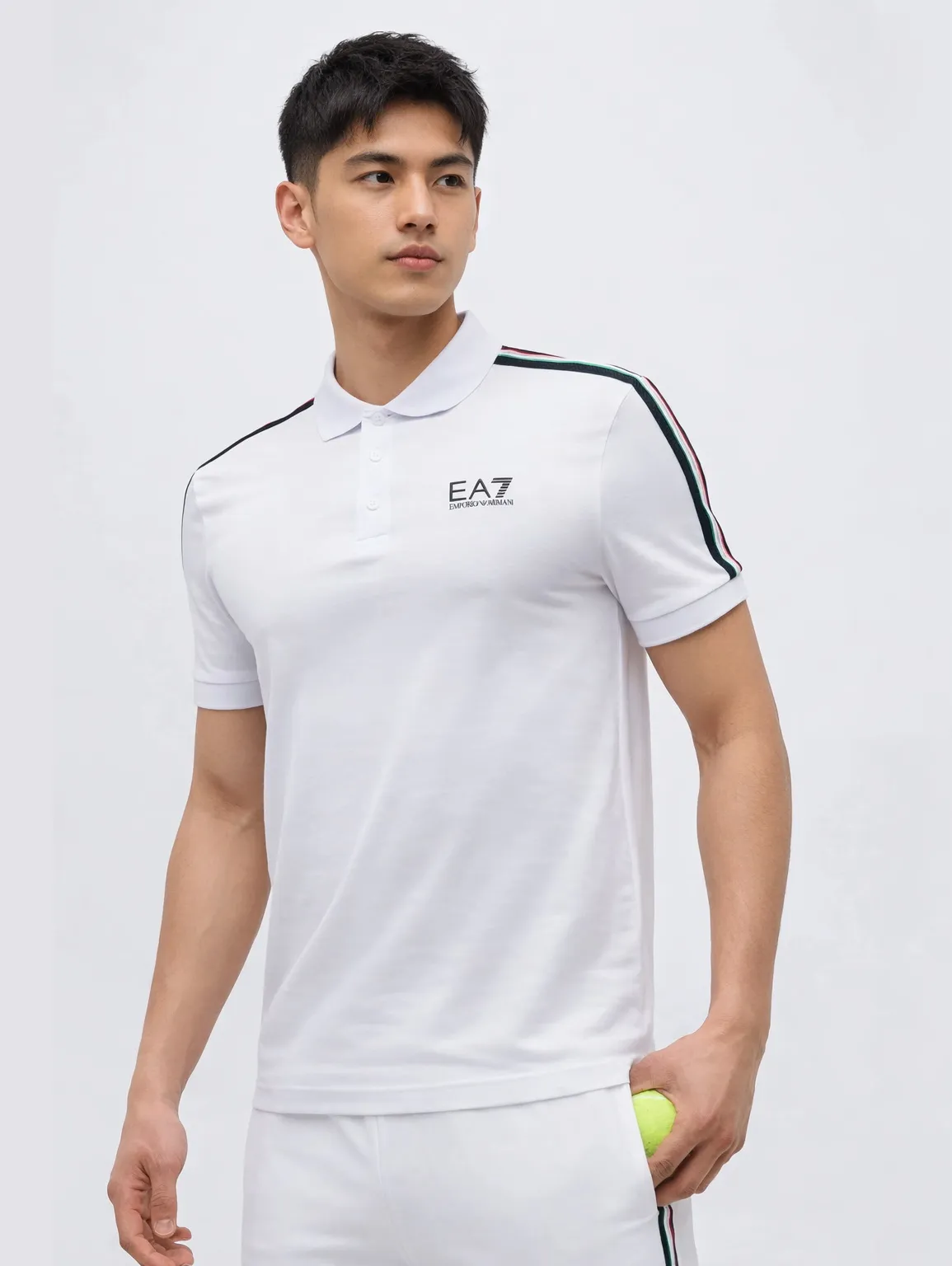 Классический воротник-поло с застёжкой на пуговицы придаёт модели аккуратный и элегантный вид. Контрастные полосы на плечах и фирменный логотип бренда на груди и спине подчёркивают спортивный стиль, делая эту модель отличным выбором для активного образа жизни.