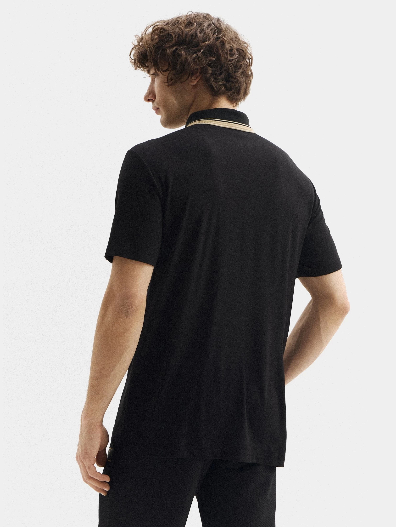 Мужское поло с короткими рукавами выполнено в современном спортивно-элегантном стиле. Модель с воротником на молнии и аккуратной контрастной отделкой выглядит сдержанно и стильно. Небольшой лаконичный логотип на груди добавляет фирменный акцент. Комфортная ткань обеспечивает удобство и свободу движений в течение дня.
