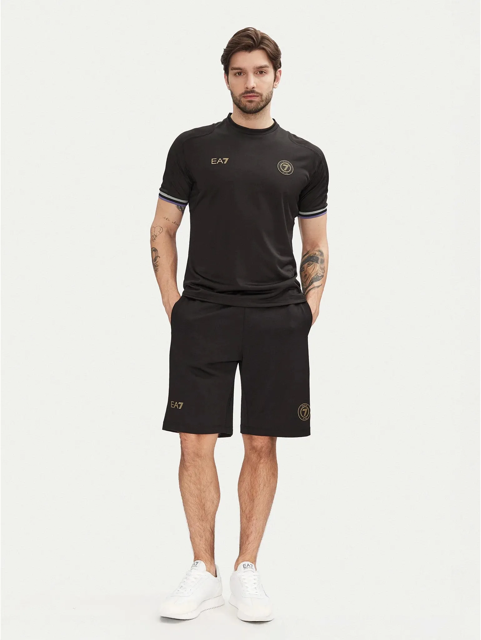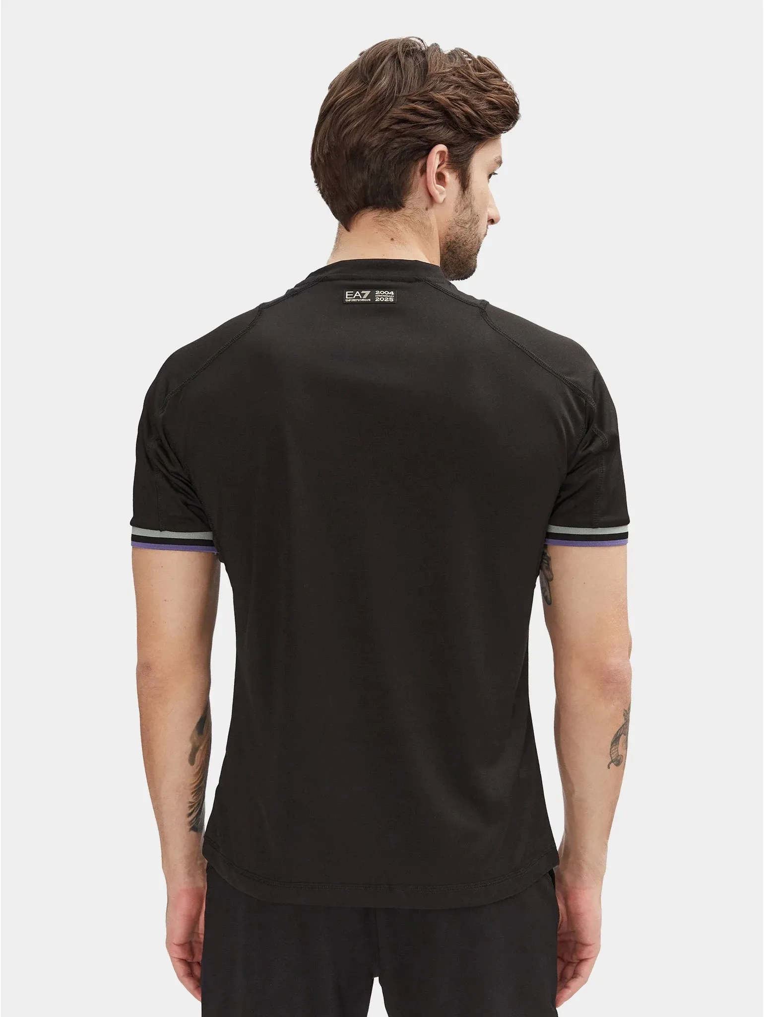 Модель с короткими рукавами-реглан и плоскими швами, которые не натирают кожу. Фирменные нашивки подчеркивают спортивный стиль бренда.