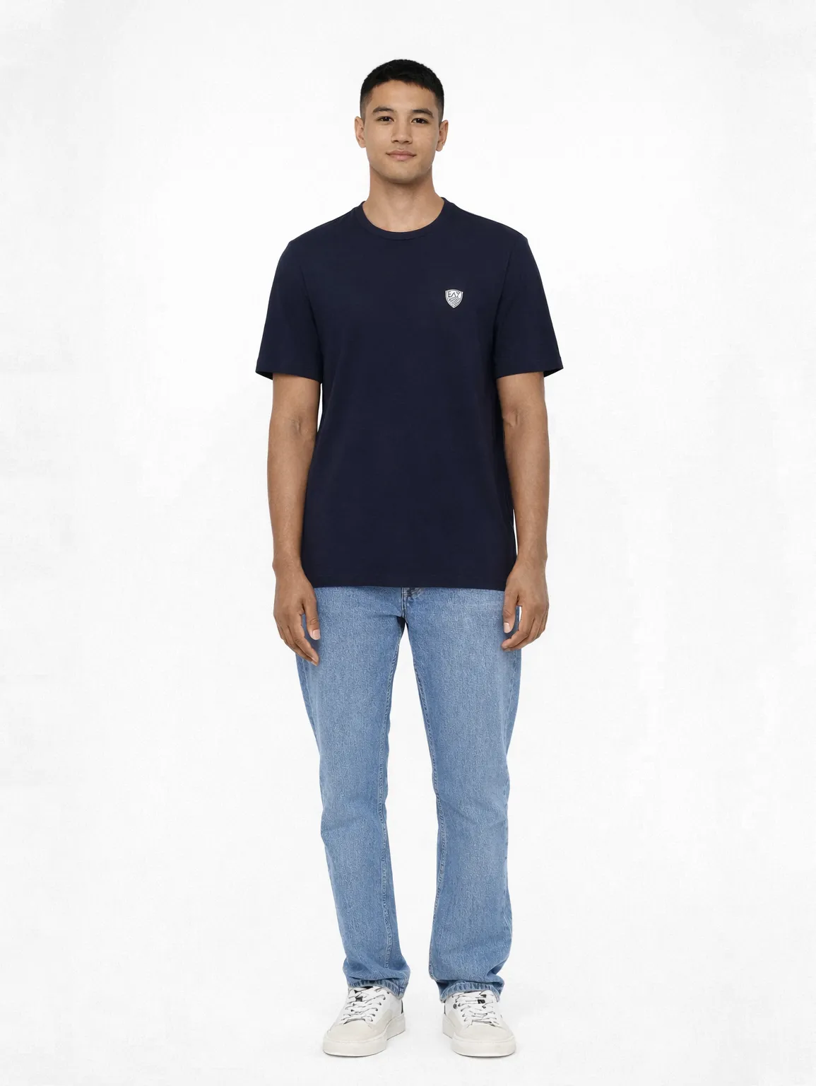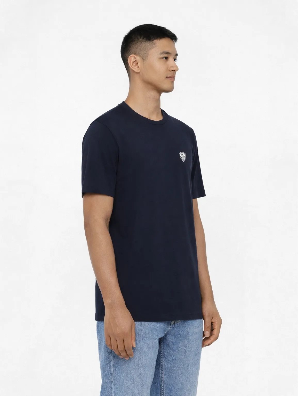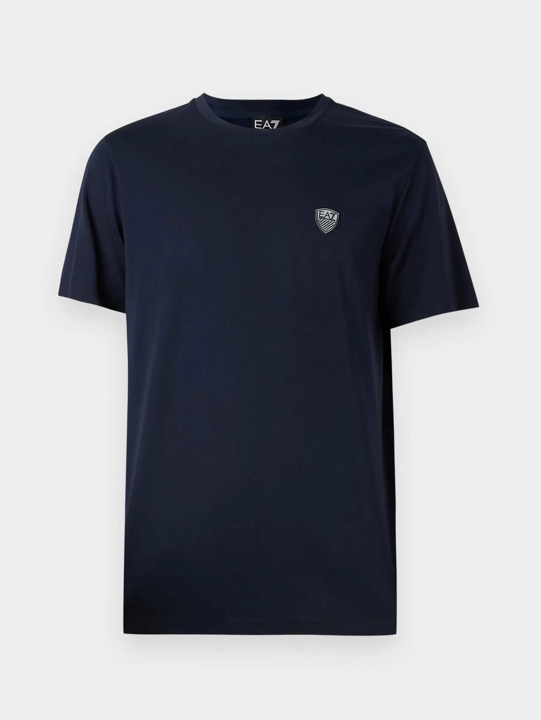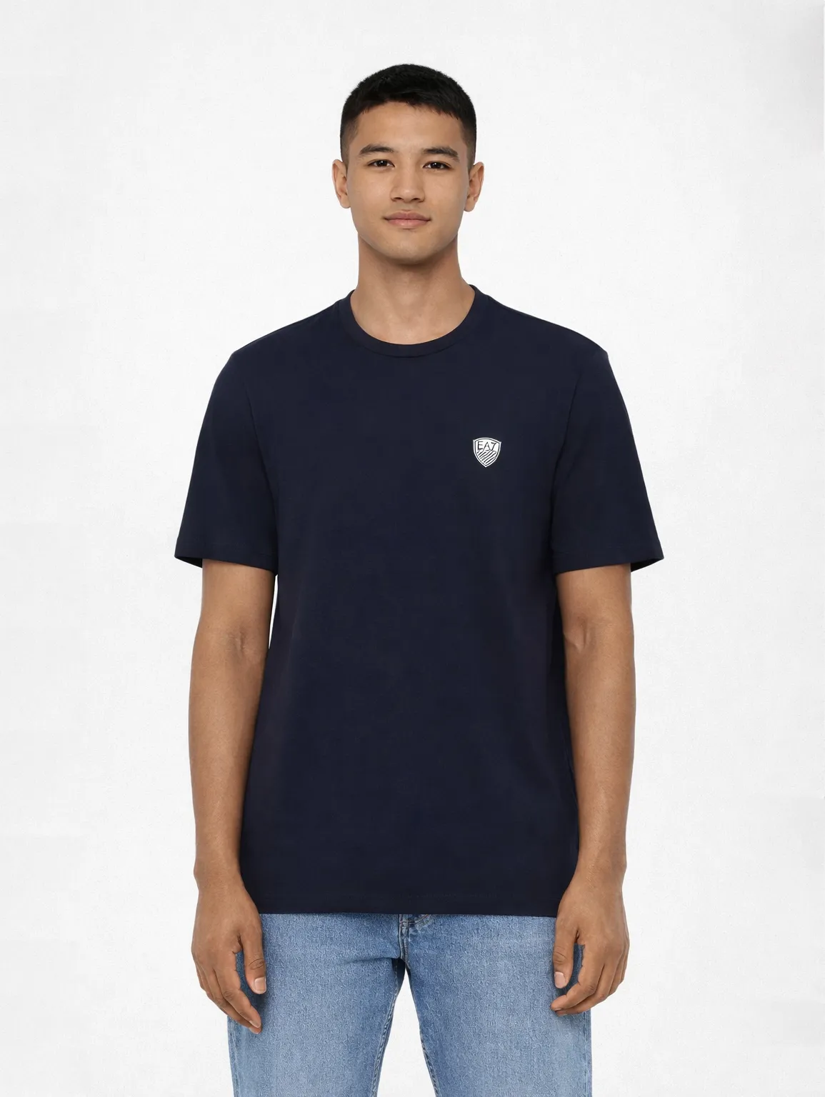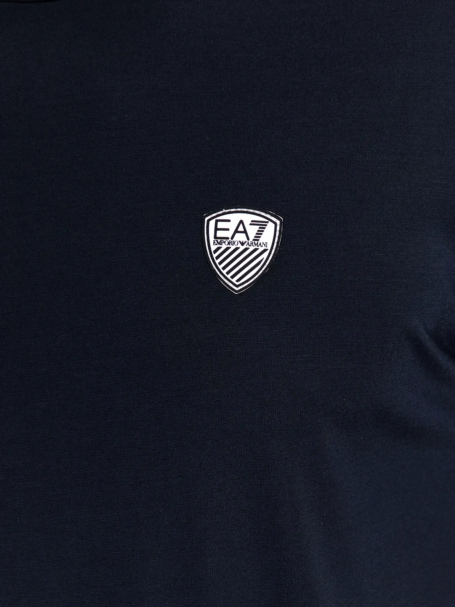 Лаконичная мужская футболка темно-синего цвета от бренда EA7, изготовлена из эластичного, приятного на ощупь материала. Мужская футболка идеально подходит спорта и активного отдыха.