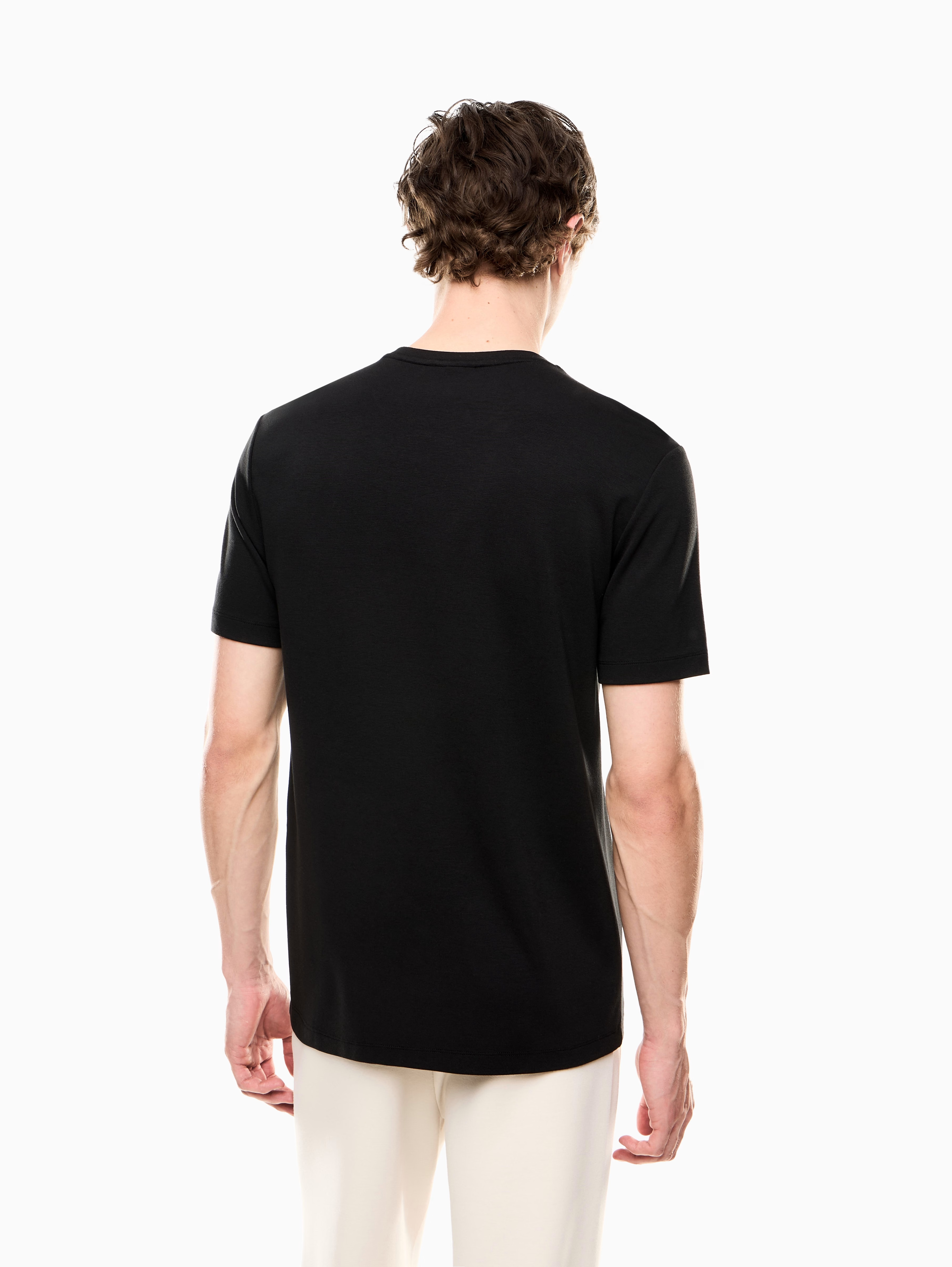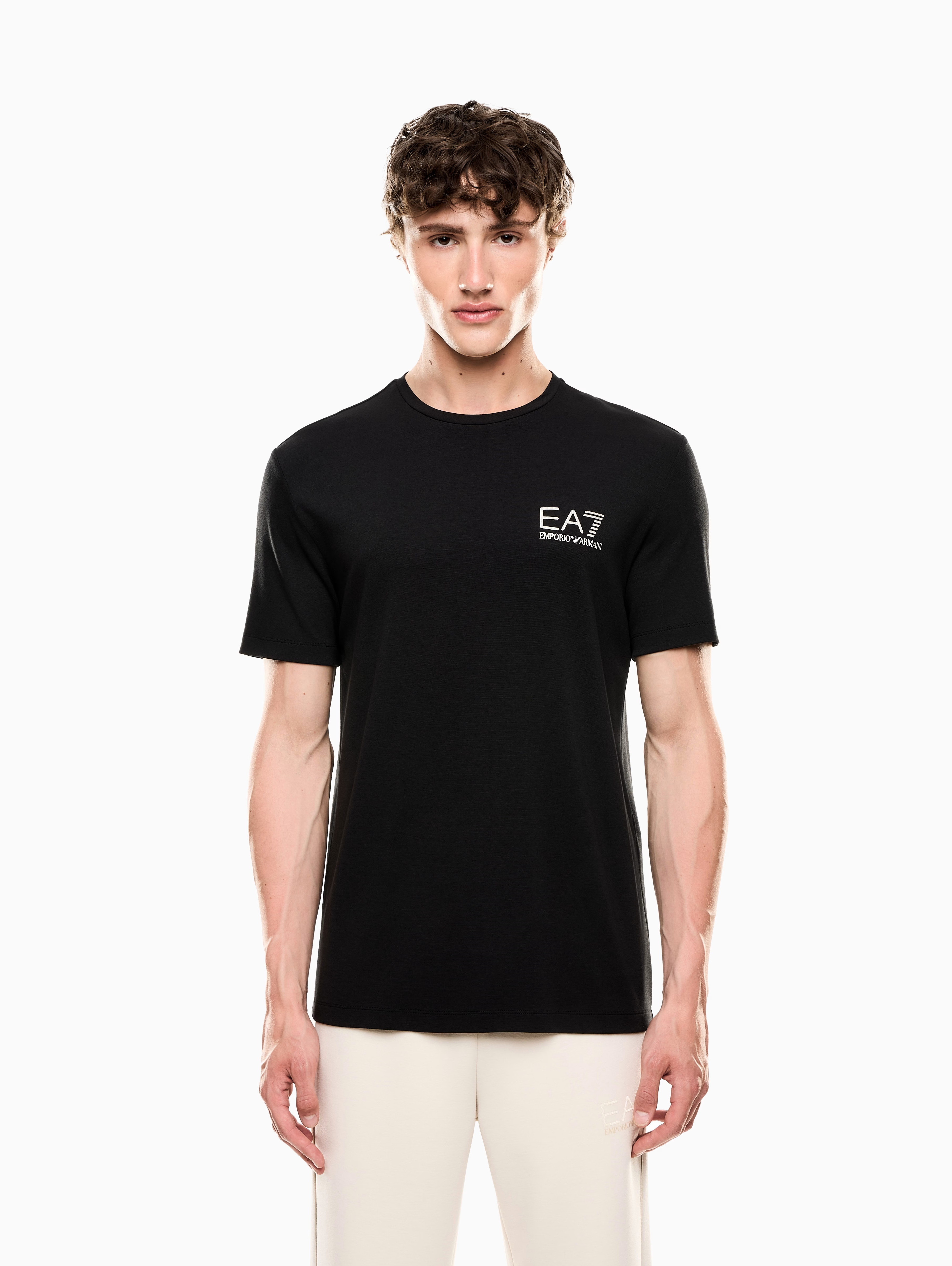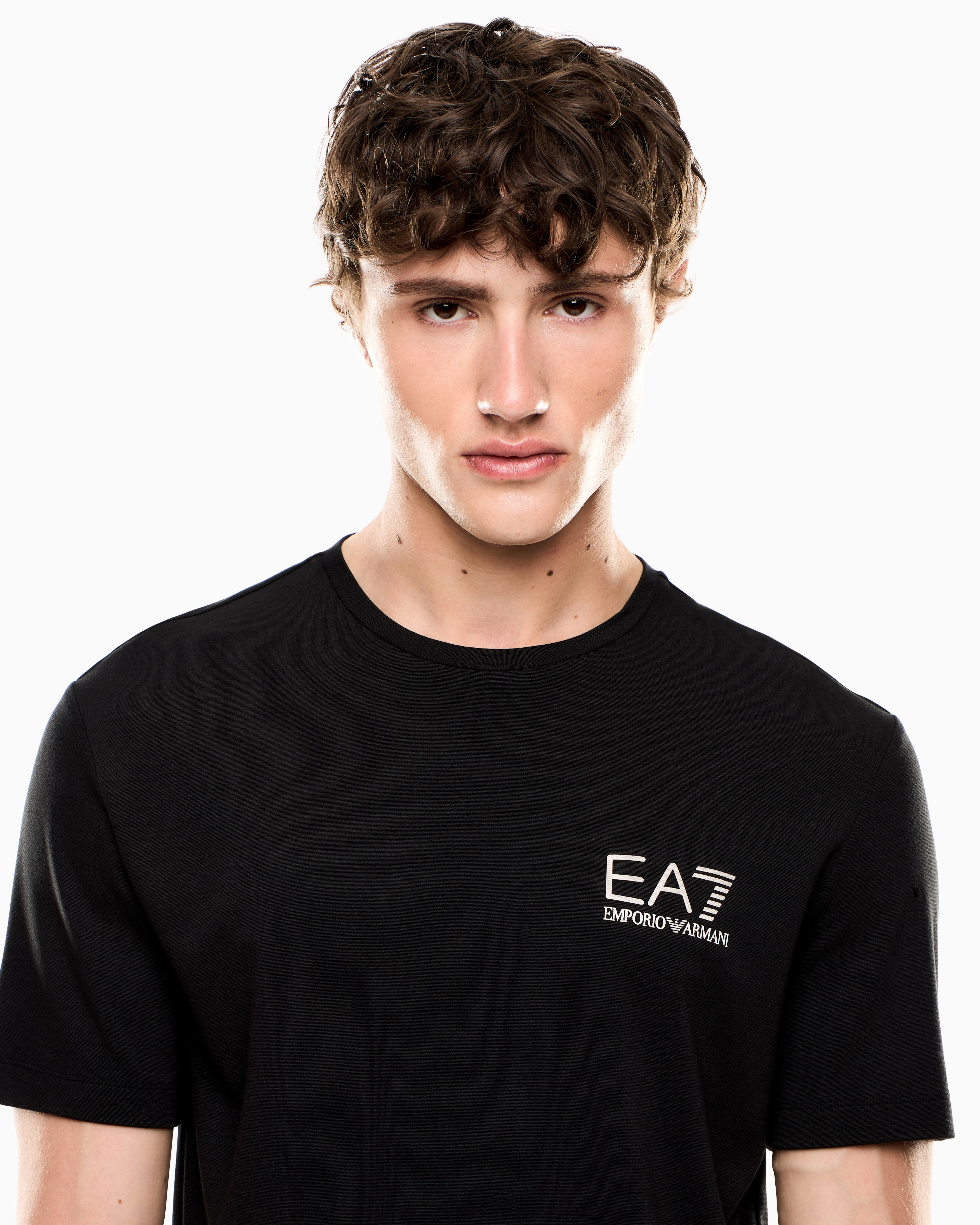 Облегающая мужская футболка черного цвета из коллекции Gold Label от EA7 с круглым вырезом и лаконичным дизайном. Выполнена из мягкой эластичной вискозной смеси, которая приятно облегает и не стесняет движений, оставаясь комфортной даже при активном ритме дня. Идеальный выбор на каждый день.