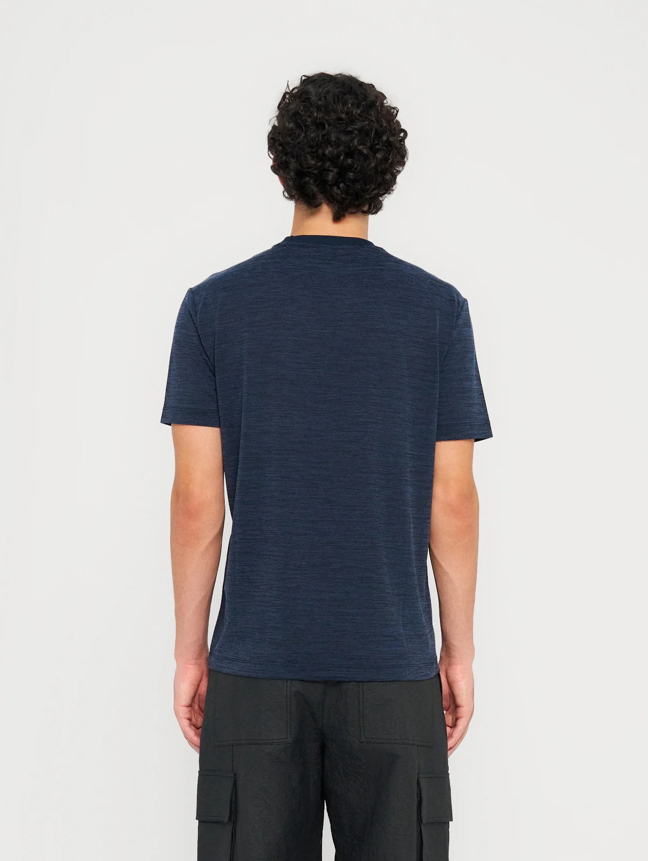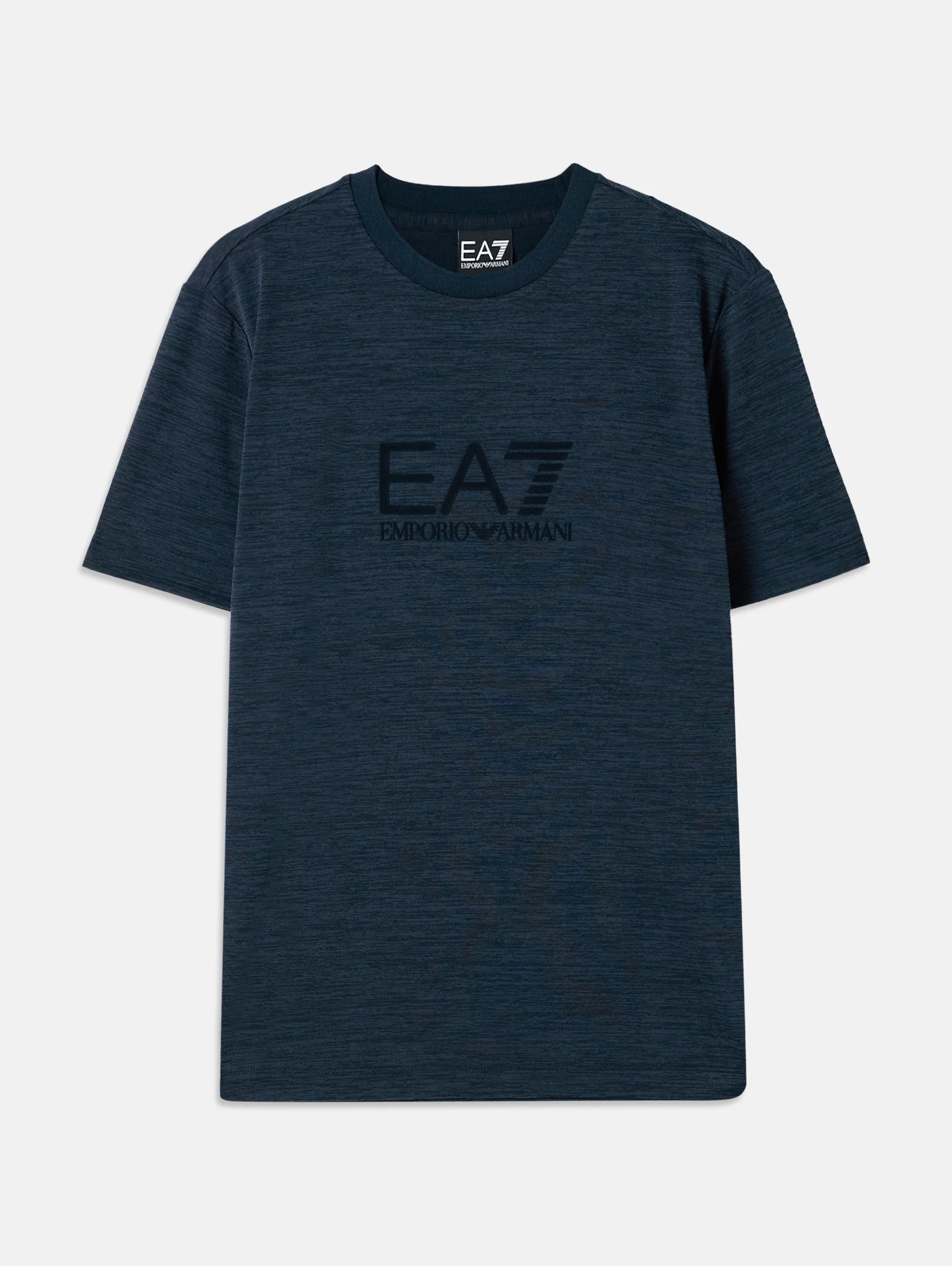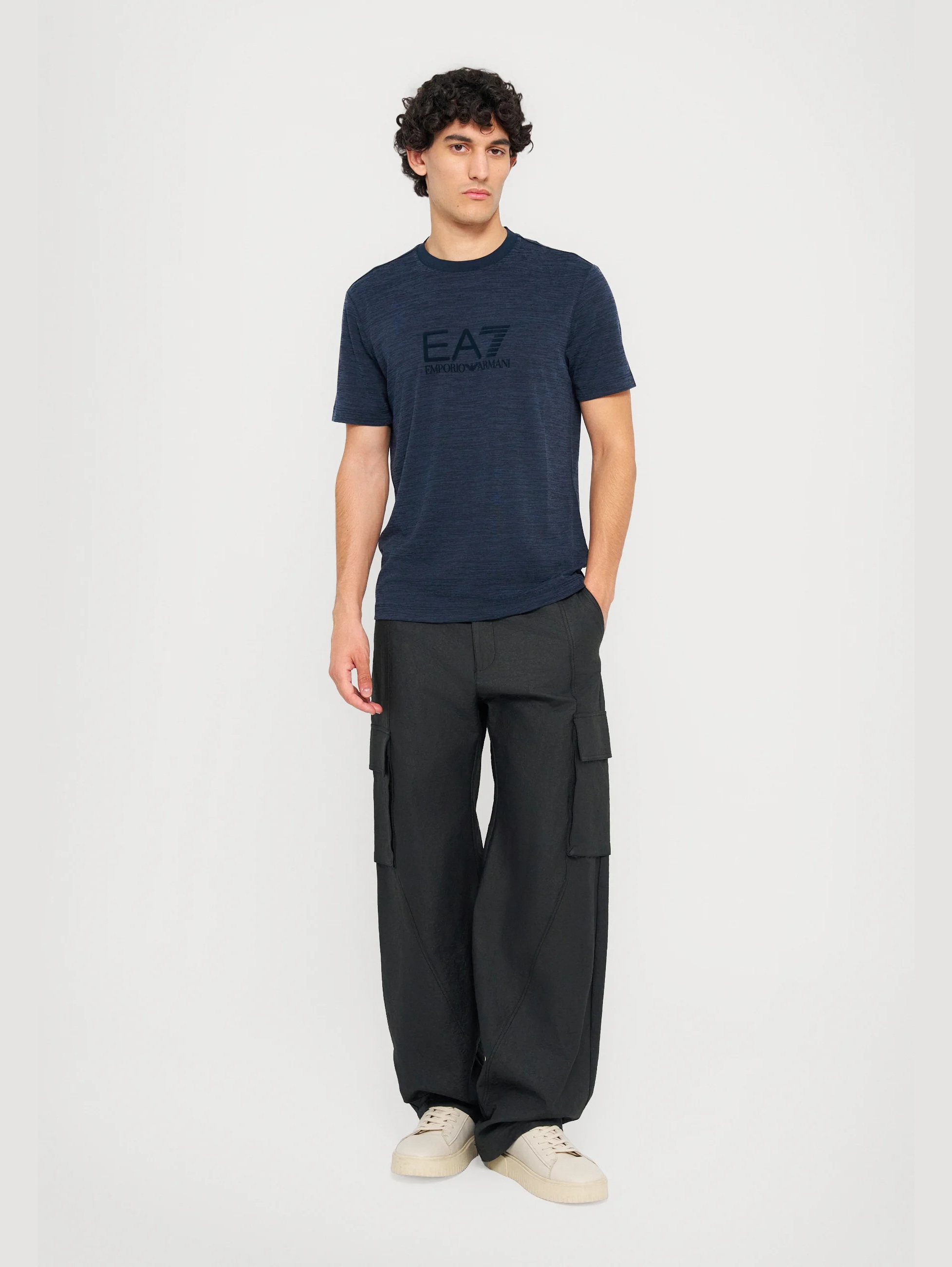 Мужская футболка темно-синего цвета EA7 Emporio Armani из коллекции LUX IDENTITY — лаконичная модель прямого кроя с короткими рукавами и круглым вырезом. Изготовлена из мягкой смеси лиоцелла и полиэстера и украшена фирменным логотипом бренда.