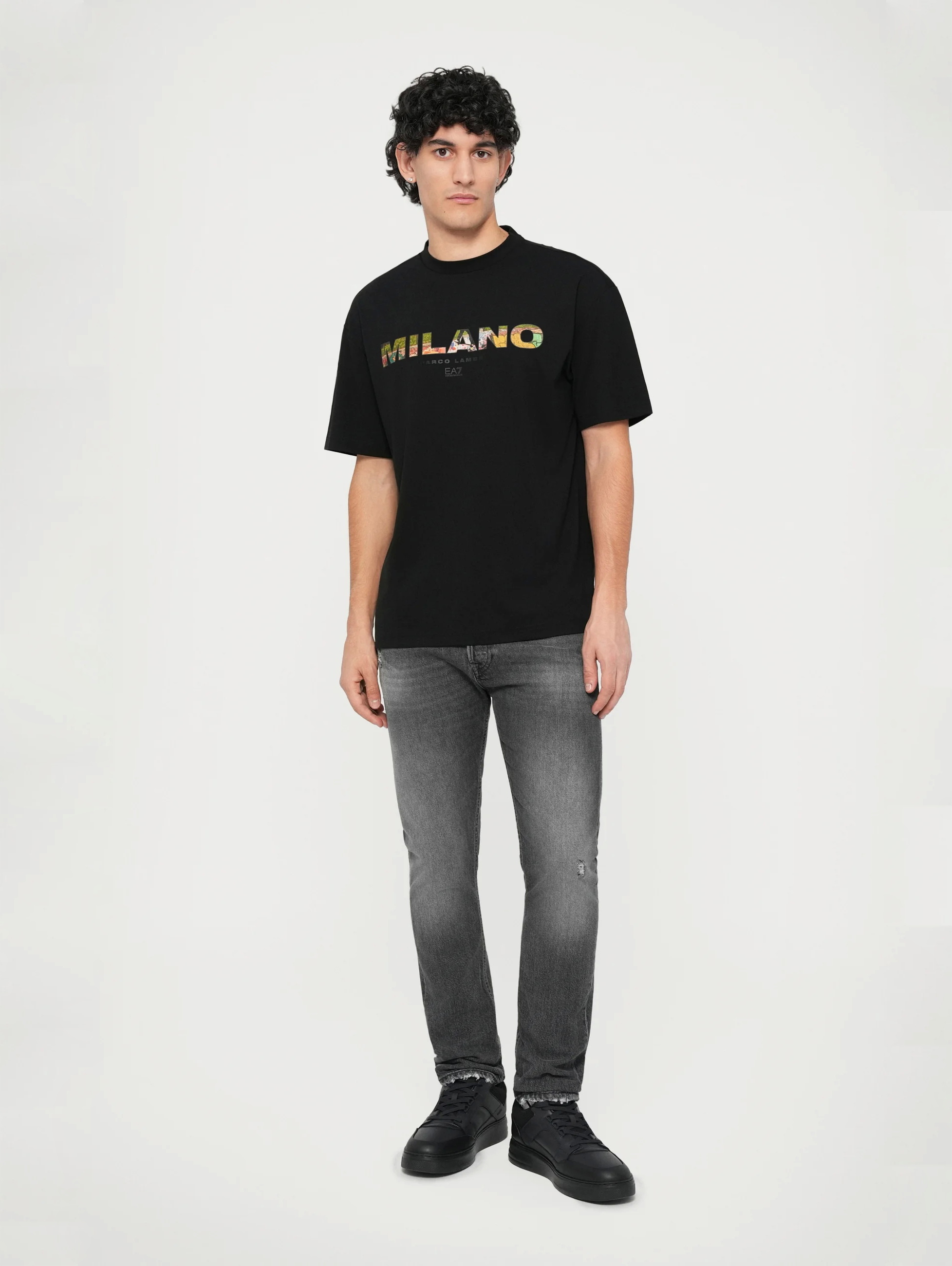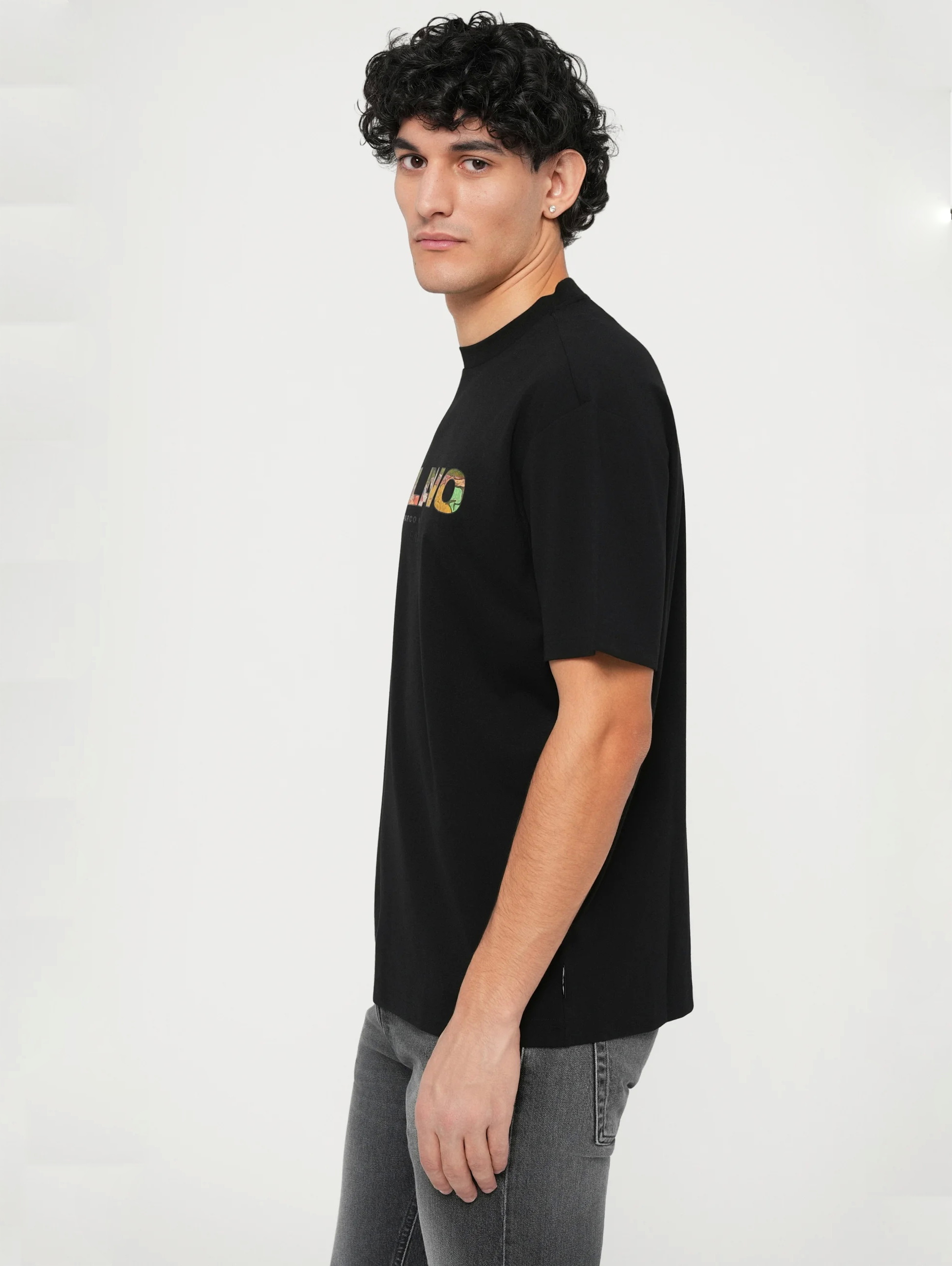 Мужская футболка прямого кроя с фирменным принтом бренда. Модель с короткими рукавами и круглой горловиной выполнена со спущенной линией плеч и лёгким оверсайз-посадкой. Комфортный силуэт и стильный акцент делают её отличным выбором для повседневного образа.