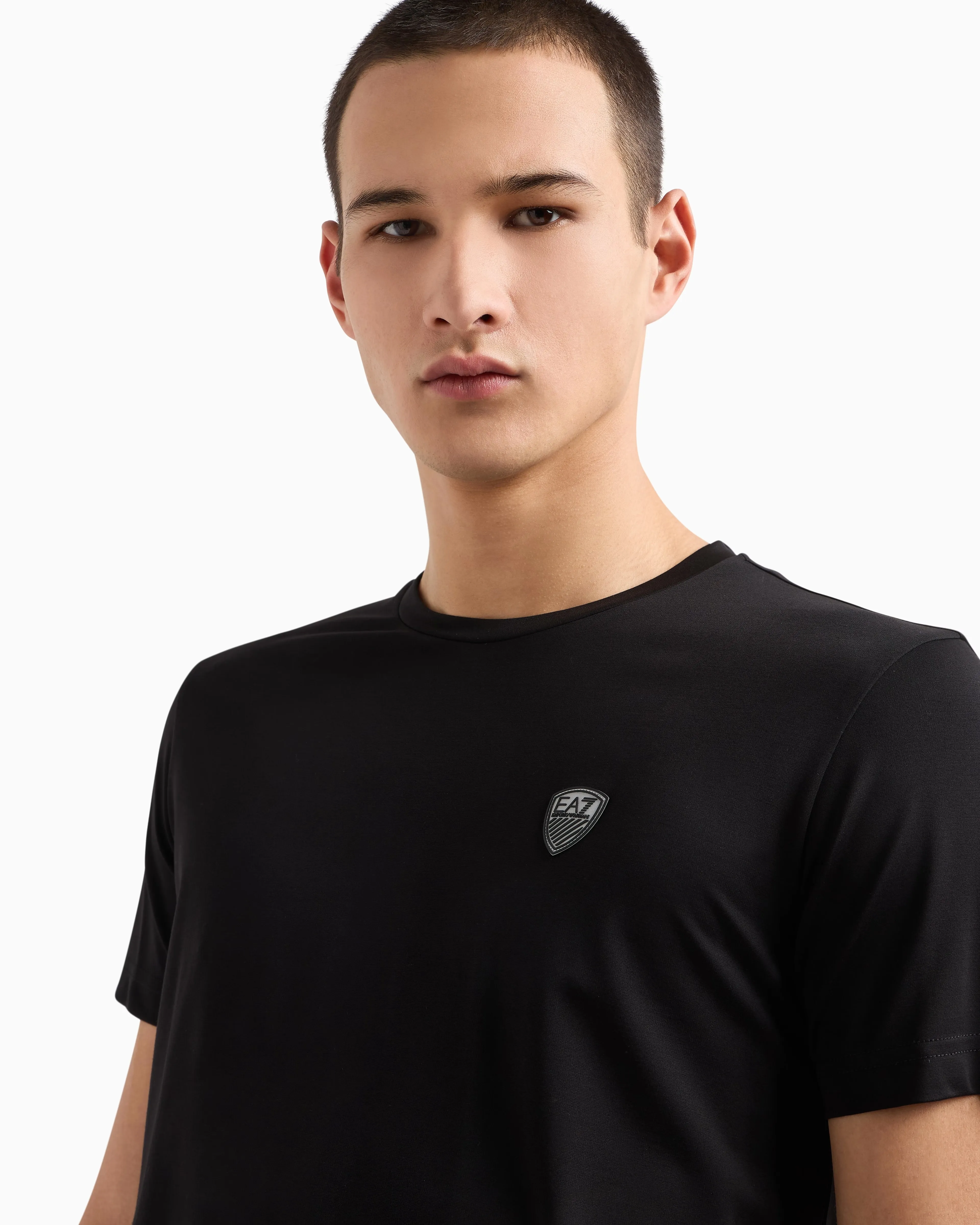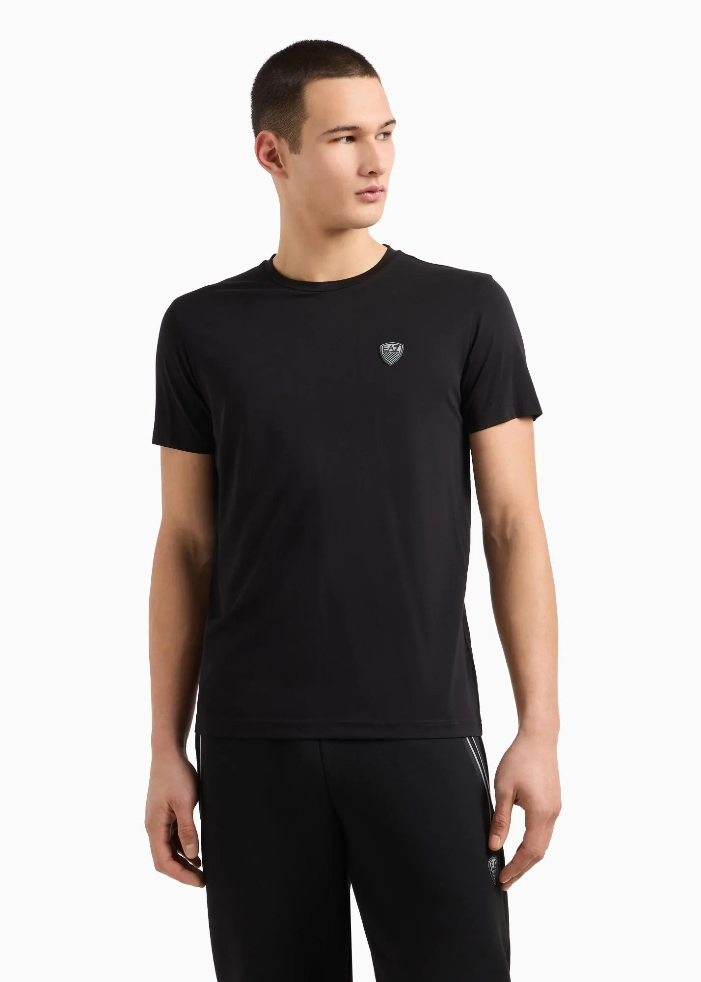 Мужская футболка с короткими рукавами облегающего кроя выполнена из эластичного и приятного на ощупь материала. Модель с круглым воротником украшена фирменным логотипом на груди. Идеально подходит для спорта и активного отдыха.
