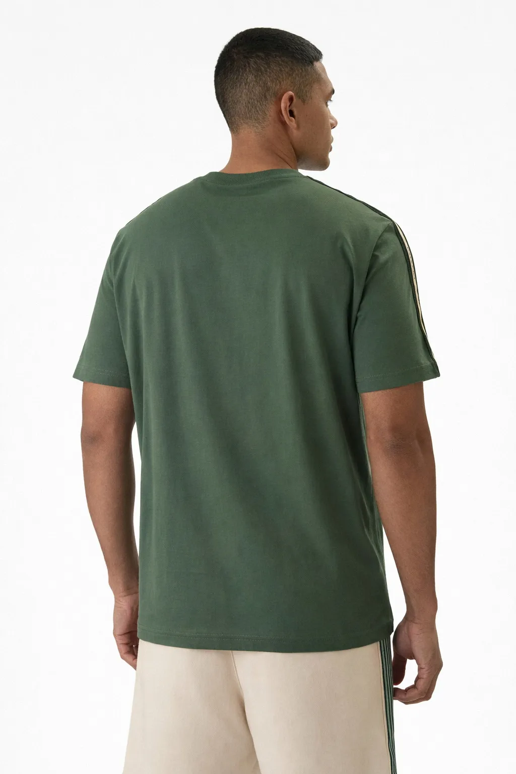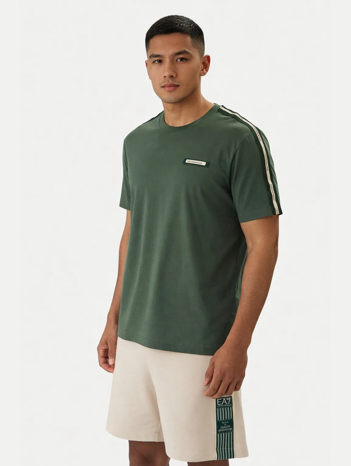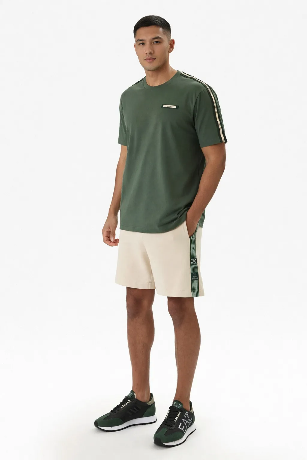 Мужская футболка прямого кроя выполнена из натурального хлопка и комфортна в повседневной носке. Контрастная фирменная тесьма на плечах и рукавах добавляет динамичный акцент и подчёркивает узнаваемый стиль бренда. Универсальная модель для городских и спортивных образов.