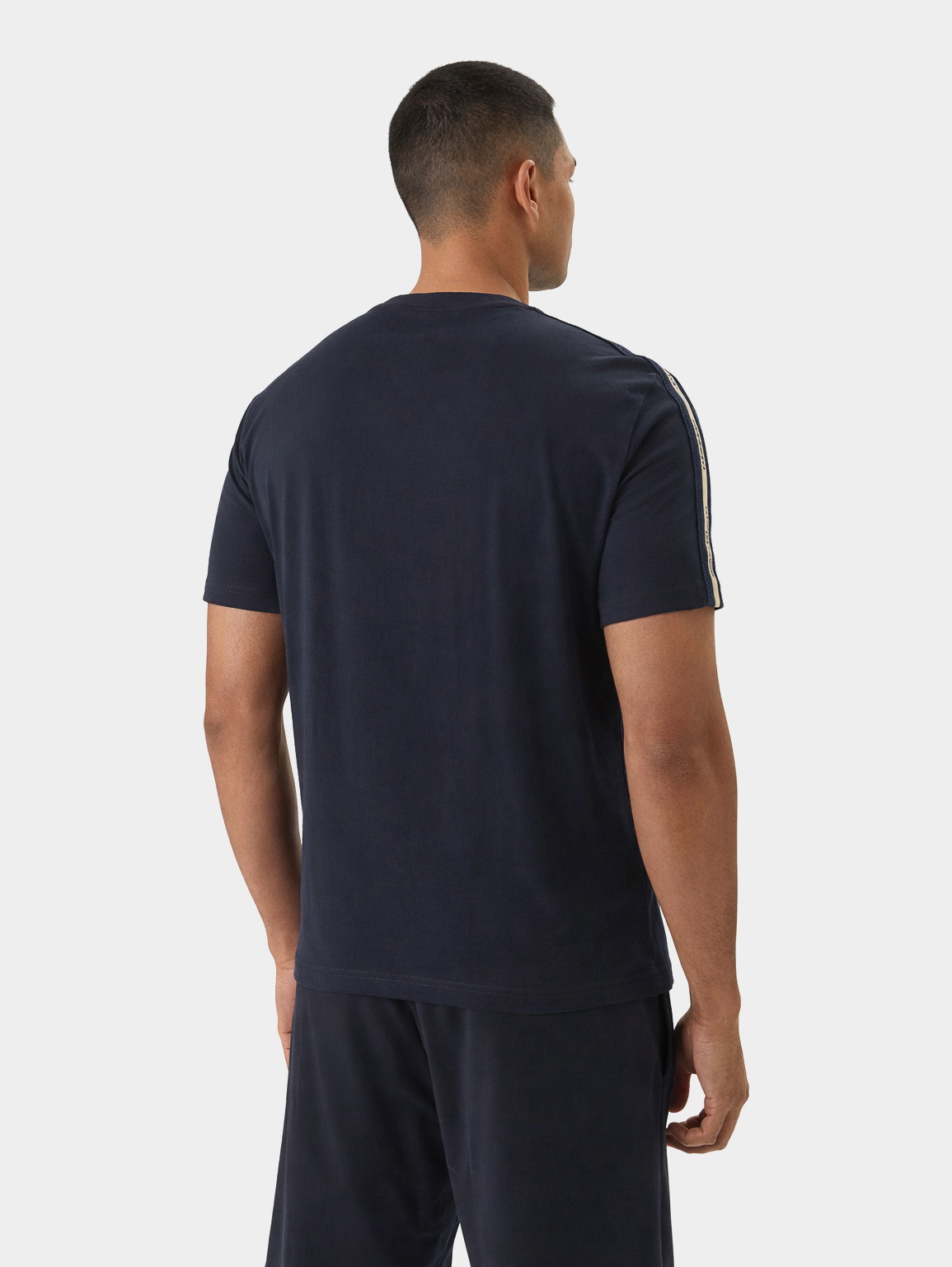 Мужская футболка прямого кроя выполнена из натурального хлопка и комфортна в повседневной носке. Контрастная фирменная тесьма на плечах и рукавах добавляет динамичный акцент и подчёркивает узнаваемый стиль бренда. Универсальная модель для городских и спортивных образов.