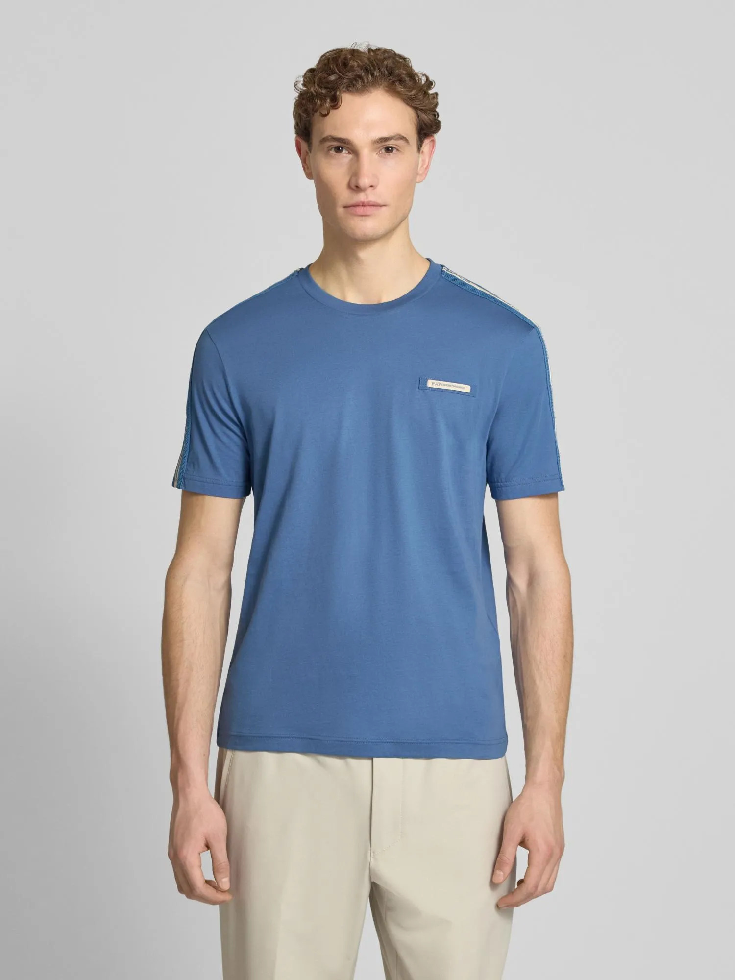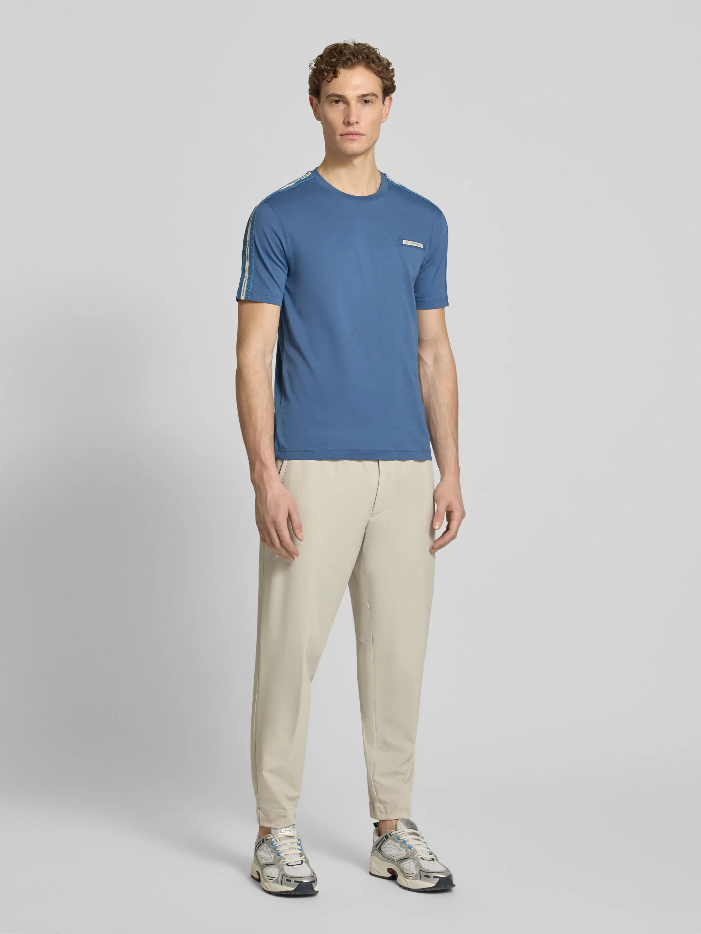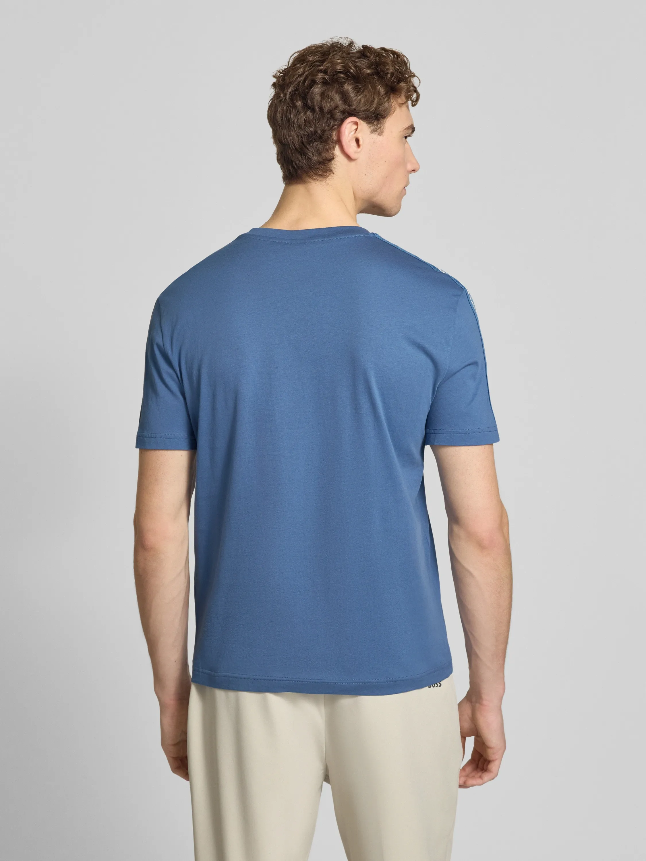 Мужская футболка прямого кроя выполнена из натурального хлопка и комфортна в повседневной носке. Контрастная фирменная тесьма на плечах и рукавах добавляет динамичный акцент и подчёркивает узнаваемый стиль бренда. Универсальная модель для городских и спортивных образов.