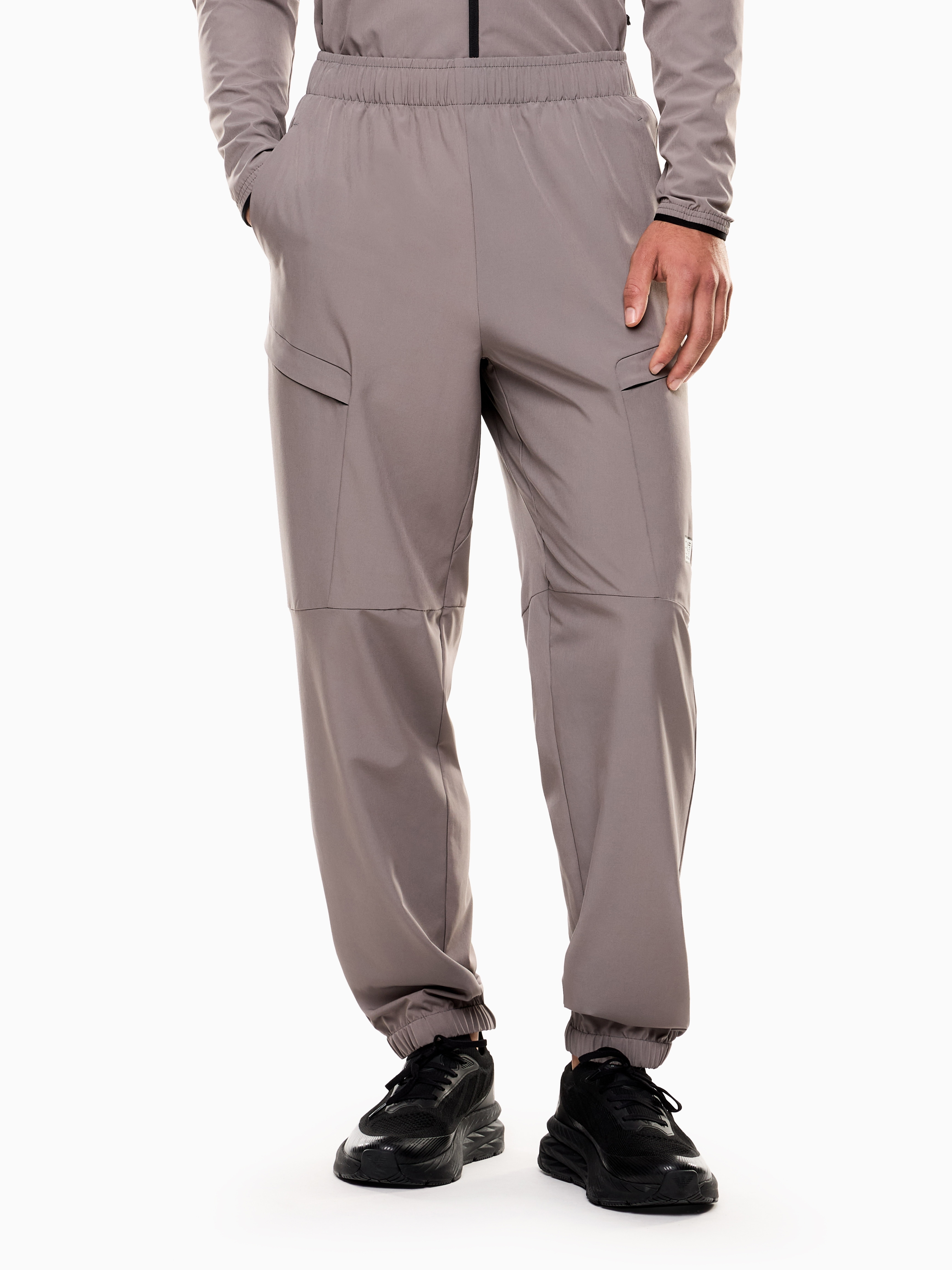 Мужские спортивные брюки выполнены из инновационной ткани Natural VENTUS7, которая сочетает натуральные и синтетические волокна, поддерживает оптимальную температуру тела и отводит влагу в виде пара, а хлопок обеспечивает комфорт при носке. Модель прямого кроя, зауженная книзу с манжетами, оснащена двумя боковыми и двумя карго-карманы на молнии, а эластичный пояс со шнурком обеспечивает удобную посадку.