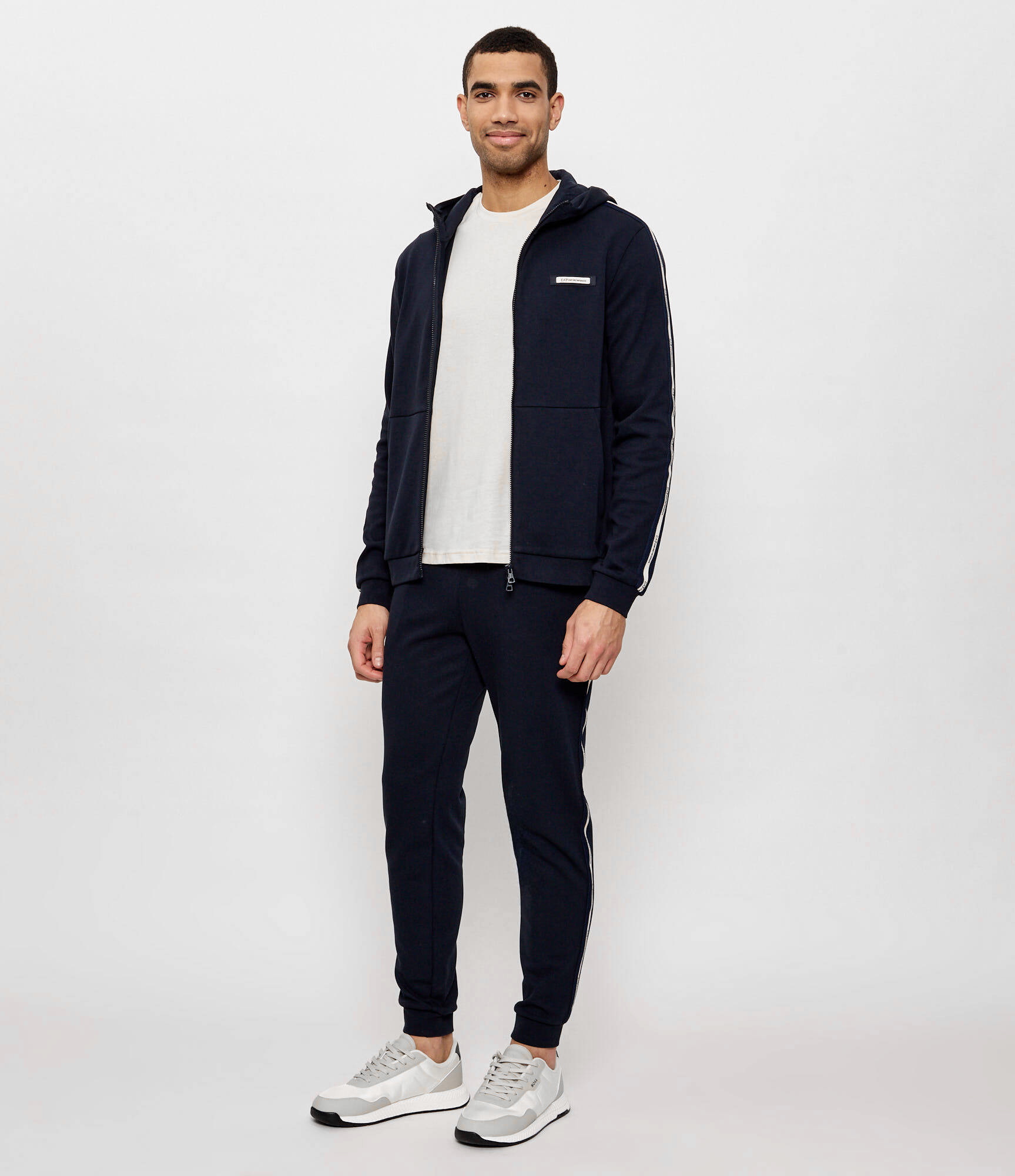 Мужские спортивные брюки зауженного кроя. Модель дополнена фирменными лампасами по бокам, нашивкой бренда и боковыми карманами. Подходят для тренировок и повседневной носки. Дополните спортивной толстовкой из коллекции для создания единого комплекта.