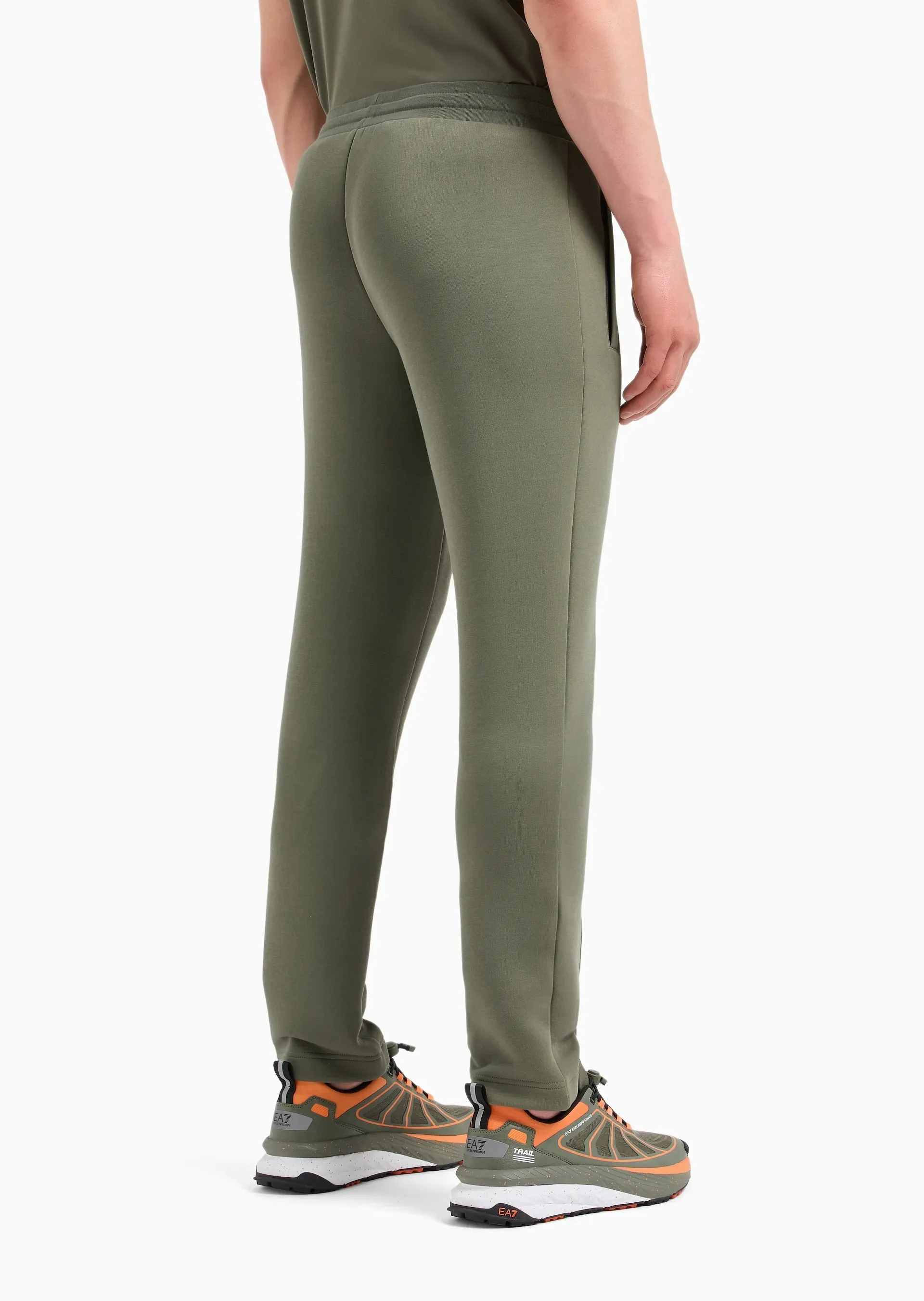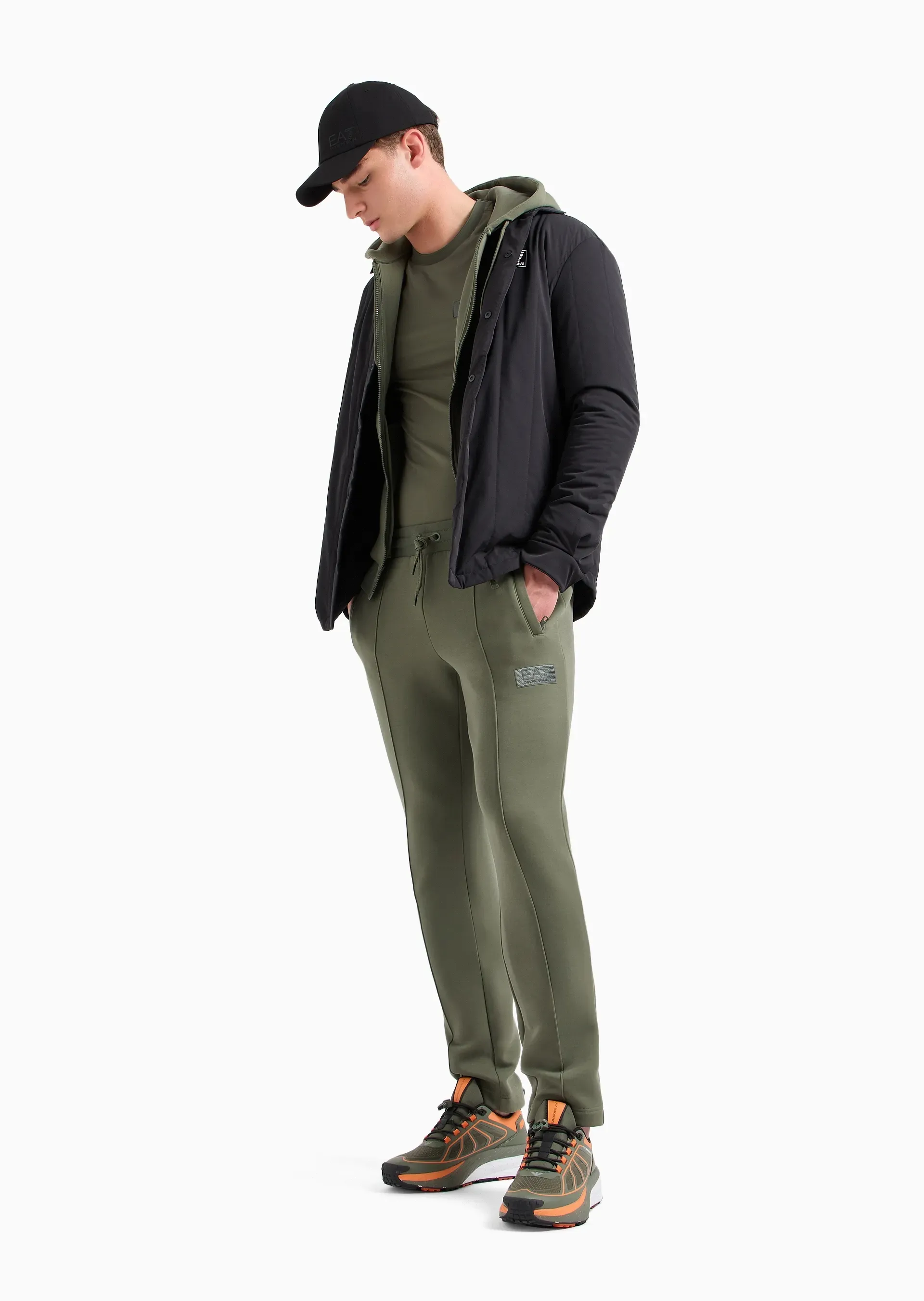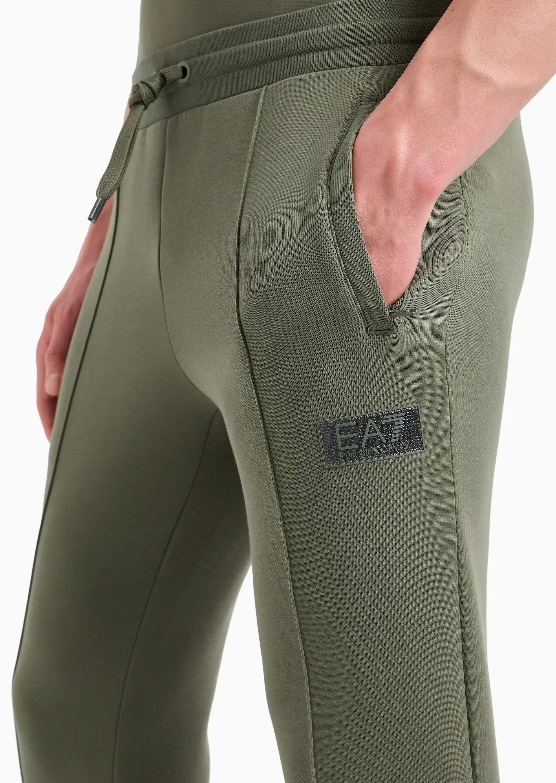 Мужские джоггеры EA7 из смесового хлопка в цвете хаки с немного зауженным книзу кроем идеально подходят как для отдыха, так и для спорта. Модель украшена нашивкой с логотипом EA7, оснащена поясом на кулиске и прорезными боковыми карманами.
