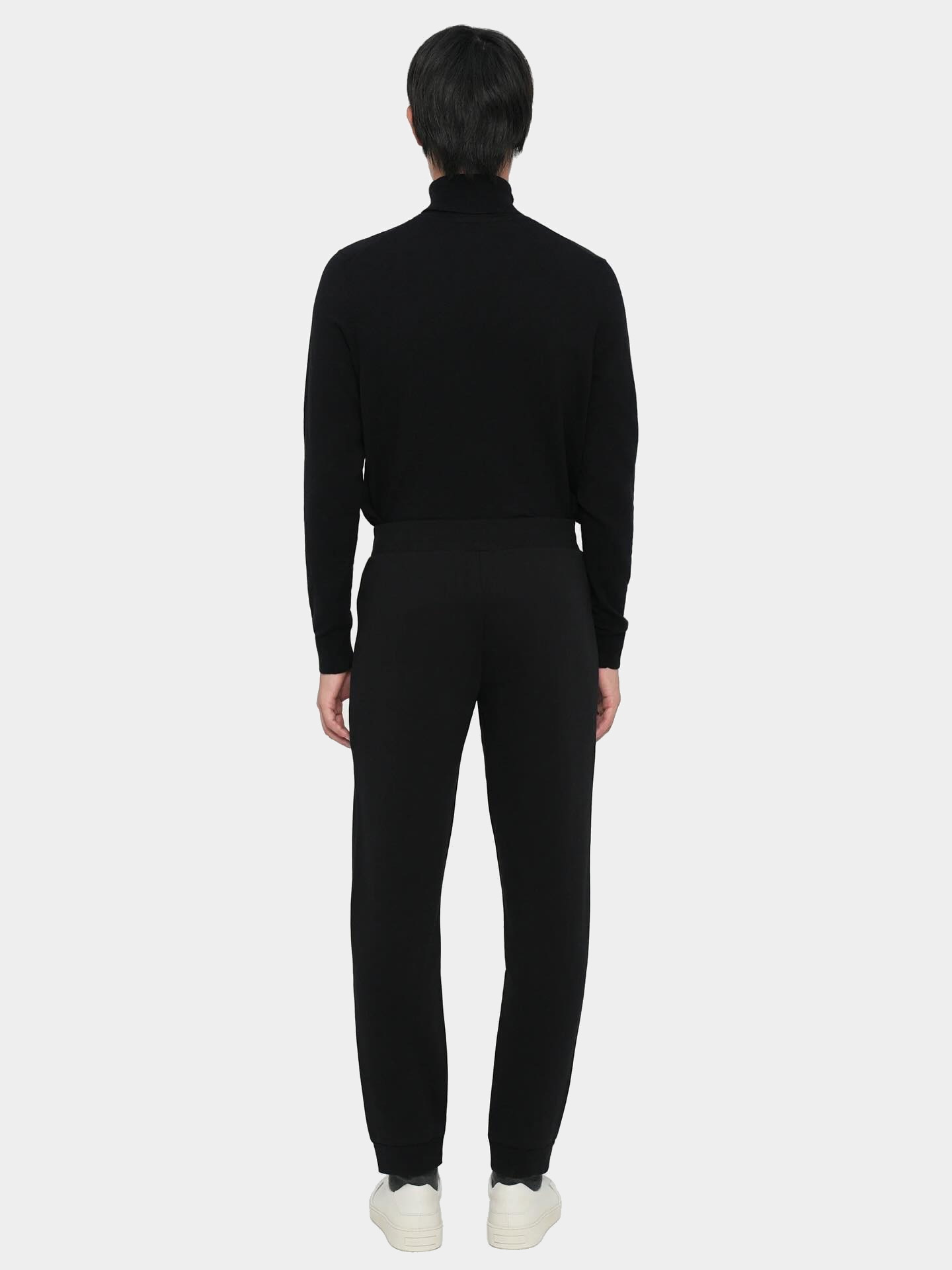 Мужские спортивные брюки EA7 7 Lines черного цвета — динамичная модель прямого кроя, зауженная к низу и дополненная манжетами. Средняя посадка и эластичный пояс обеспечивают комфорт и свободу движений, а боковые карманы на молнии добавляют удобства. Контрастный логотип и фирменная лента с семью полосами подчёркивают спортивный стиль бренда. Идеально сочетаются с толстовкой из коллекции 7 Lines.