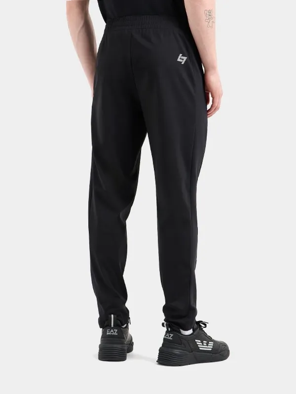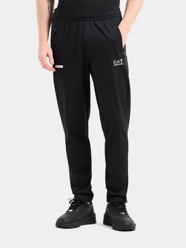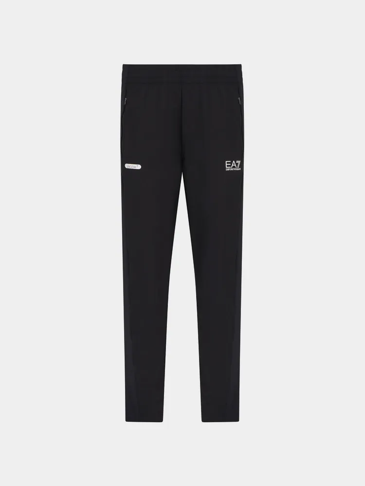 Модель прямого кроя, слегка зауженная к низу. Эластичный пояс и вставки на бёдрах обеспечивают комфорт и свободу движений. Боковые карманы на молнии — для удобства и практичности.