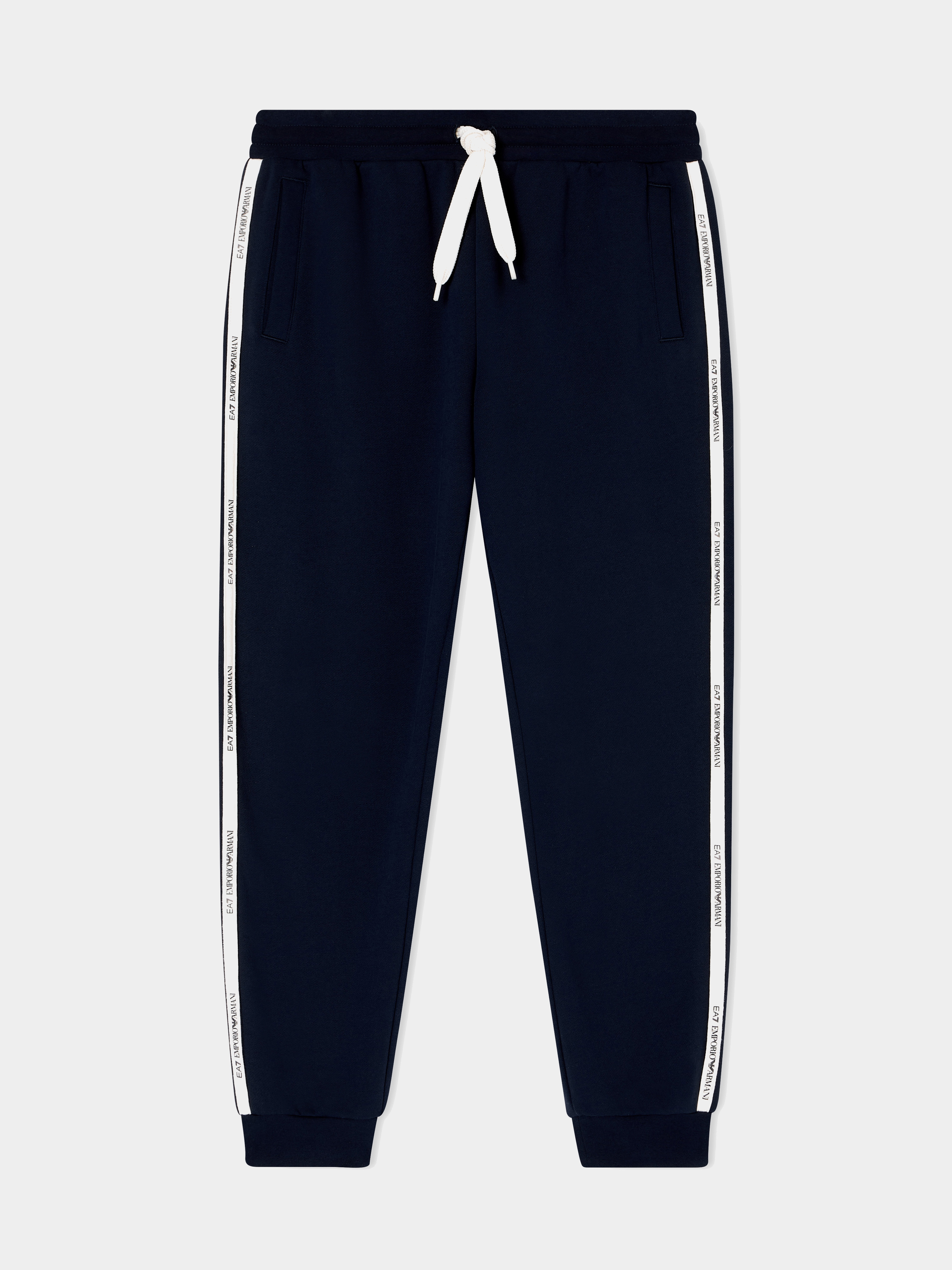 Мужские джоггеры из мягкой хлопковой смеси, зауженного кроя с манжетами. Эластичный пояс со шнурком, боковые карманы и контрастный логотип EA7. Комфортная модель для динамичных повседневных образов и отдыха.