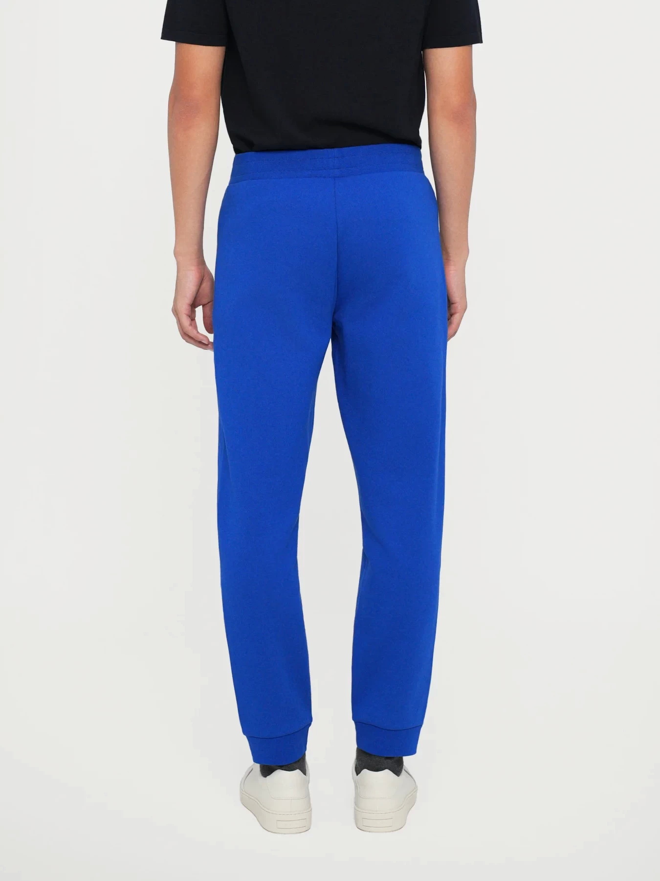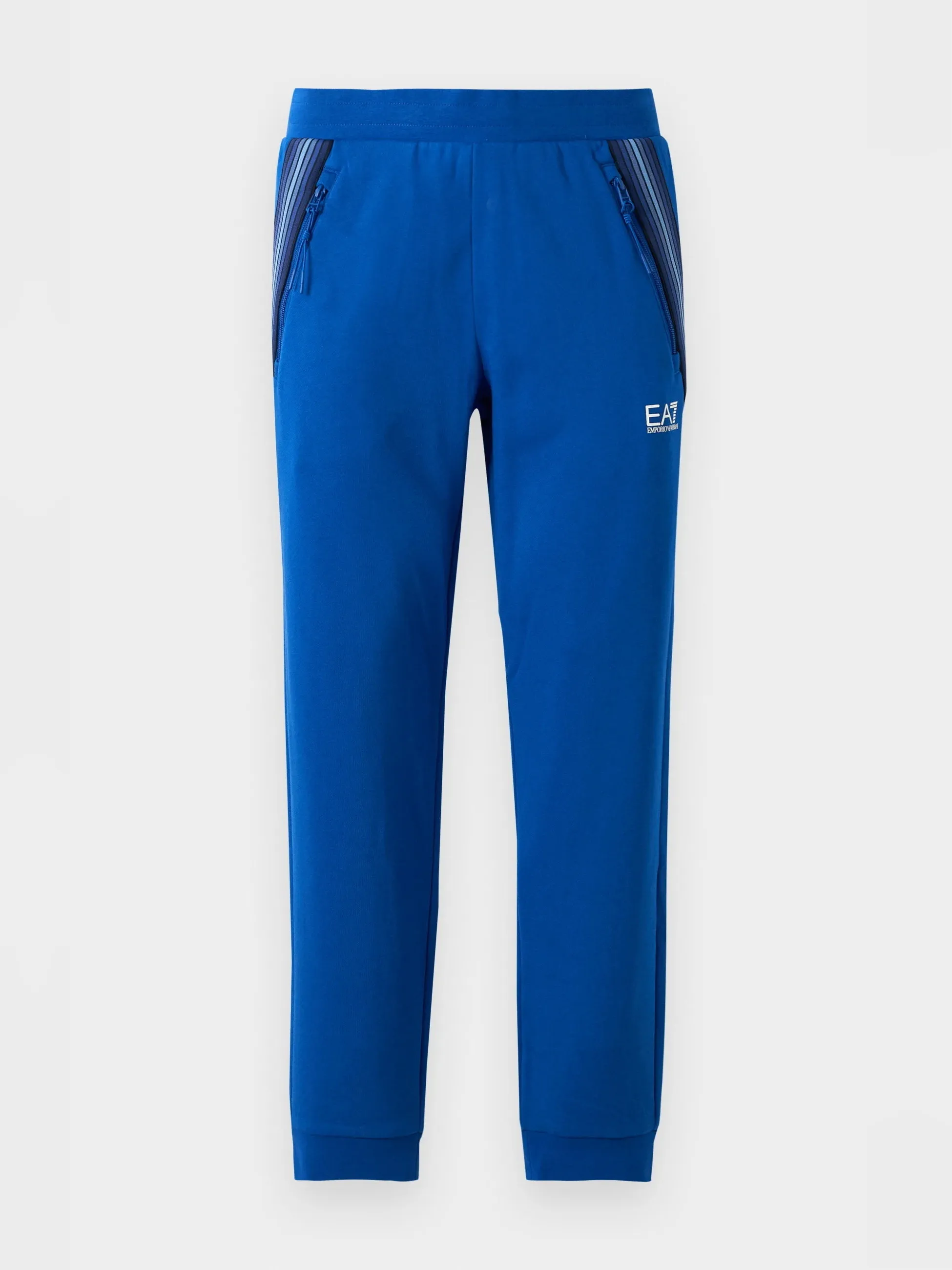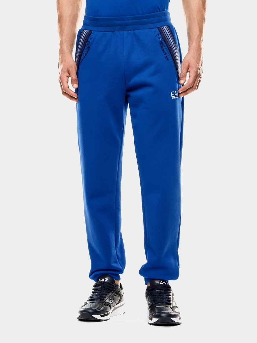 Мужские спортивные брюки 7 Lines синего цвета — динамичная модель прямого кроя, зауженная к низу и дополненная манжетами. Средняя посадка и эластичный пояс обеспечивают комфорт и свободу движений, а боковые карманы на молнии добавляют удобства. Контрастный логотип и фирменная лента с семью полосами подчёркивают спортивный стиль бренда. Идеально сочетаются с толстовкой из коллекции 7 Lines.