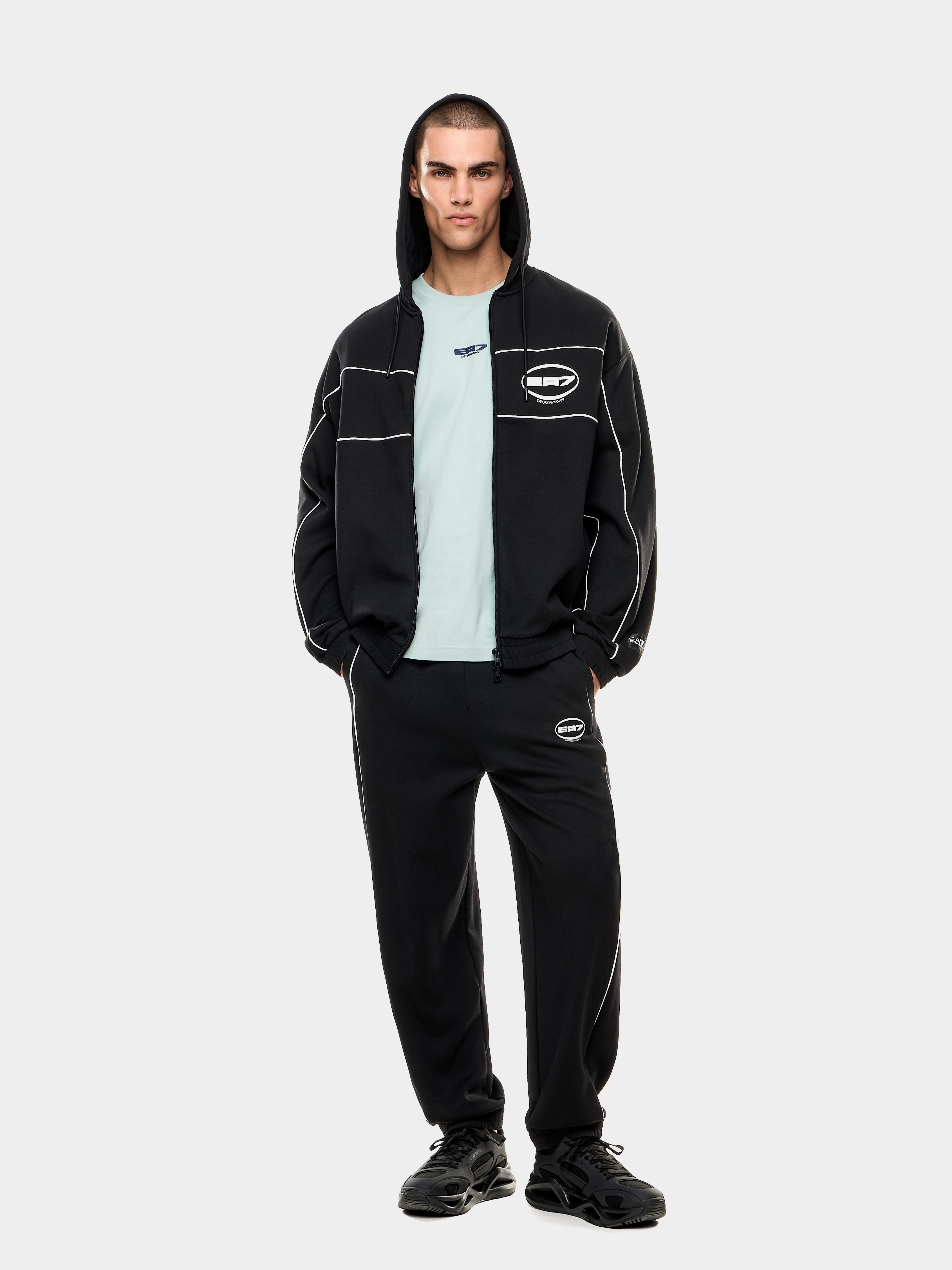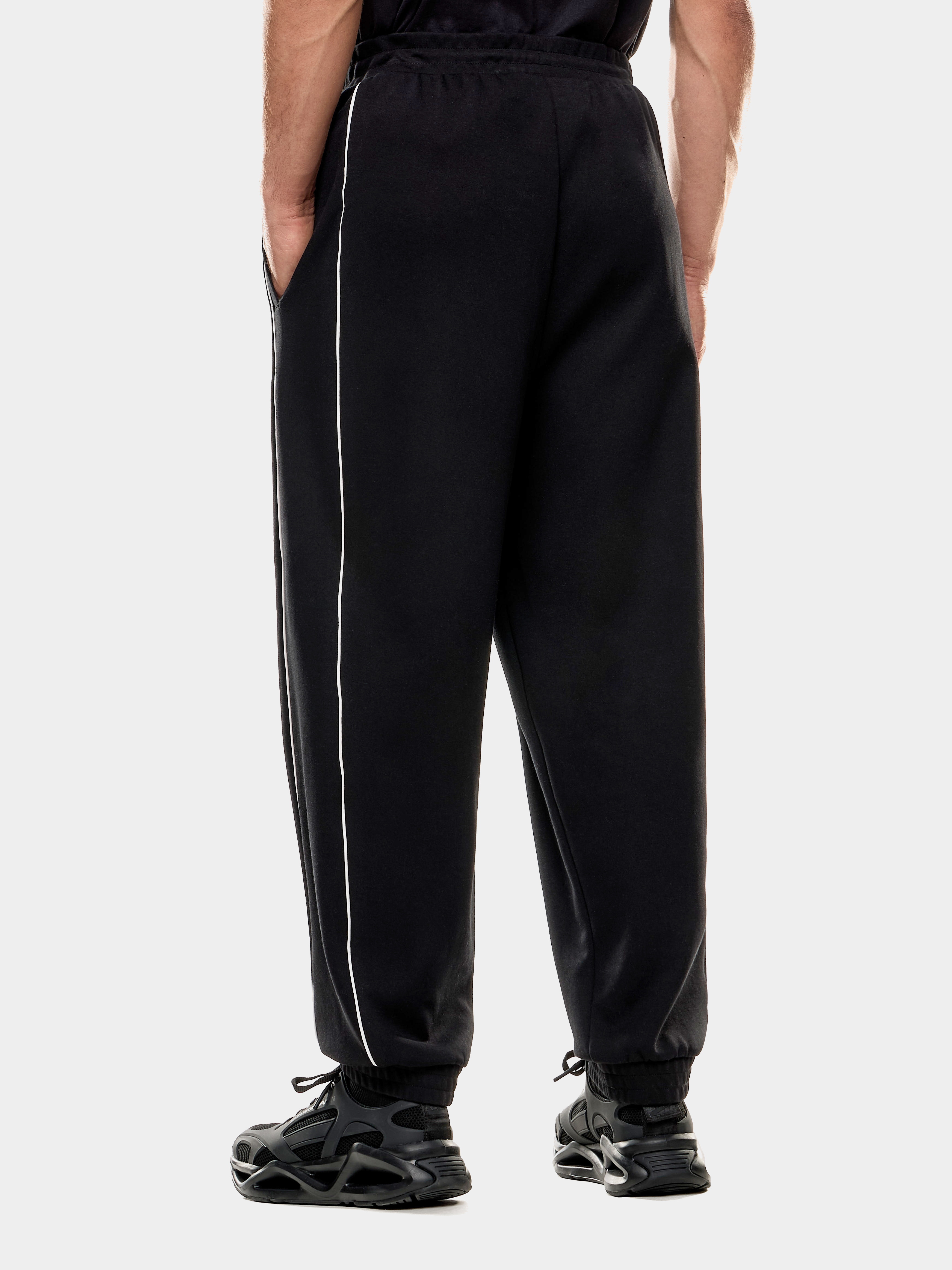 Мужские спортивные брюки EA7 Emporio Armani из тонкого эластичного трикотажа обеспечивают комфорт и свободу движений. Зауженный крой с манжетами подчёркивает динамичный стиль, а эластичная талия гарантирует удобную посадку. Модель дополнена боковыми карманами. Это отличный выбор для активного ритма и повседневных городских образов.