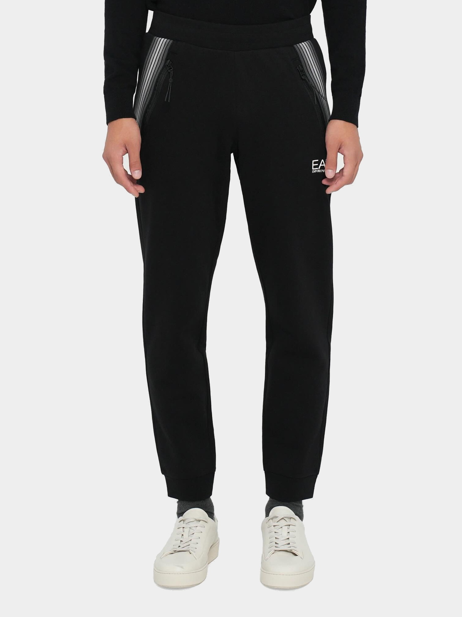 Мужские спортивные брюки 7 Lines — динамичная модель прямого кроя, зауженная к низу и дополненная манжетами. Средняя посадка и эластичный пояс обеспечивают комфорт и свободу движений, а боковые карманы на молнии добавляют удобства. Контрастный логотип и фирменная лента с семью полосами подчёркивают спортивный стиль бренда. Идеально сочетаются с толстовкой из коллекции 7 Lines.