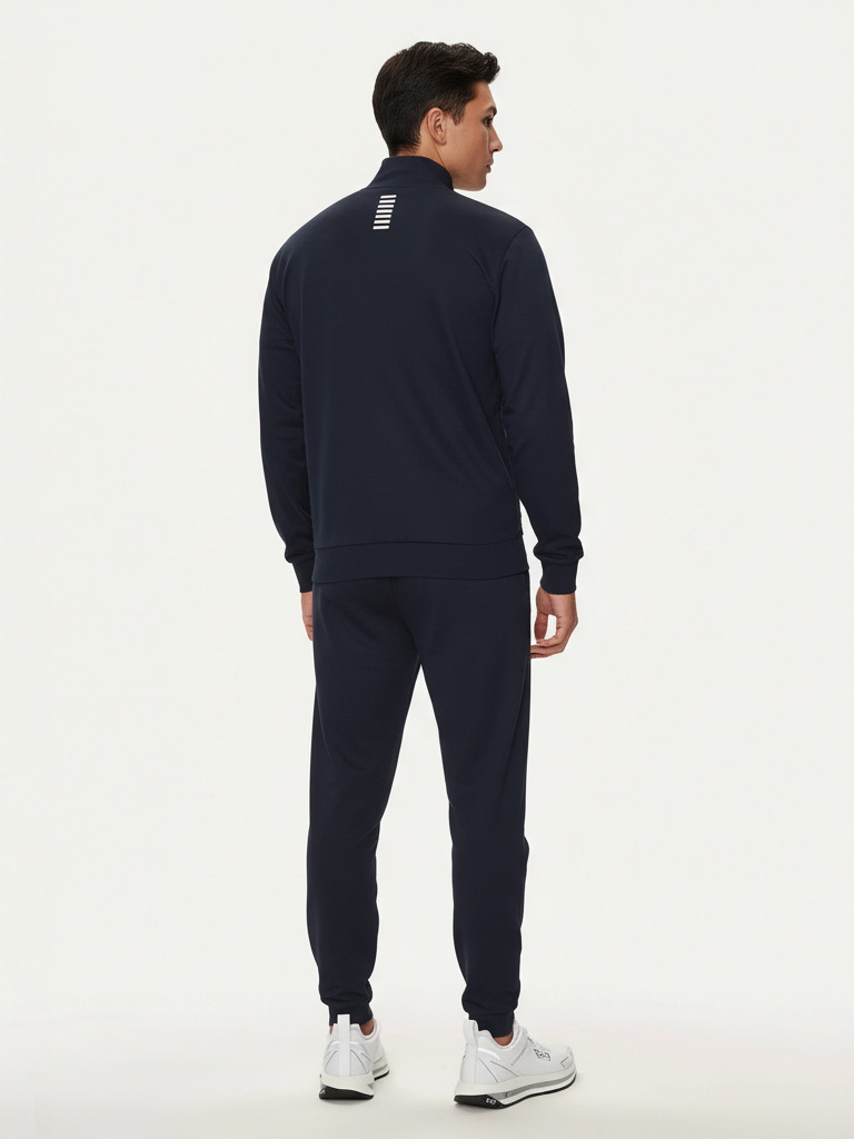 Стильный и удобный мужской спортивный костюм EA7 Emporio Armani в темно-синем цвете — отличный выбор для повседневной активности. Приятный на ощупь материал обеспечивает комфорт, а логотип на груди добавляет аккуратный акцент. Практичный и современный дизайн подойдет для повседневного ношения и активного отдыха и спорта.