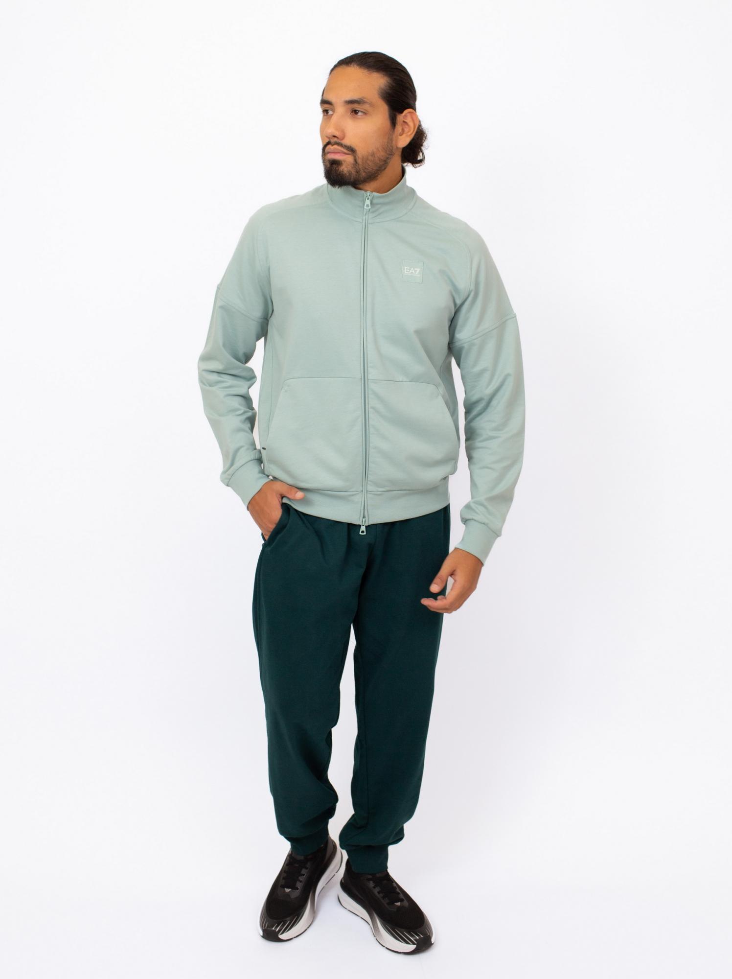 Мужской спортивный костюм EA7 из мягкого хлопка сочетает лёгкость, комфорт и свободу движений — идеальный выбор на каждый день, для тренировок и активного отдыха. Толстовка на молнии и брюки с манжетами создают удобный и универсальный комплект, а лаконичный дизайн с вышитым логотипом подчёркивает фирменный стиль бренда.