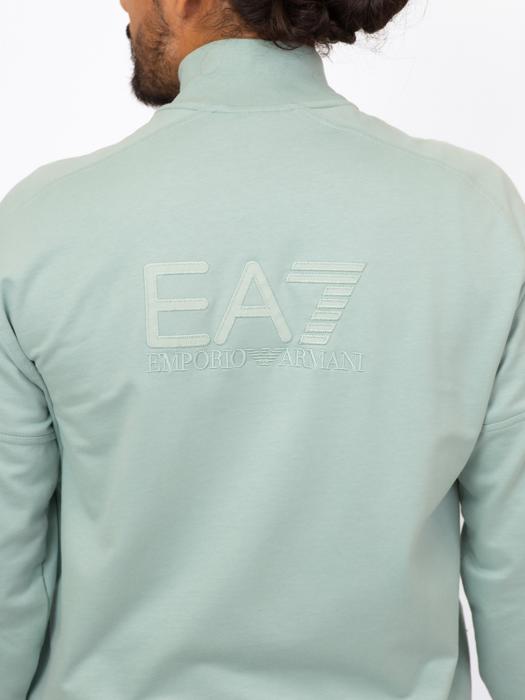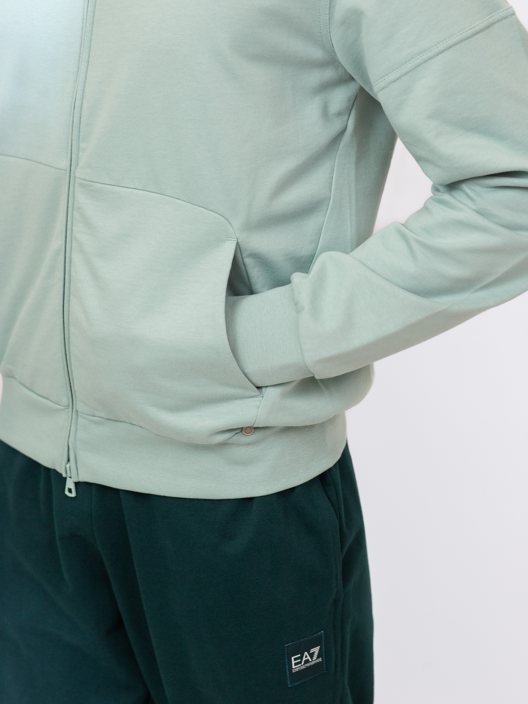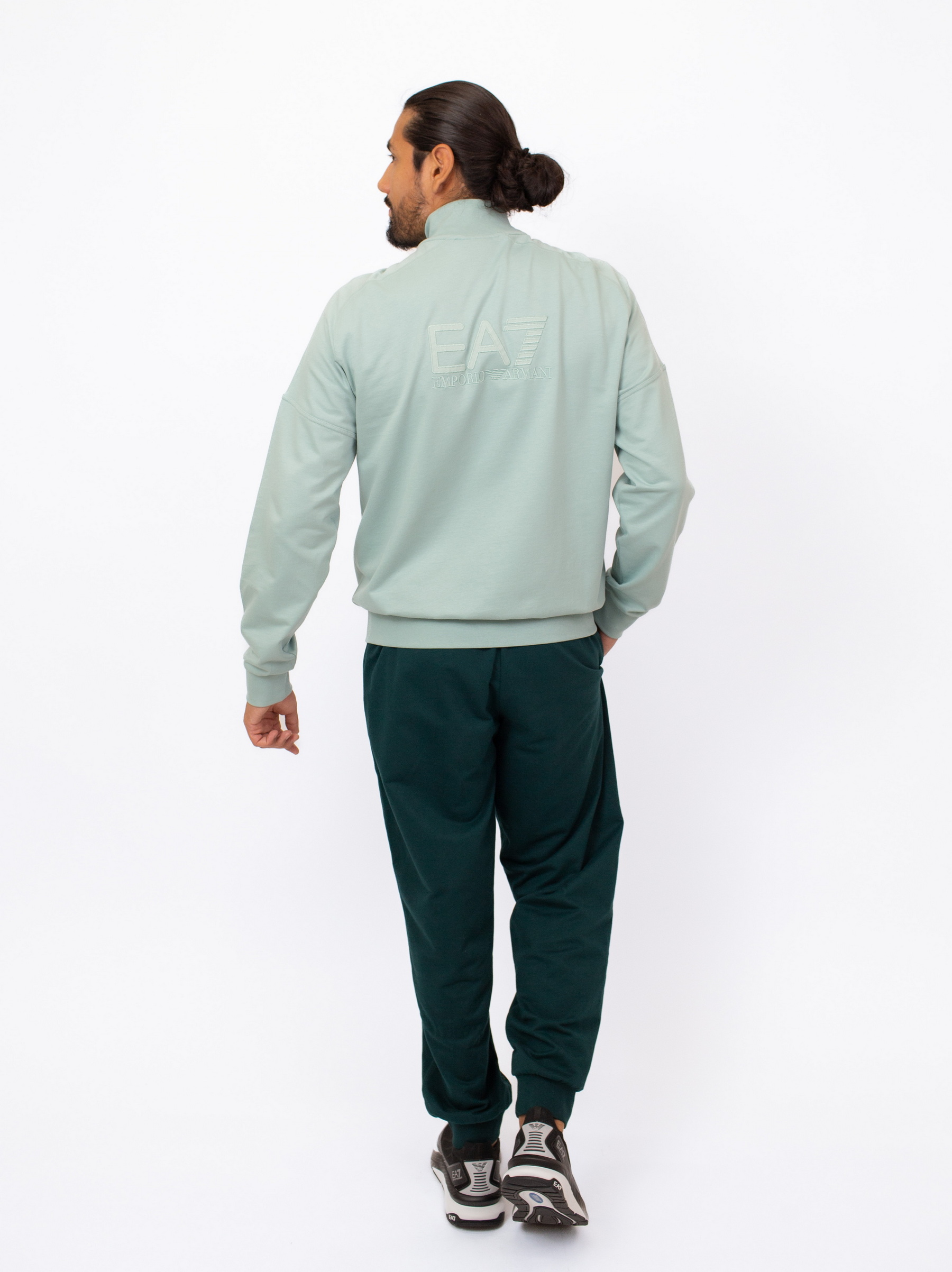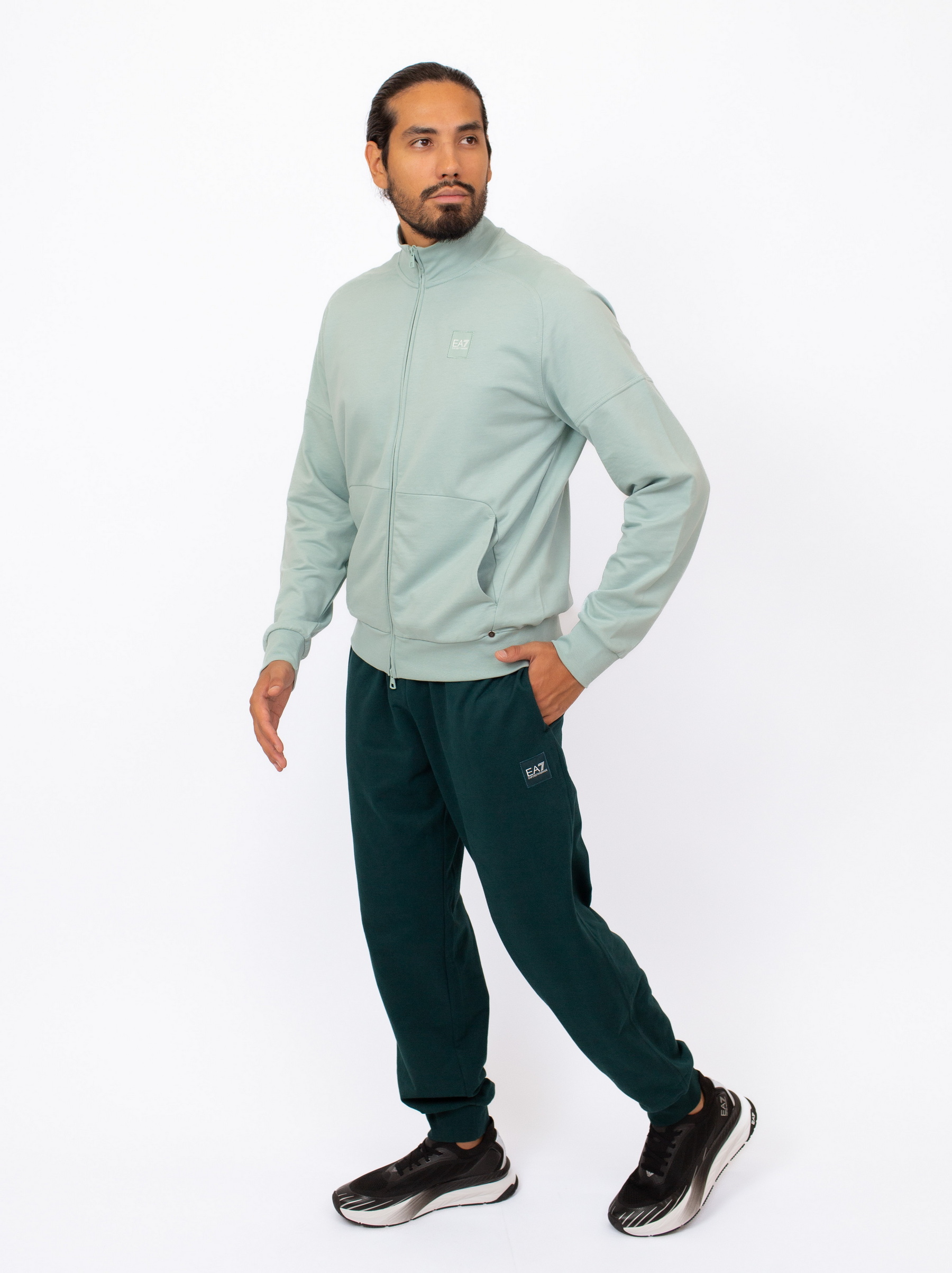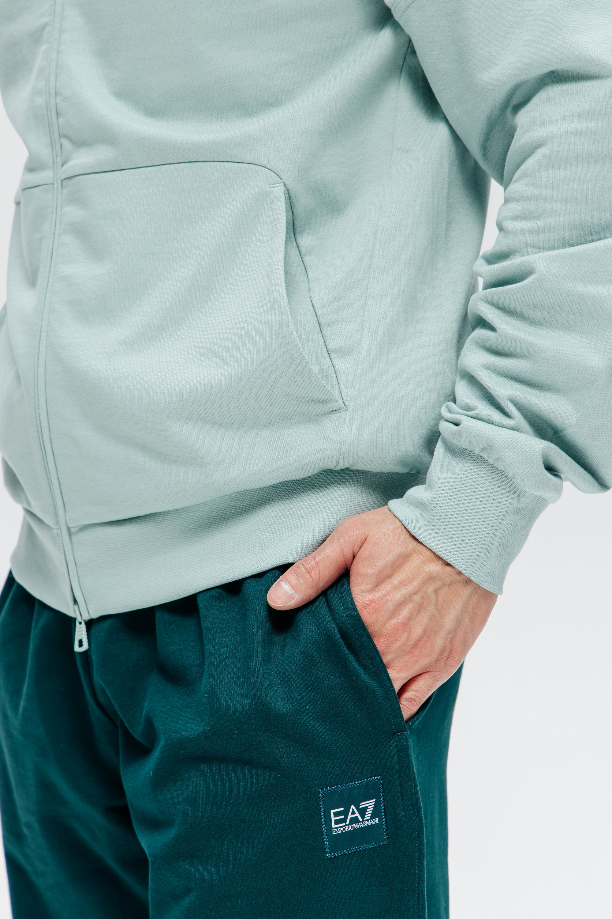 Мужской спортивный костюм EA7 из мягкого хлопка сочетает лёгкость, комфорт и свободу движений — идеальный выбор на каждый день, для тренировок и активного отдыха. Толстовка на молнии и брюки с манжетами создают удобный и универсальный комплект, а лаконичный дизайн с вышитым логотипом подчёркивает фирменный стиль бренда.
