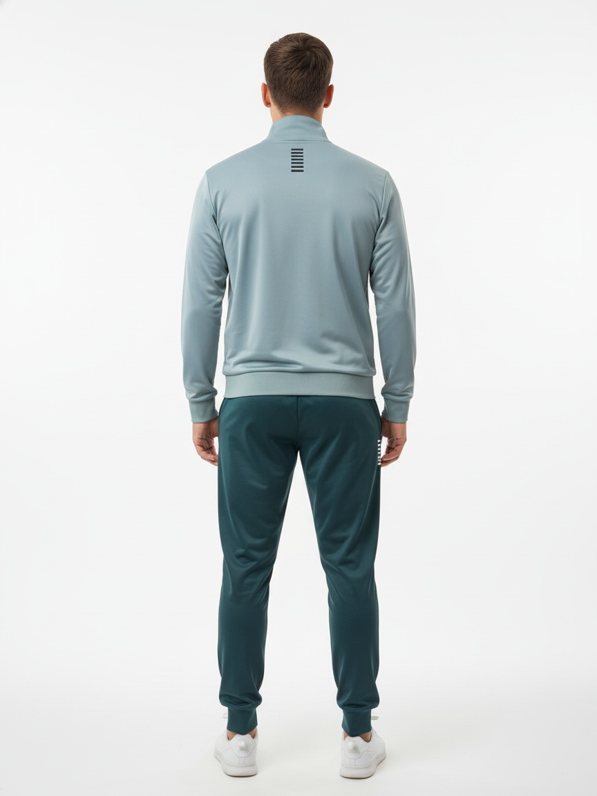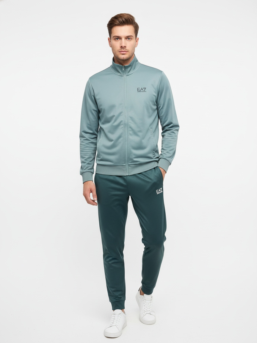 Премиальный стиль и непревзойденный комфорт! Спортивный костюм от бренда EA7 Emporio Armani станет идеальным выбором для мужчин, которые ценят качество, стиль и комфорт. Мужской спортивный костюм выполнен из полиэстера. Толстовка на молнии, оснащена 2 боковыми карманами, имеет эластичные манжеты, воротник и подол. На груди размещен логотип бренда. Спортивные брюки с манжетами, зауженные книзу, с боковыми карманами, талия регулируется шнурком.