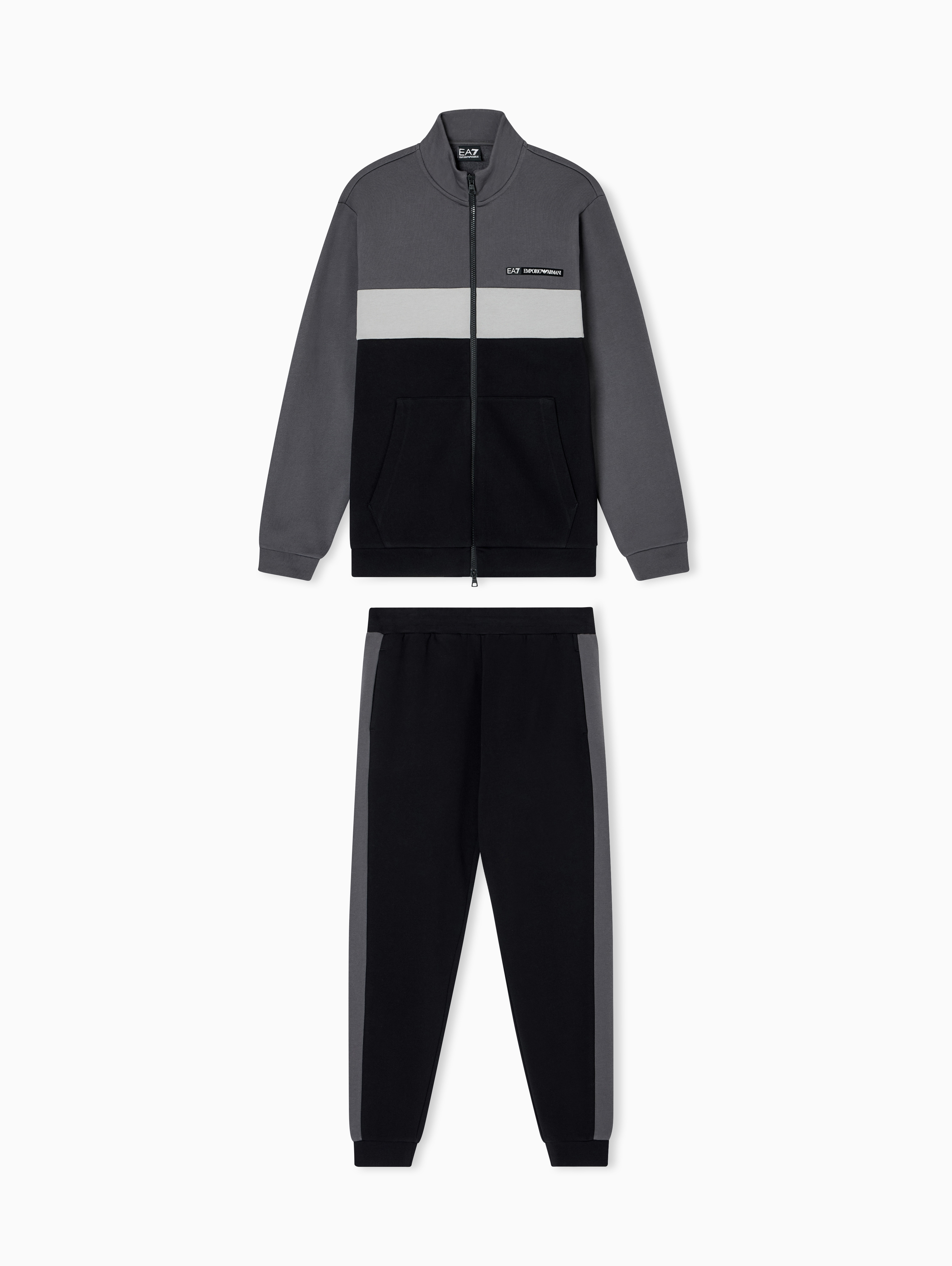 Стильный мужской костюм EA7 Athletic Colour Block сочетает свободу движений и комфорт во время тренировок и отдыха. Мягкий эластичный хлопок и динамичный дизайн в стиле color block подчёркивают спортивную энергию бренда EA7.